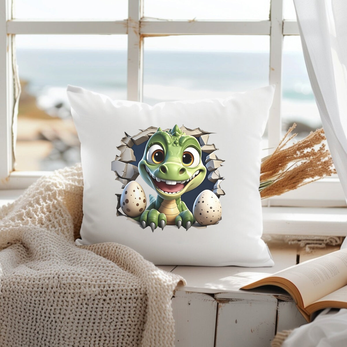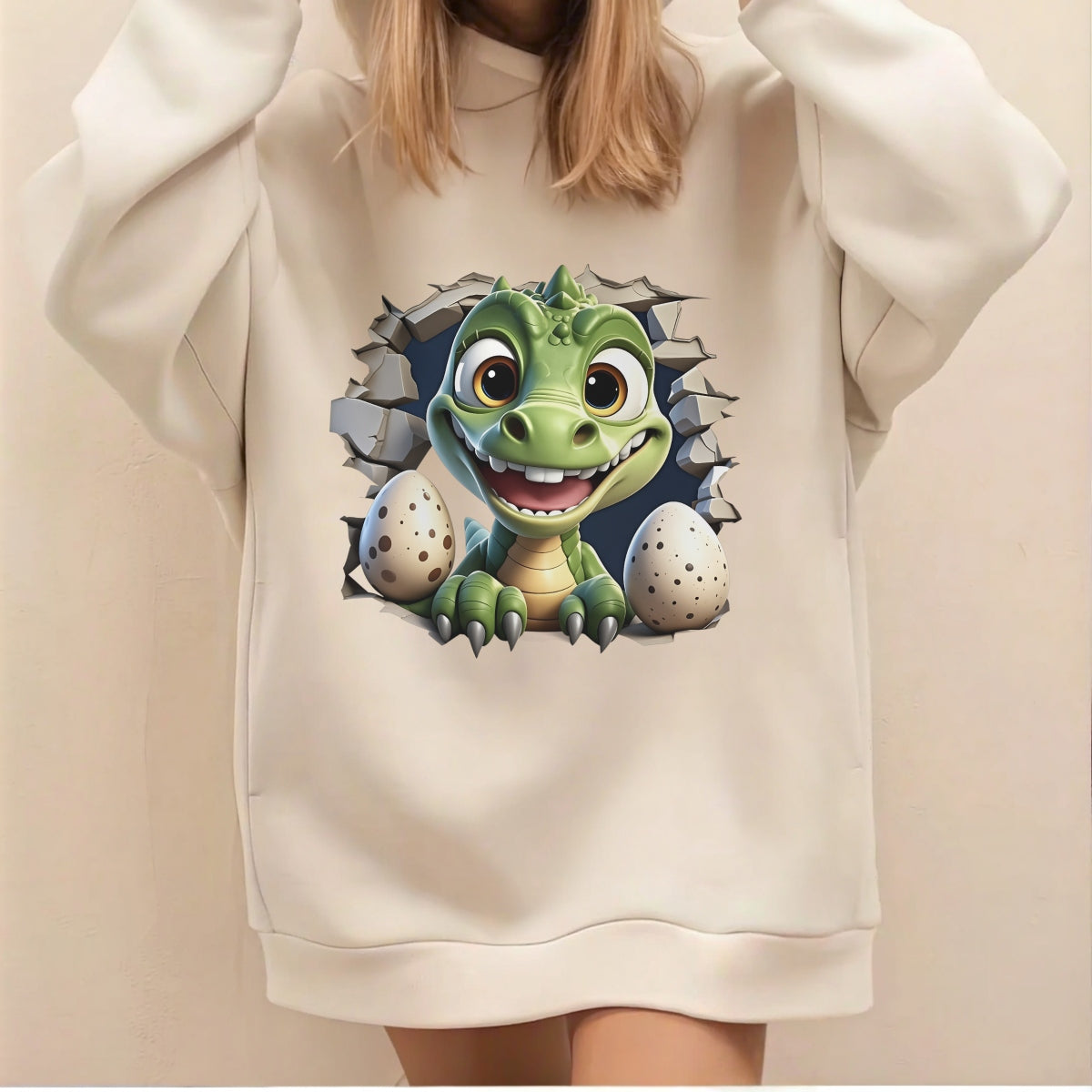 DTF Heat Transfer, Cute Cartoon Dinosaur with Speckled Eggs Breaking Cracked Wall, Vibrant Room Decor, Dinosaur Nursery Wall Art, Playful Home Decal Stickers, DTF Transfers for DIY Projects