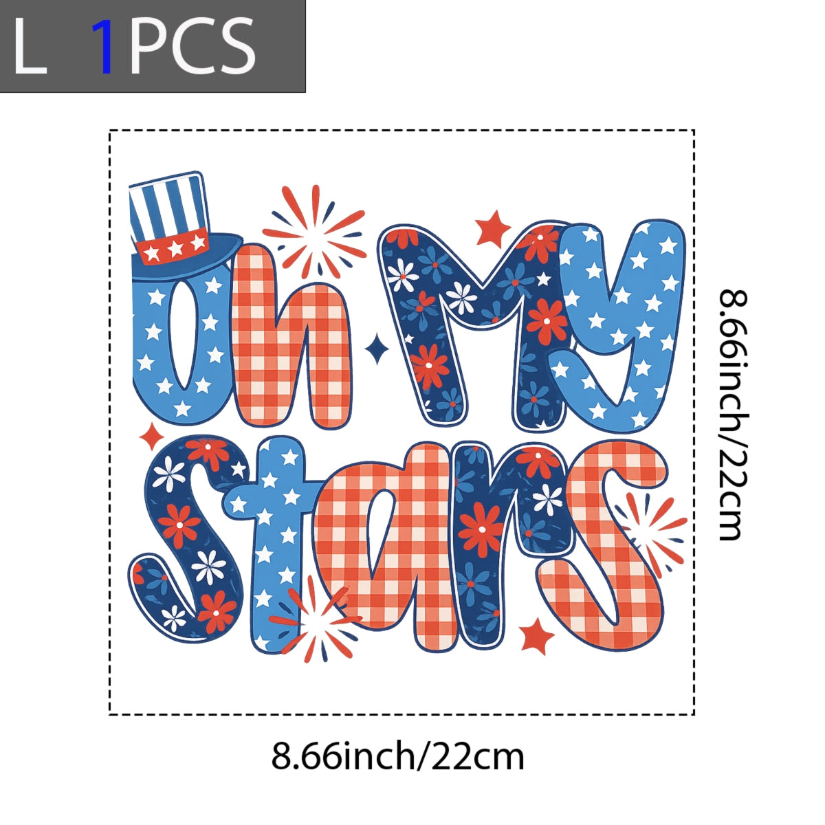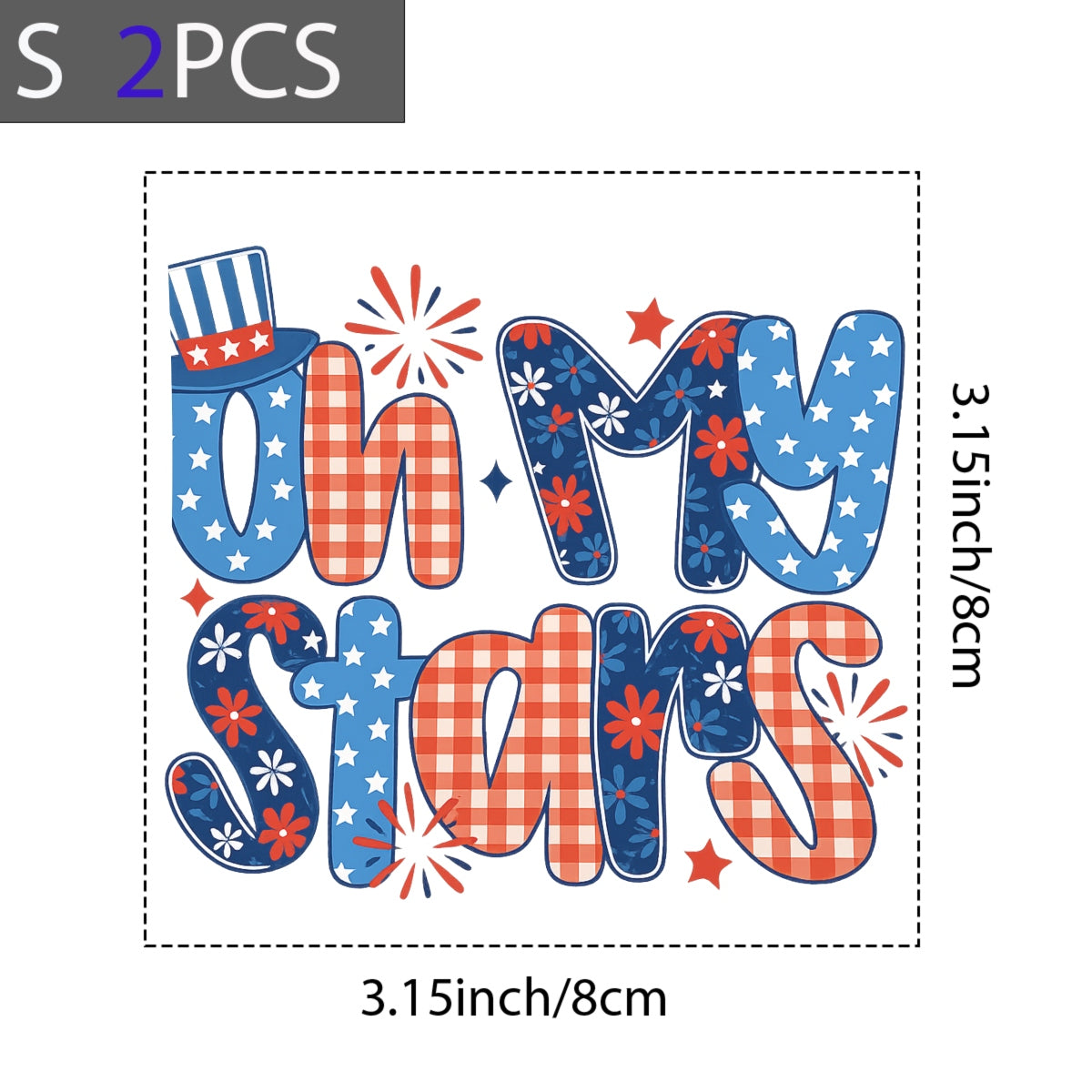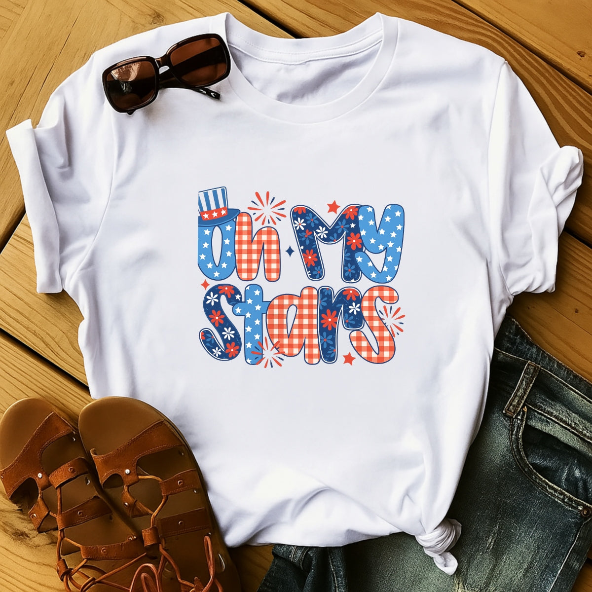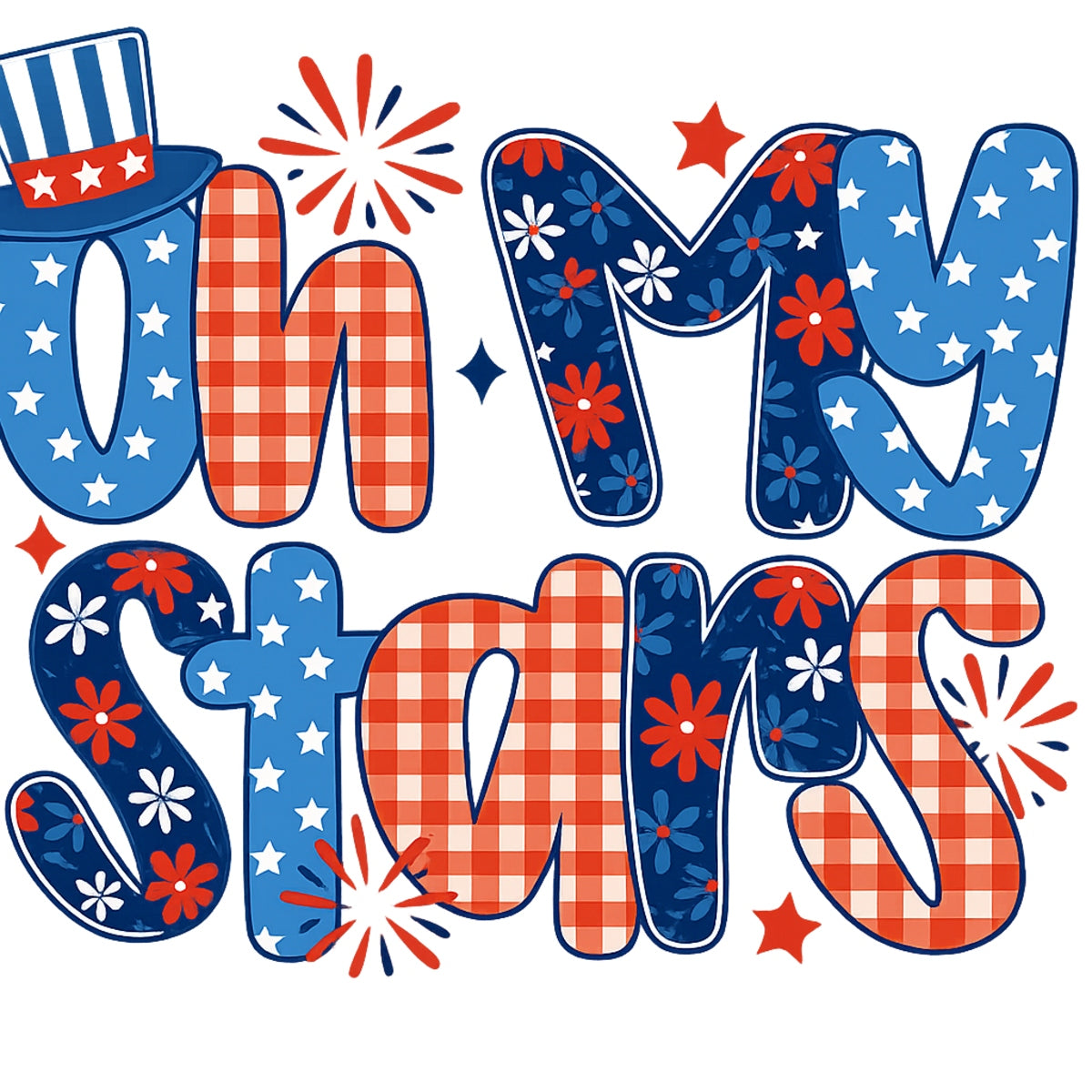 DTF Heat Transfer Iron On Sticker, Patriotic Oh My Stars Graphic, for 4th of July Apparel and Independence Day Decor