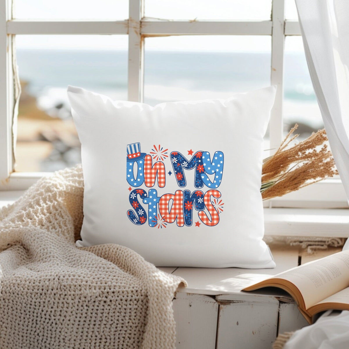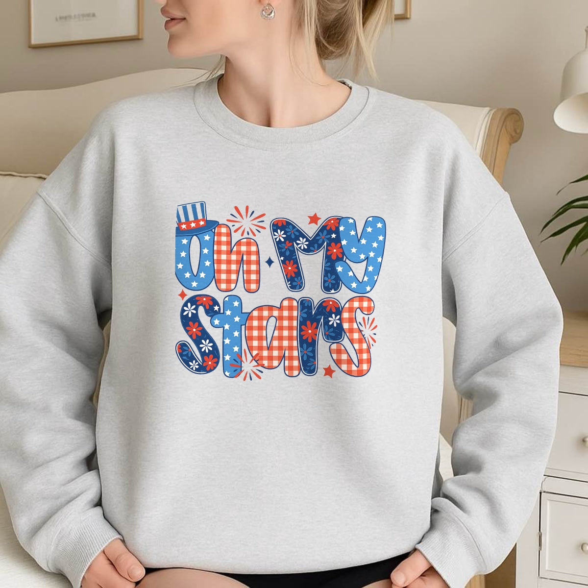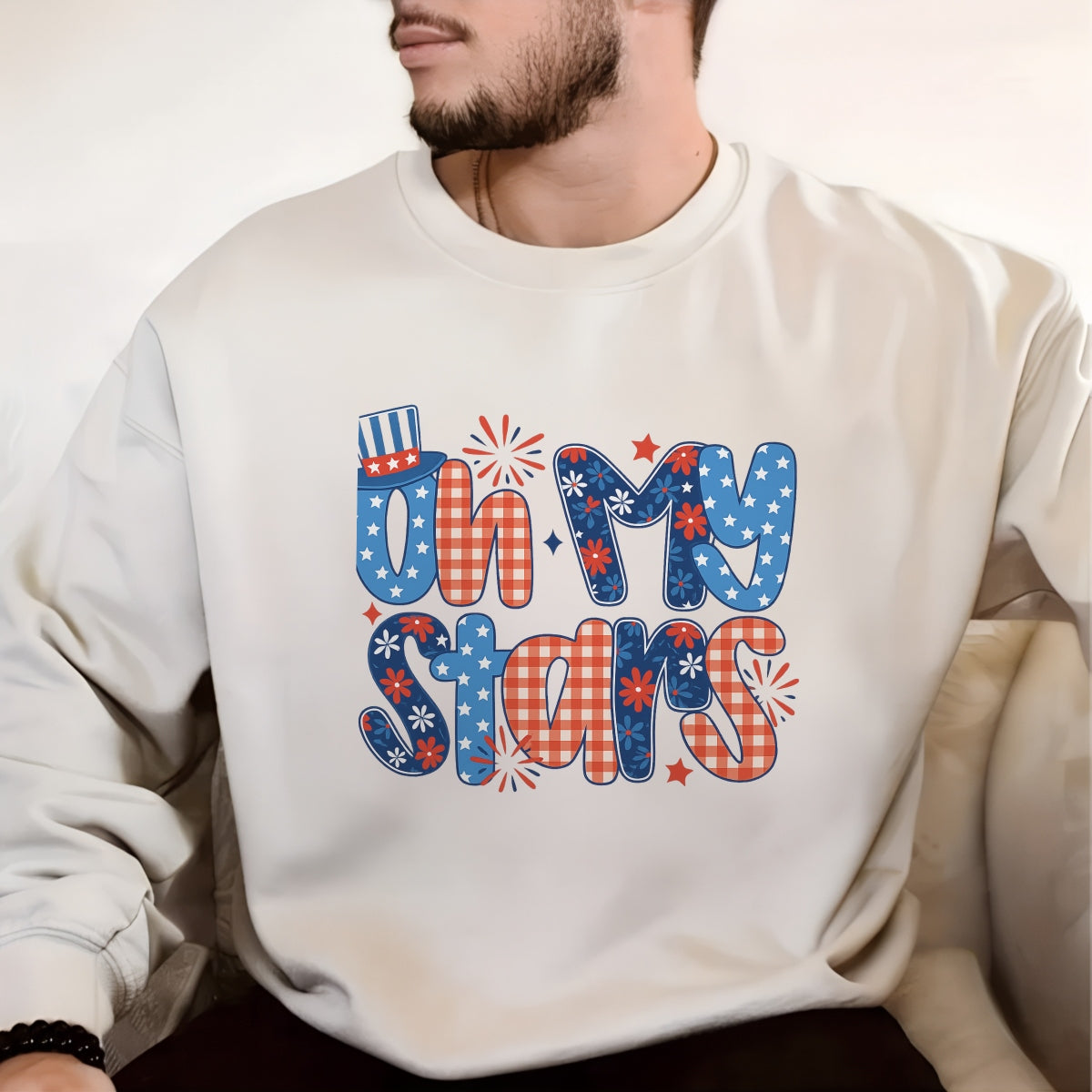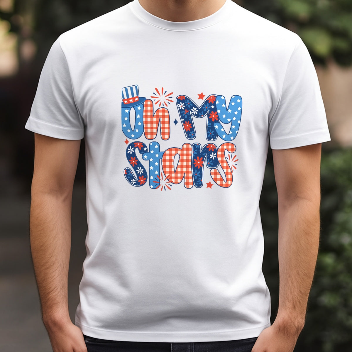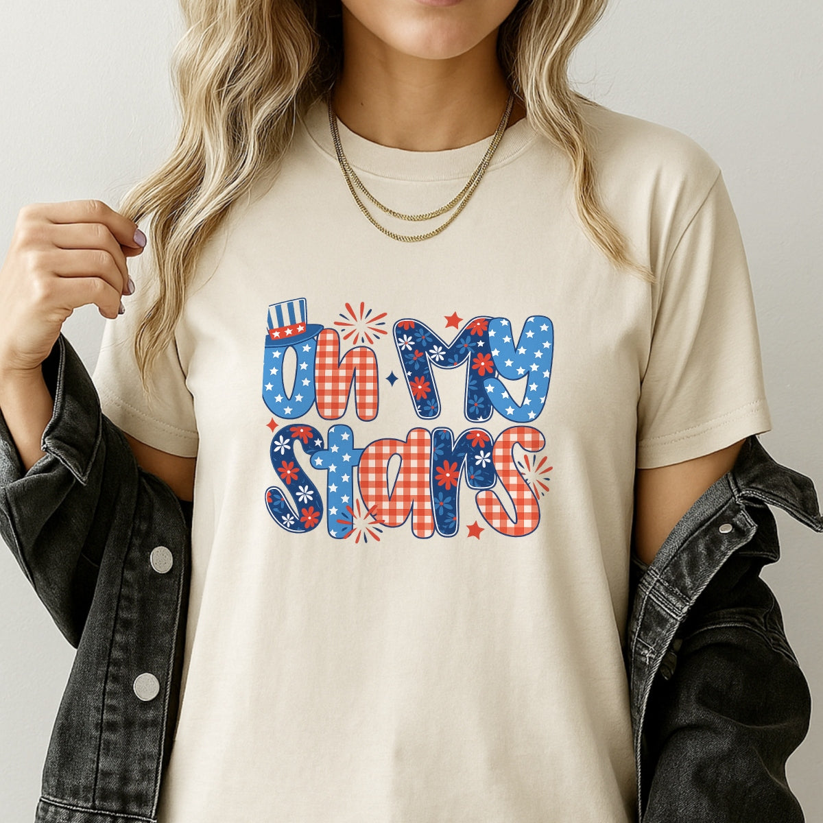 DTF Heat Transfer Iron On Sticker, Patriotic Oh My Stars Graphic, for 4th of July Apparel and Independence Day Decor