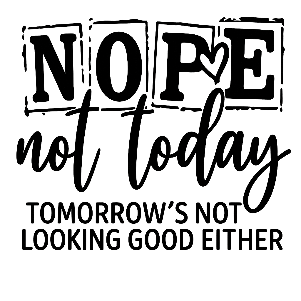 DTF Heat Transfer Iron On Sticker, Sarcastic “Nope Not Today” Quote Graphic, for Humor-filled Apparel and Casual Decor