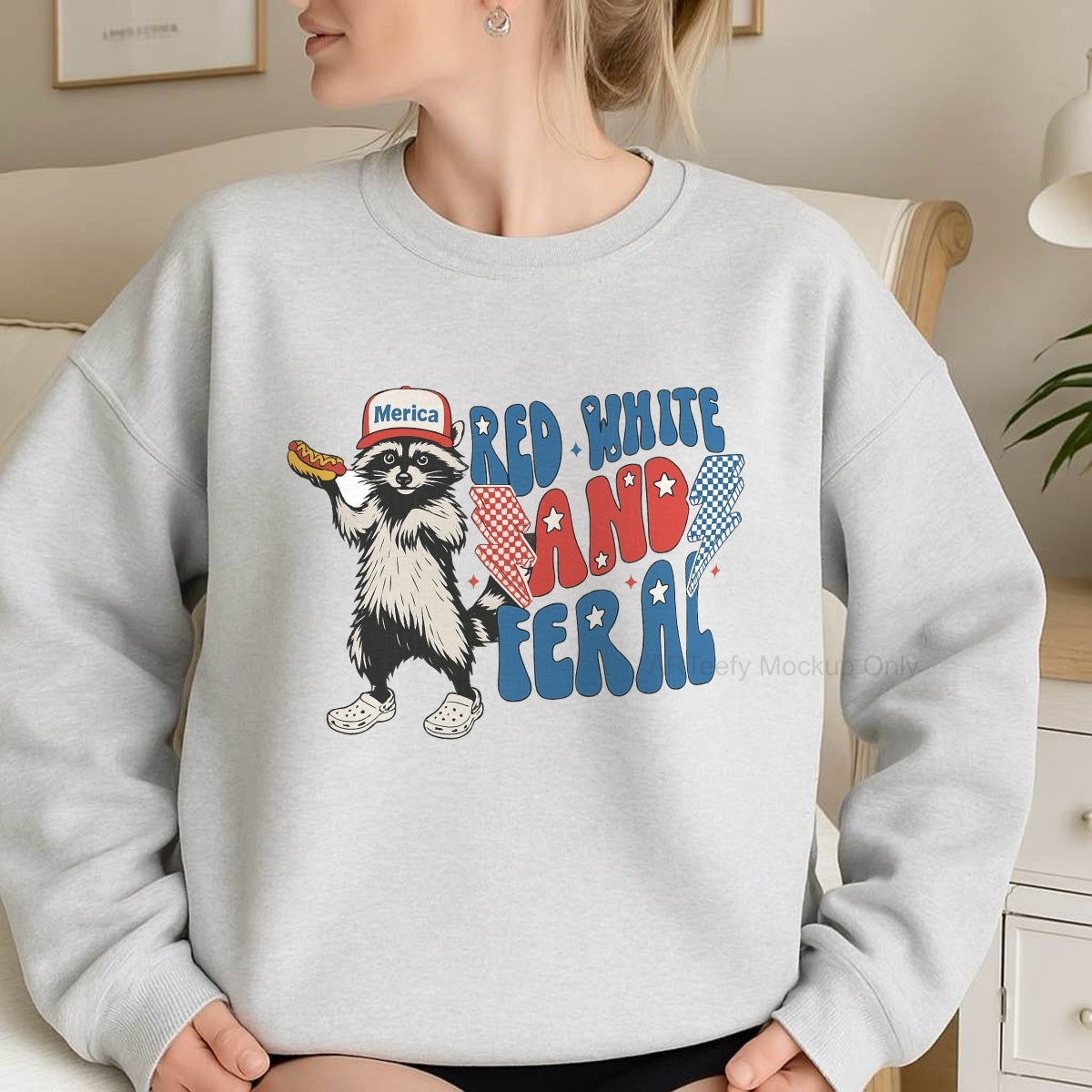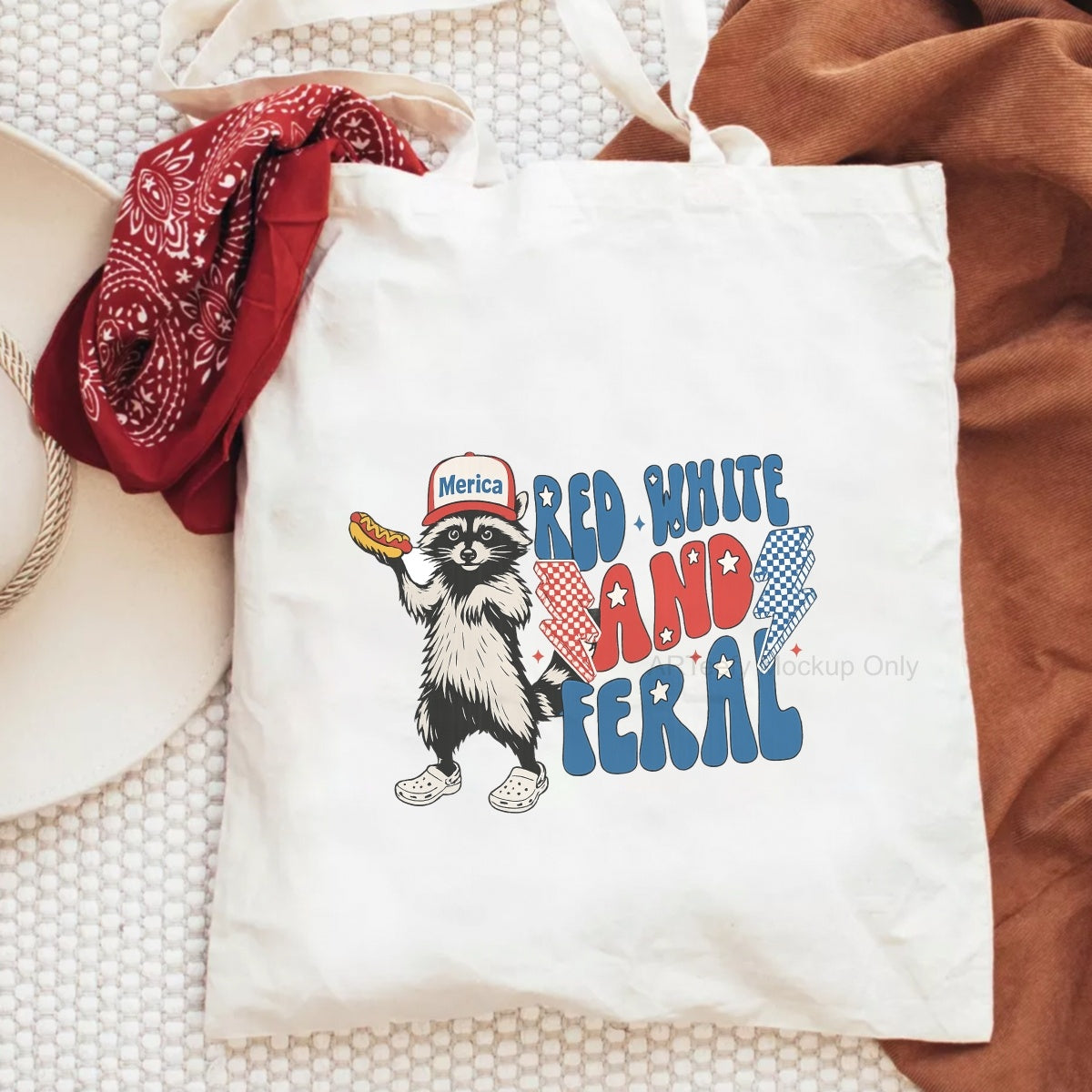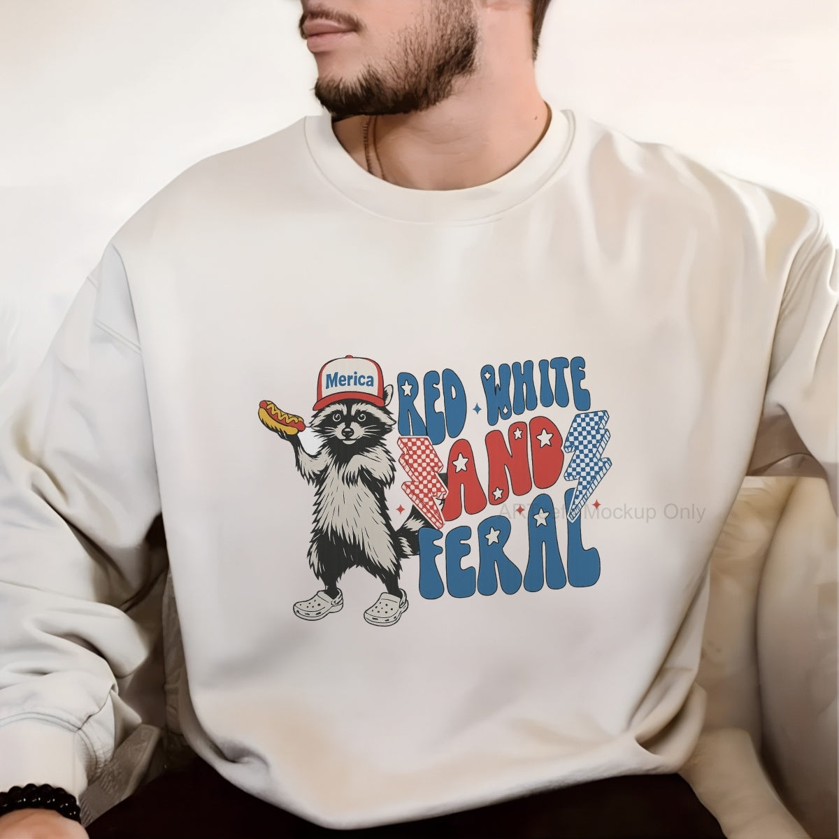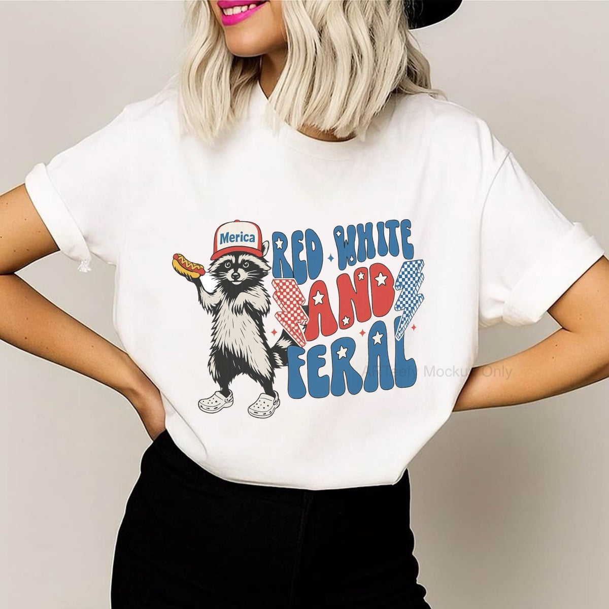 DTF Heat Transfer Transfer Iron On Sticker, Patriotic Themed Raccoon & Slogan Graphic, For Fourth of July Apparel And Patriotic Party Decor