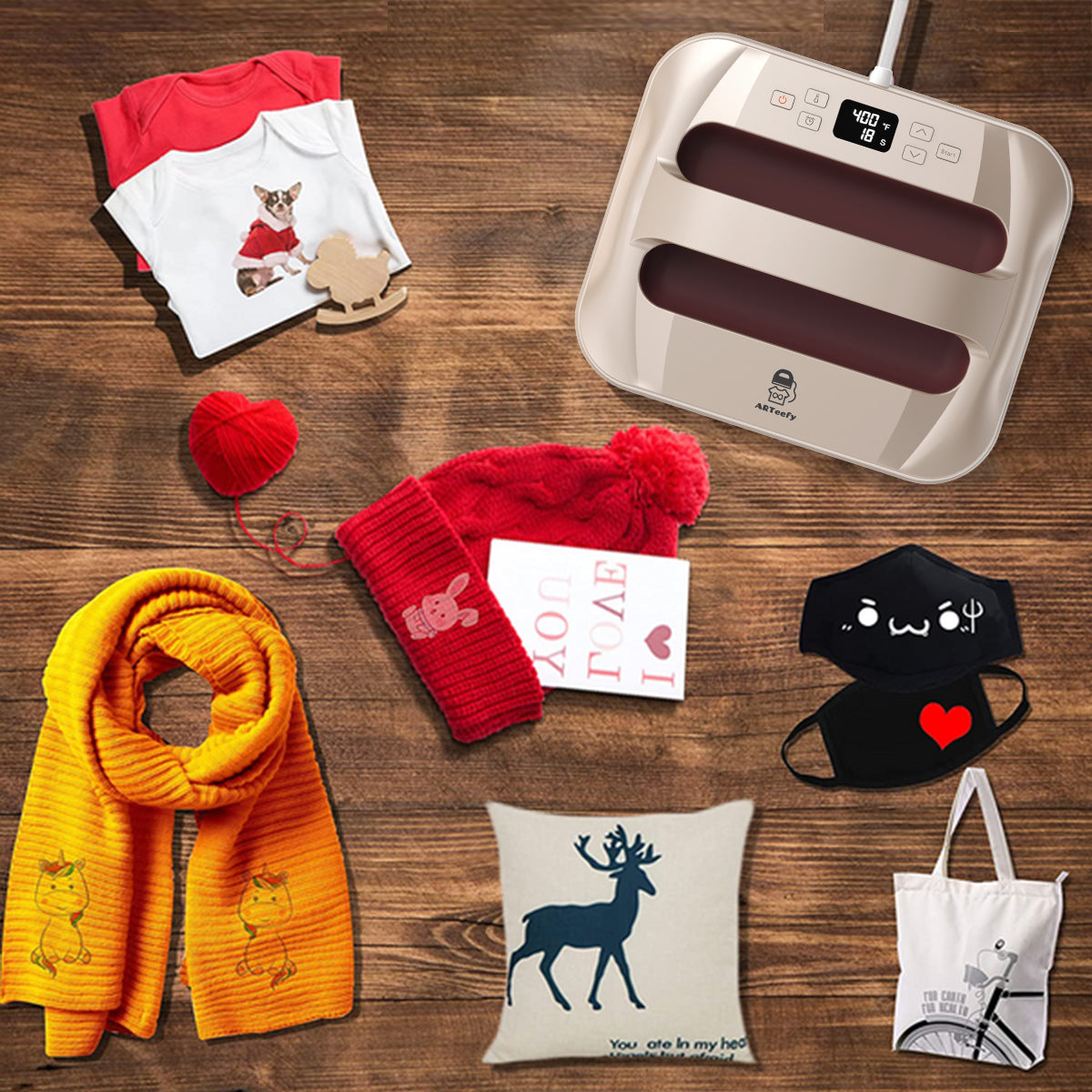 WORKS GREAT WITH ALL TYPES OF HTV: Wide-ranged applicability in transferring Vinyl material: foil, Lite/metallic, glitter, holographic, sublimation paper, etc. Please always read the user manual carefully before using the heat press. Make sure to set the time and temperature according to the "Time & Temperature Guide" which is contained in the user manual.