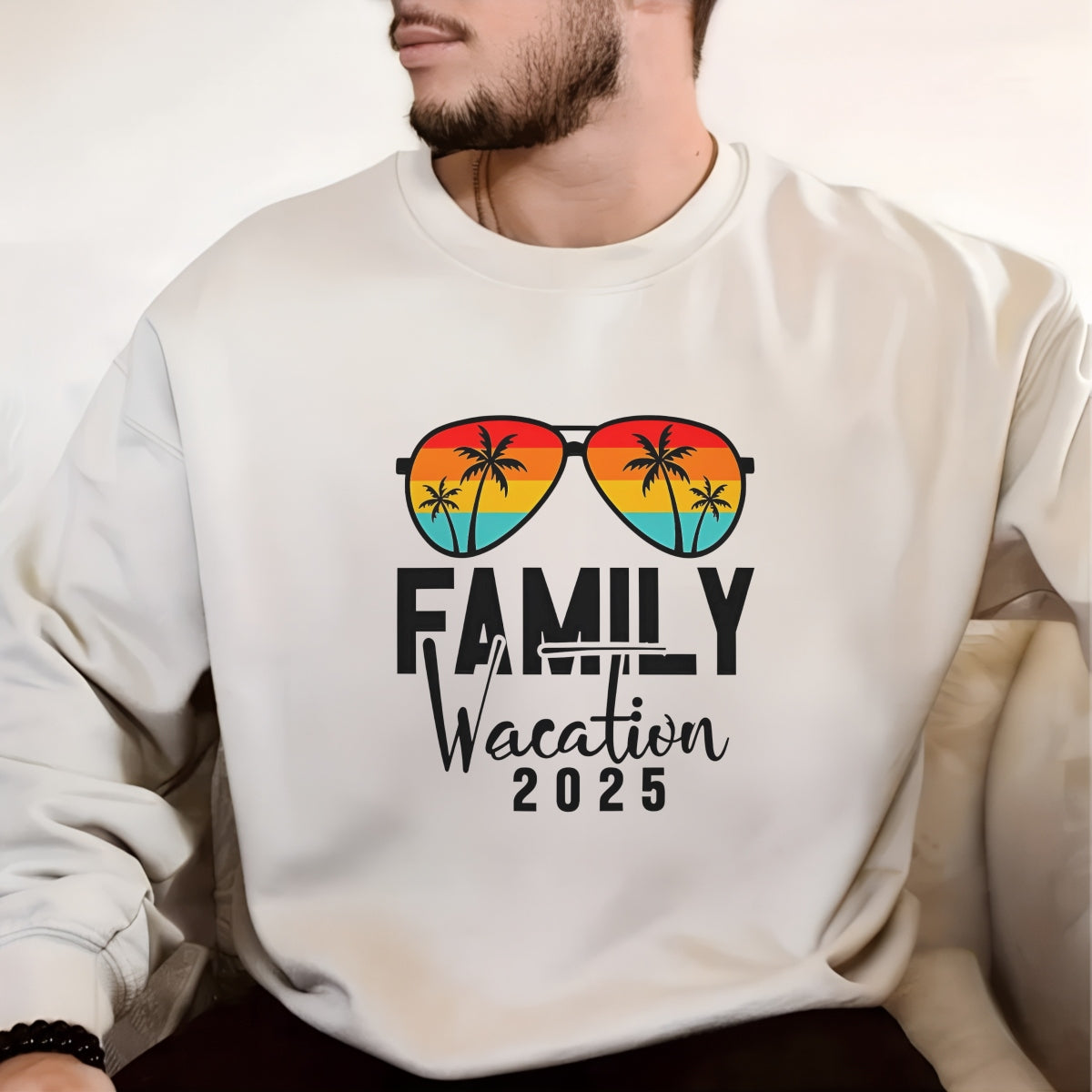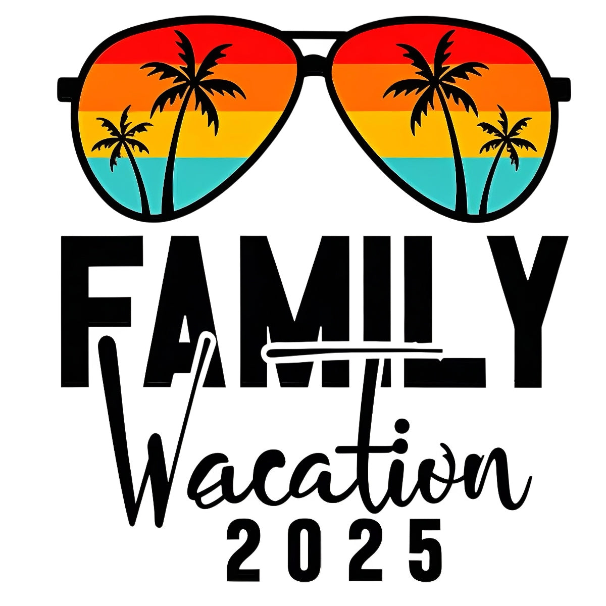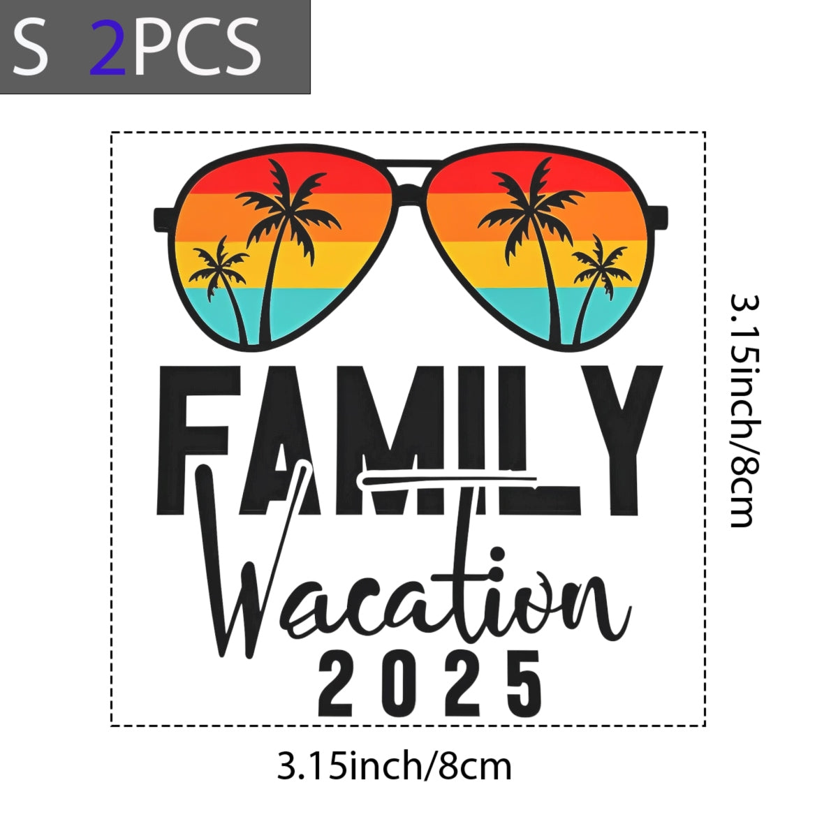 2025 Family Vacation DTF Iron-On Transfer , Beach Vibes Sunglasses Design with Gradient Lenses , Palm Tree and Sunset Sticker Waterproof Heat Press Sticker for T-Shirts, Hoodies, Tote Bags
