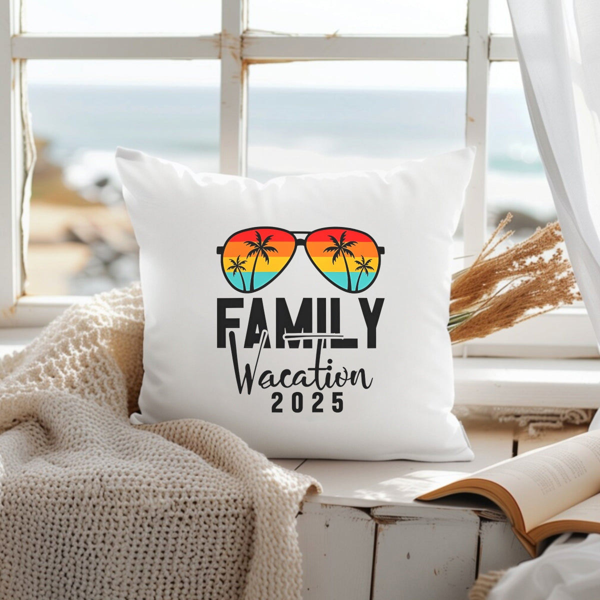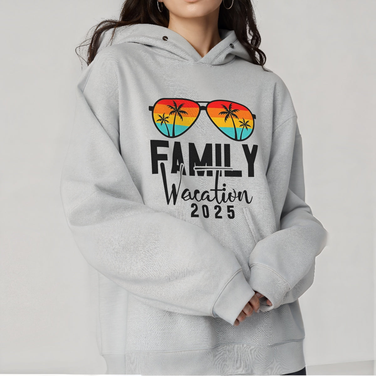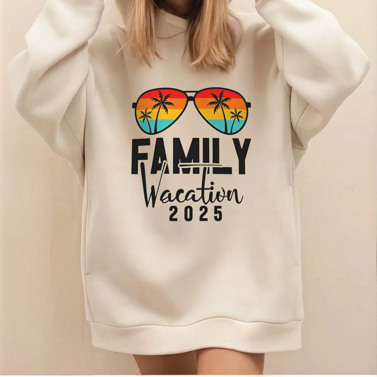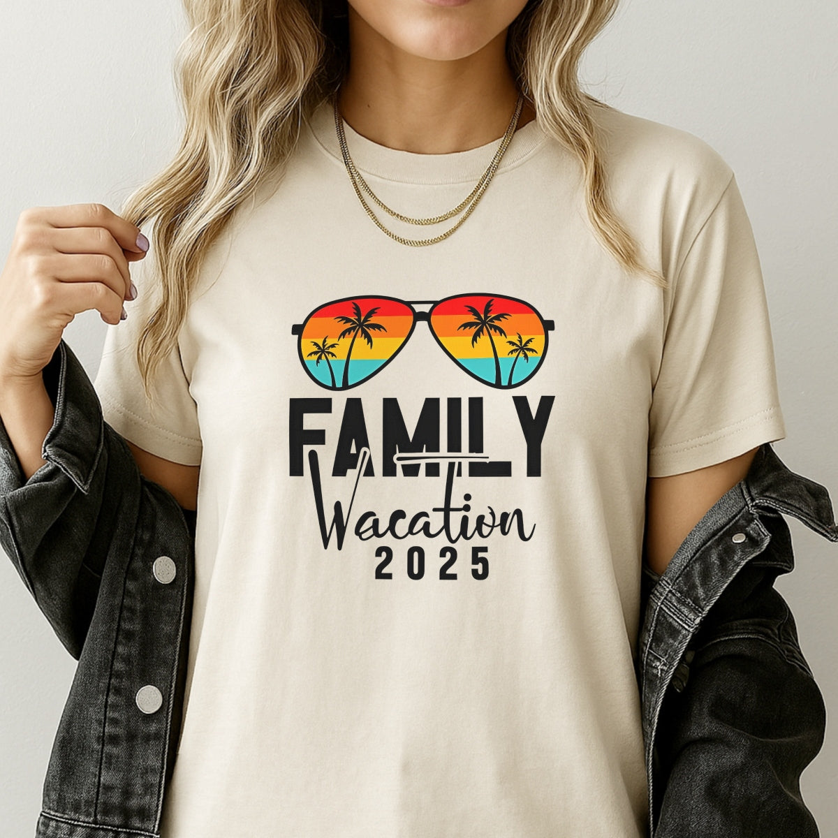 2025 Family Vacation DTF Iron-On Transfer , Beach Vibes Sunglasses Design with Gradient Lenses , Palm Tree and Sunset Sticker Waterproof Heat Press Sticker for T-Shirts, Hoodies, Tote Bags