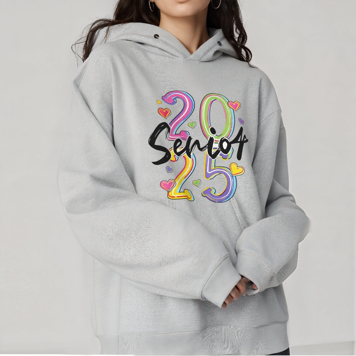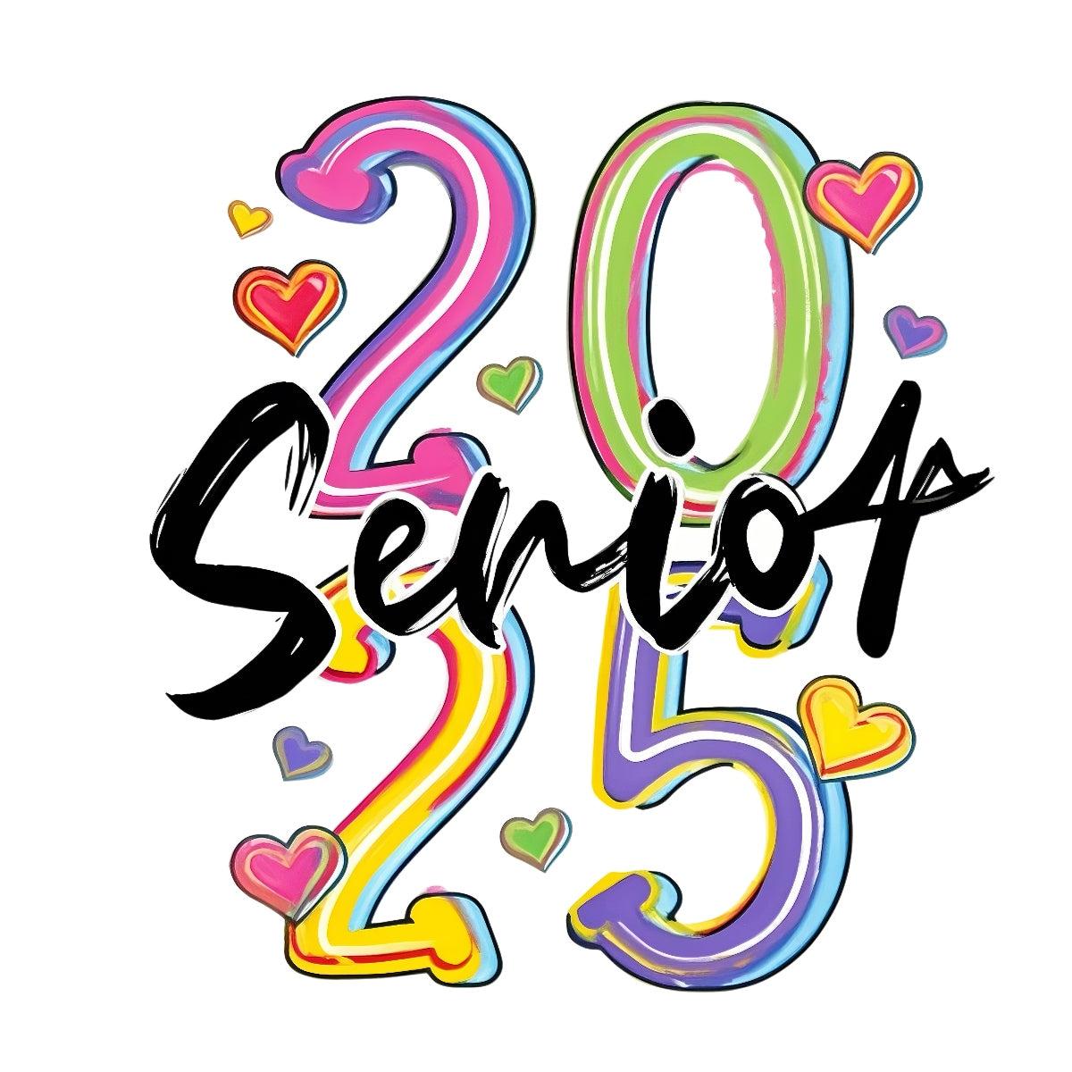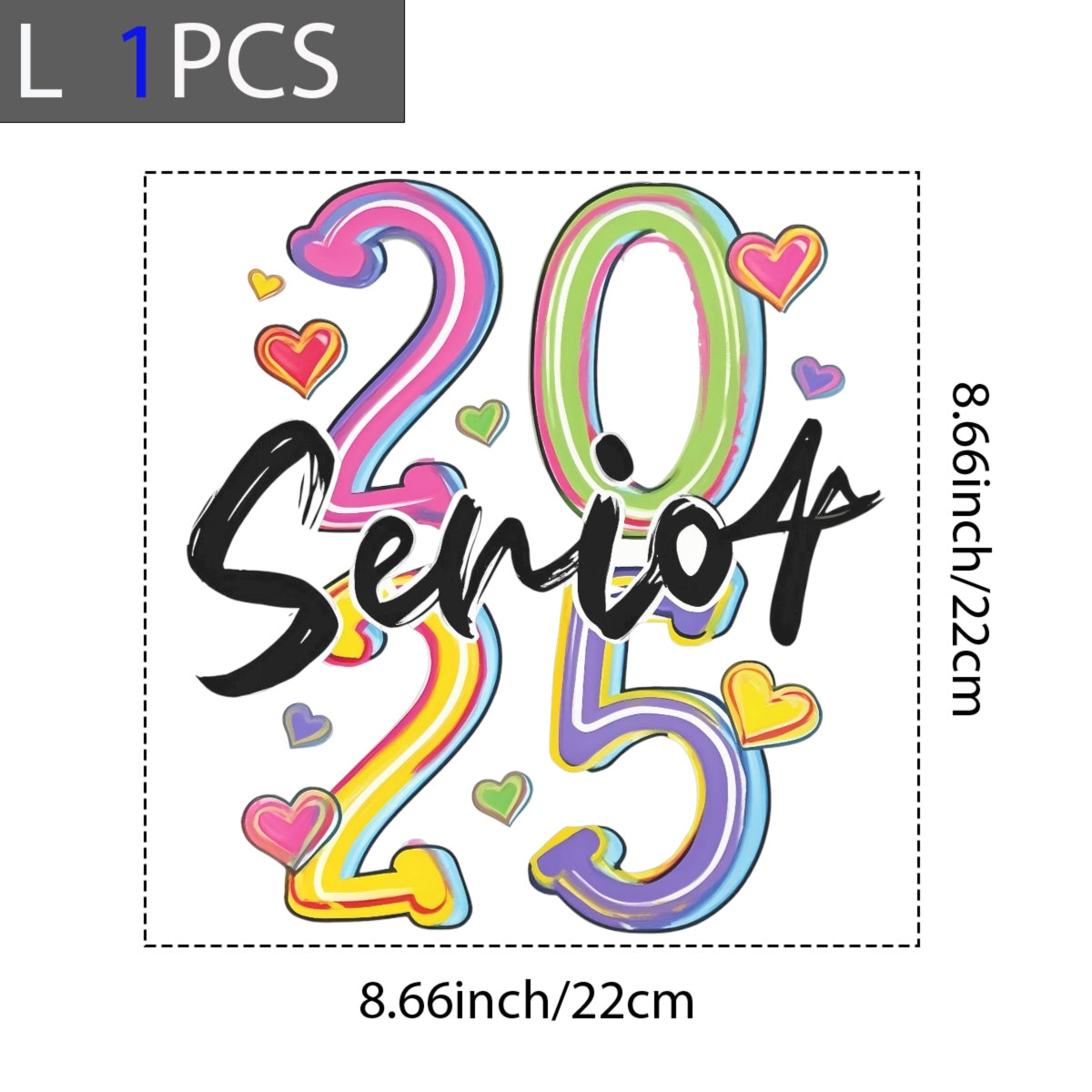 2025 Senior Year DTF Heat Transfer Sticker , Gradient Numerals 20/25 with Rainbow Hearts , Vibrant Hand-Drawn Graduation Decal for Graduation Caps, T-Shirts, Tote Bags