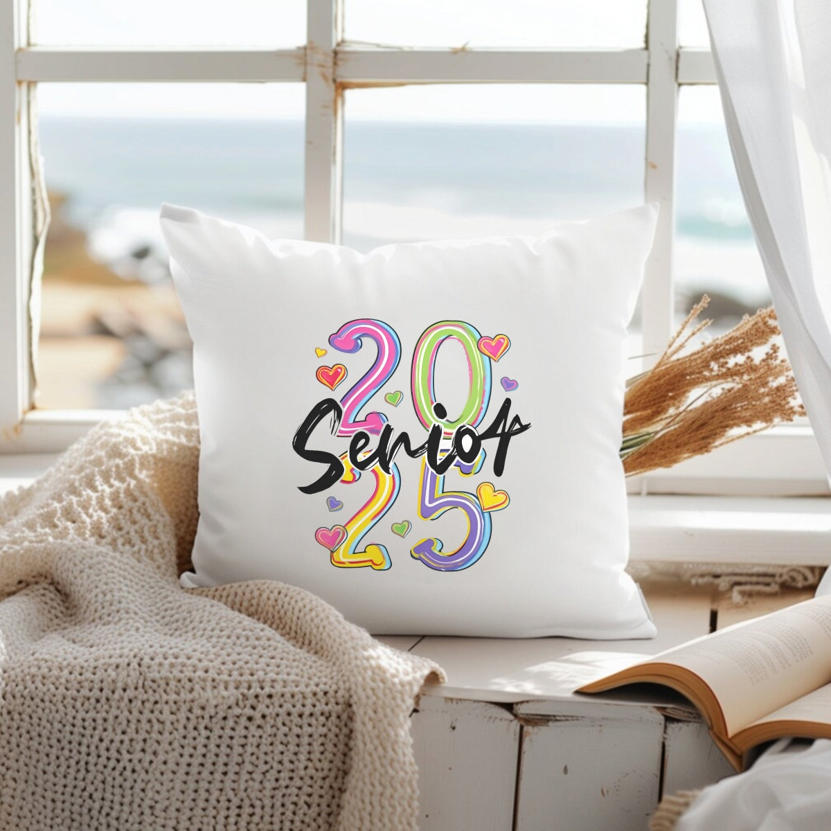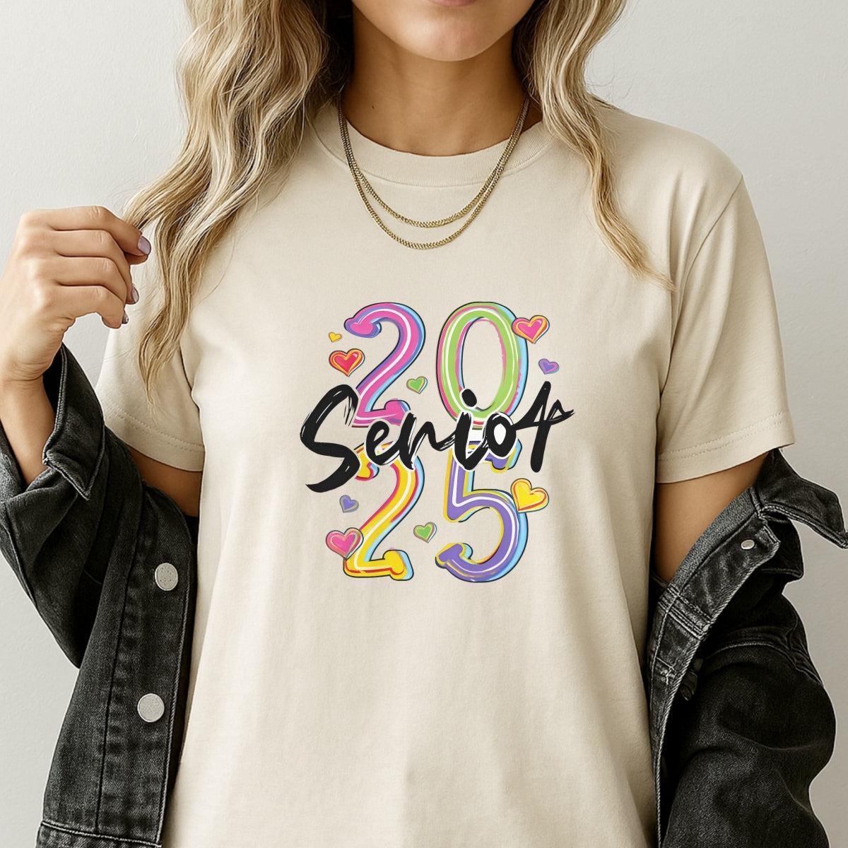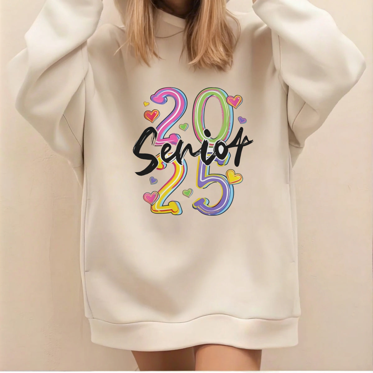2025 Senior Year DTF Heat Transfer Sticker , Gradient Numerals 20/25 with Rainbow Hearts , Vibrant Hand-Drawn Graduation Decal for Graduation Caps, T-Shirts, Tote Bags