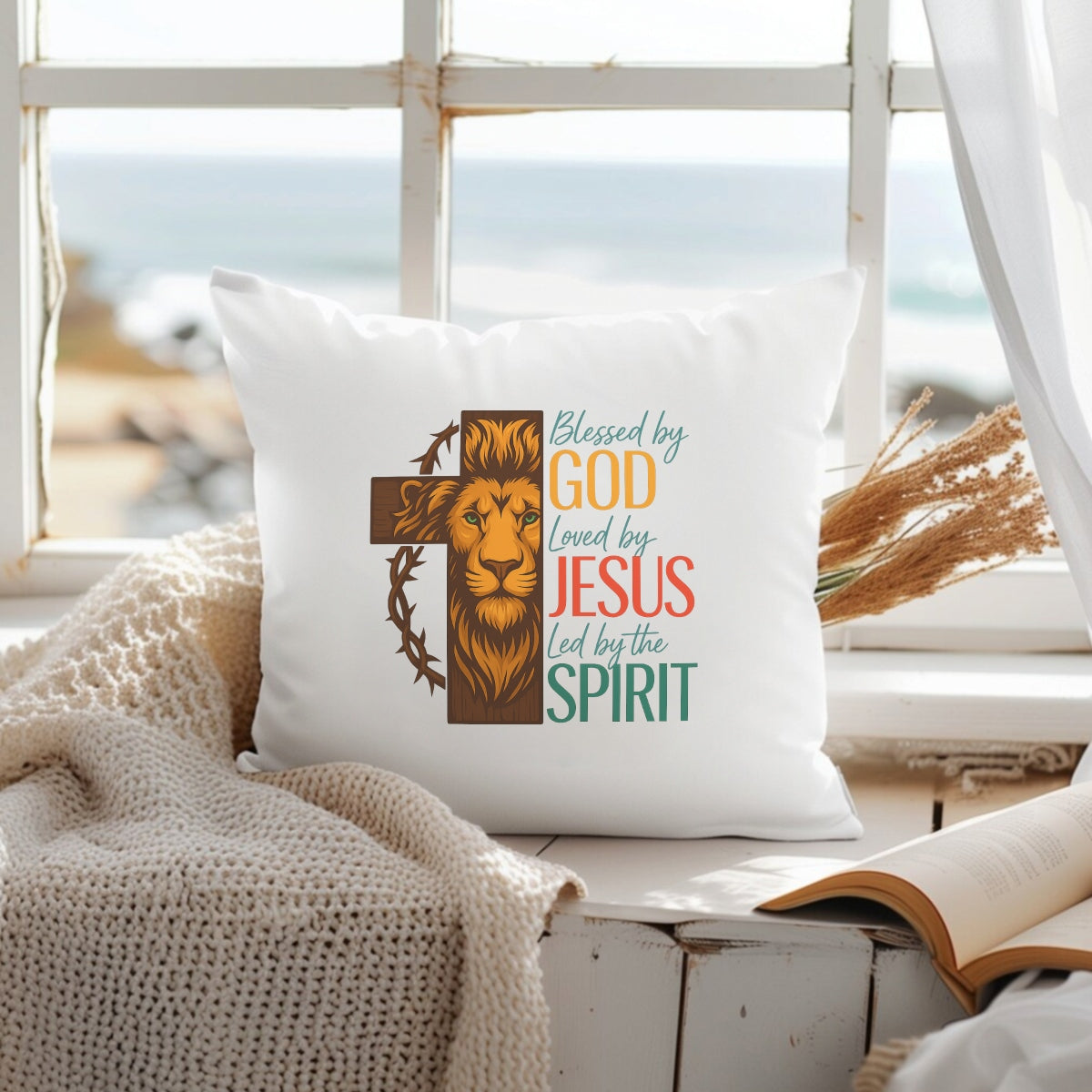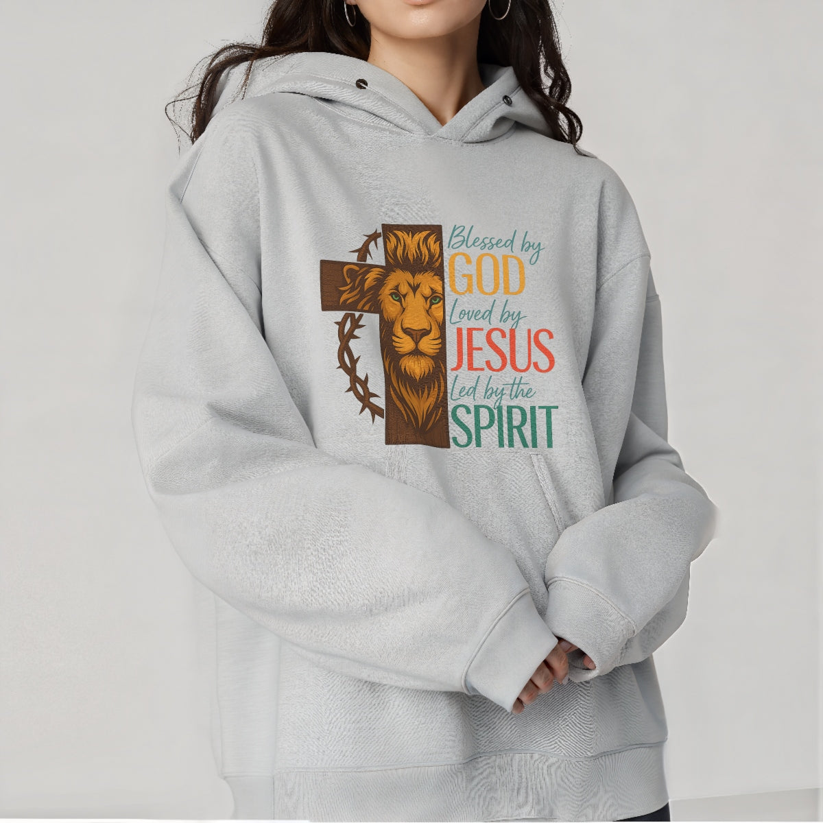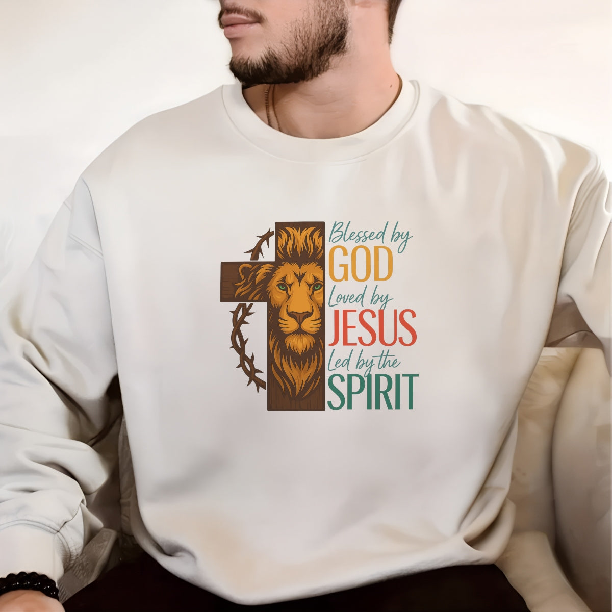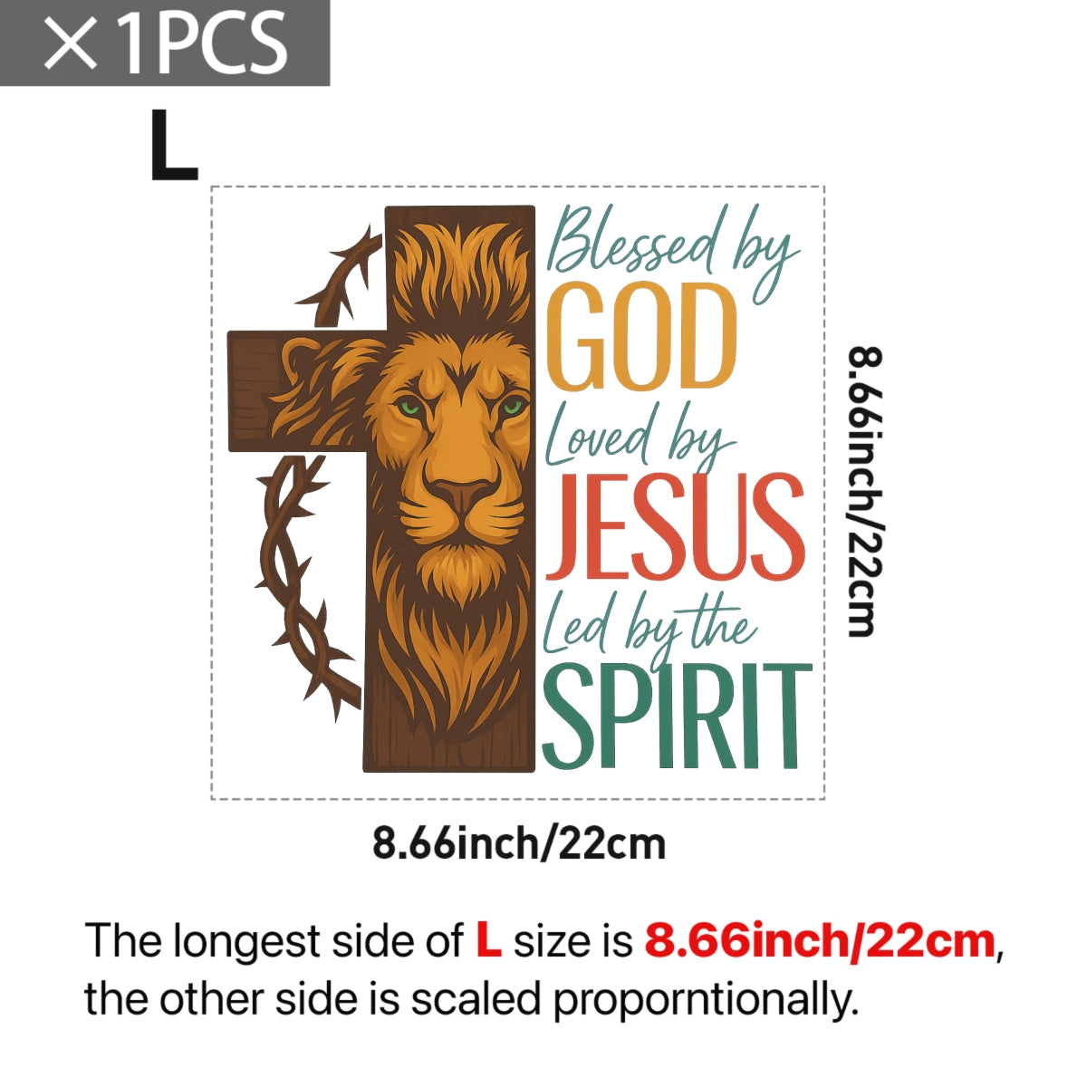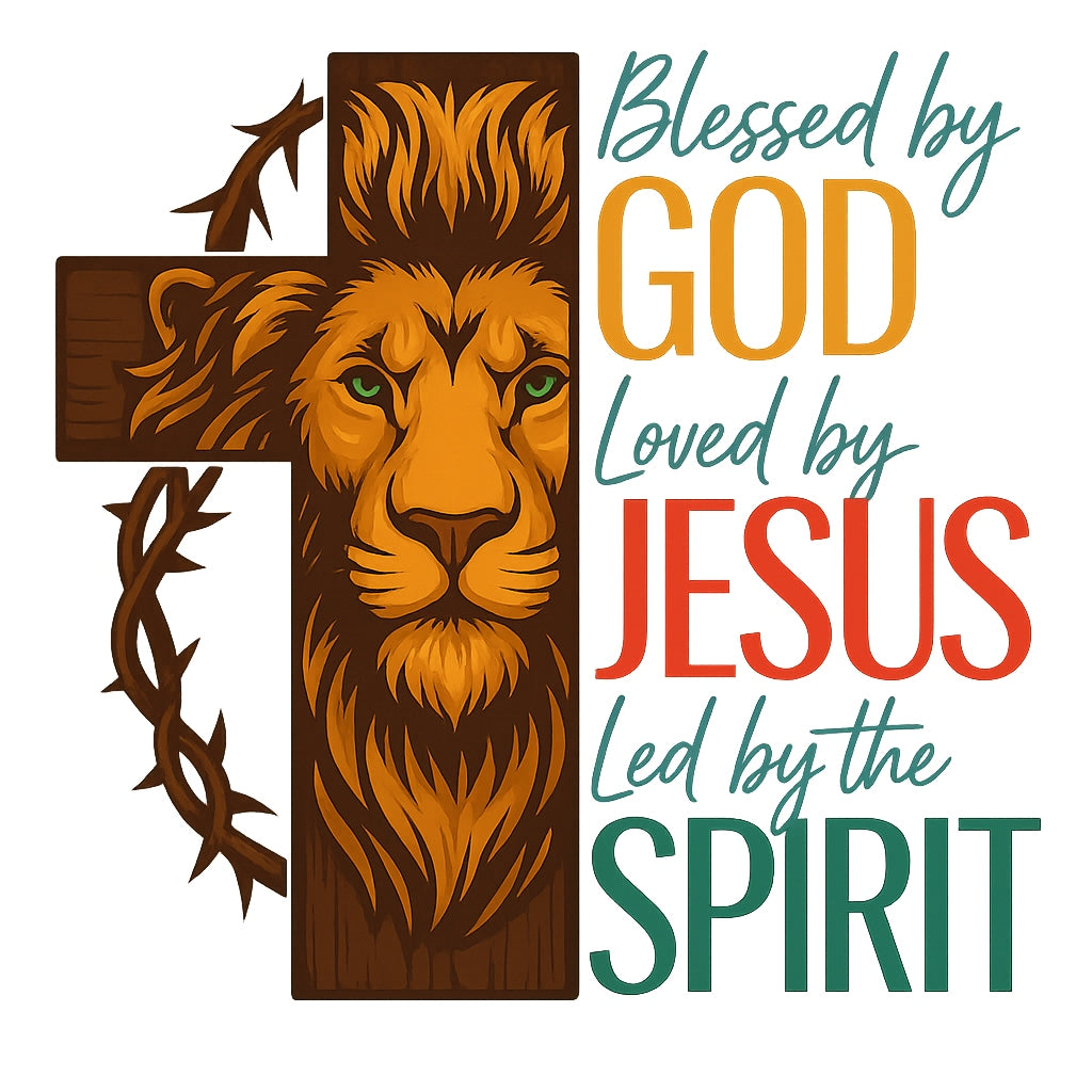 Christian Lion Cross DTF Transfer, Blessed by God, Loved by Jesus, Led by the Spirit , Heat Press Iron-On for T-Shirts, Hoodies, Tote Bags