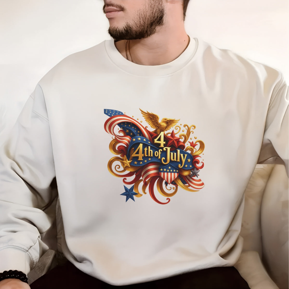 DTF Heat Transfer Iron On Sticker, 4th of July Patriotic Eagle Graphic, for Independence Day Apparel and National Celebration Decor