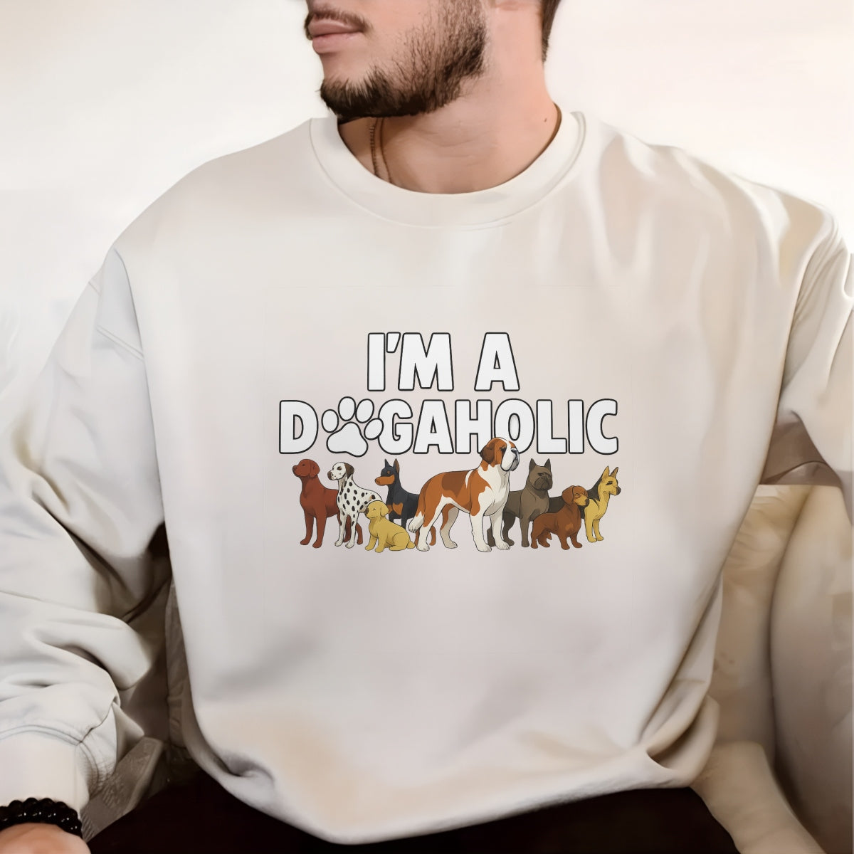 DTF Heat Transfer Iron On Sticker ,All-Breed Dog Collection with Paw Print "DOG" Design and "I'M A DOG AHOLIC" Text , Playful Cartoon Sticker for T-Shirts, Hoodies, Tote Bags