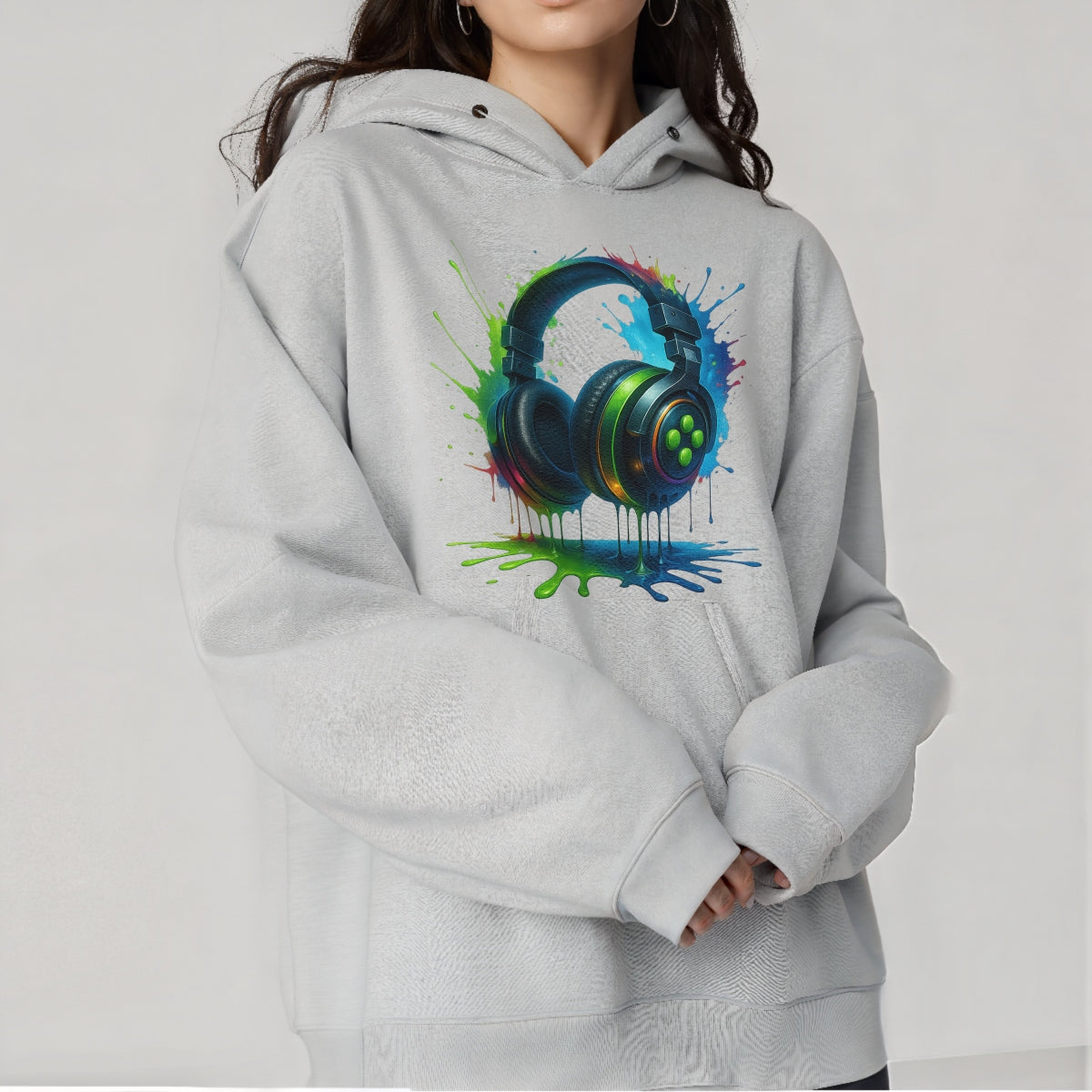 DTF Heat Transfer Iron On Sticker,Colorful Headphone Design,For Music Enthusiasts & Gaming Setups
