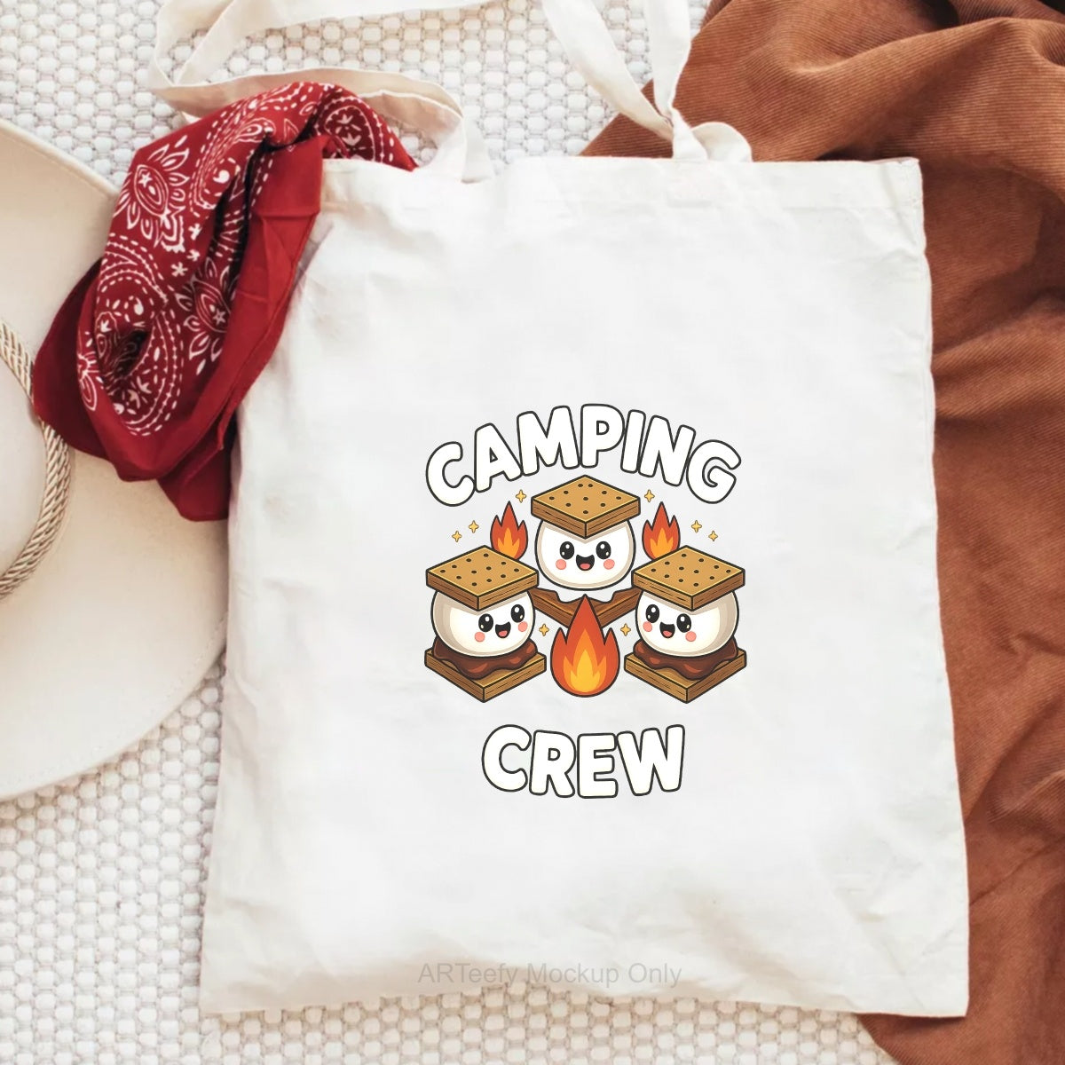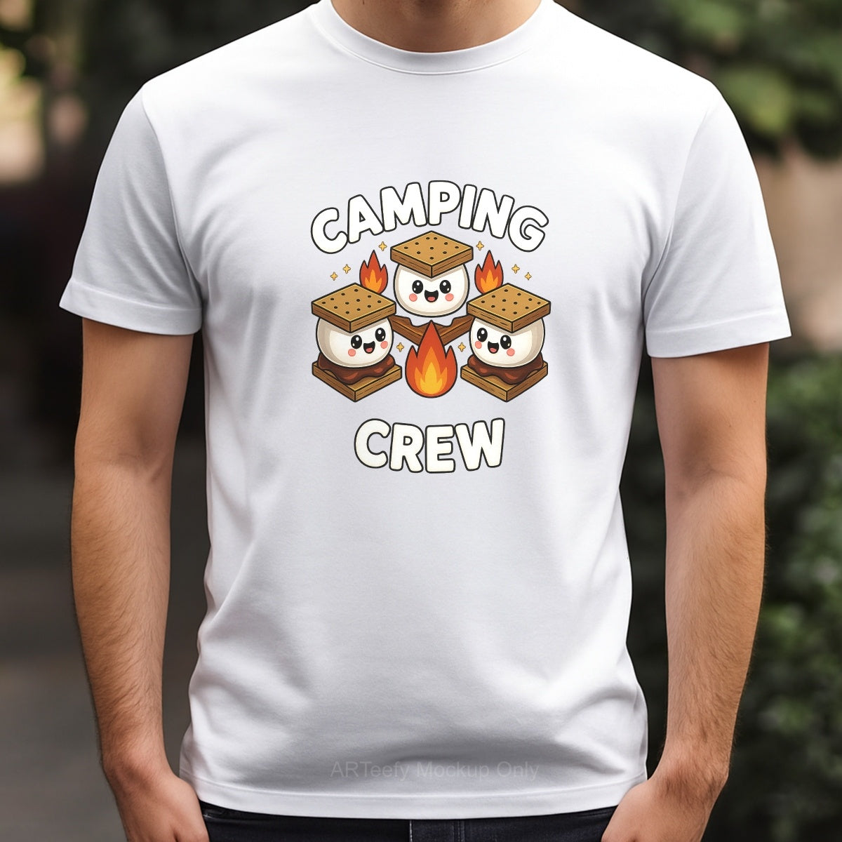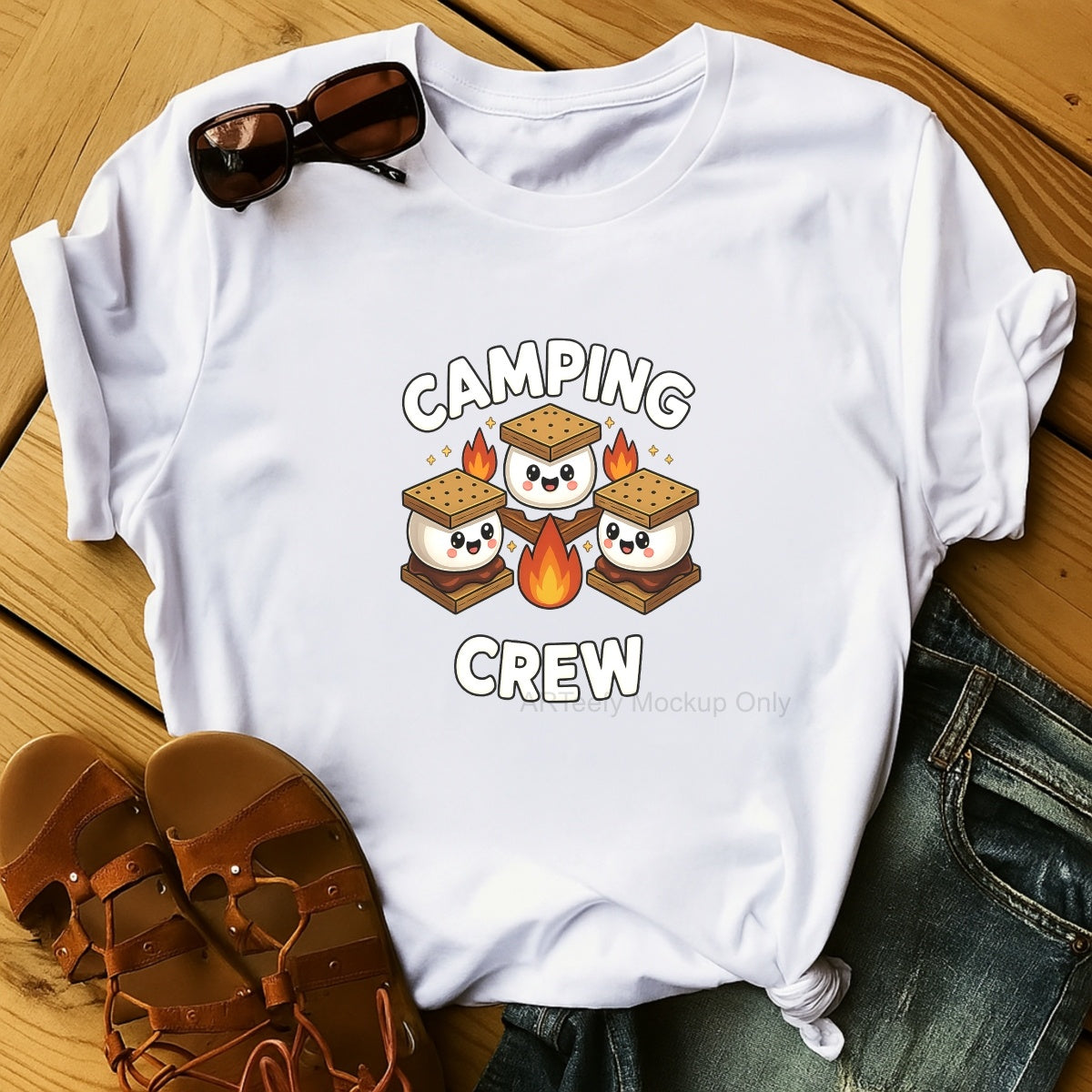 DTF Heat Transfer Iron On Sticker, Cute Camping S'mores & CAMPING CREW Text, For Outdoor Adventure Apparel And Camping Trips