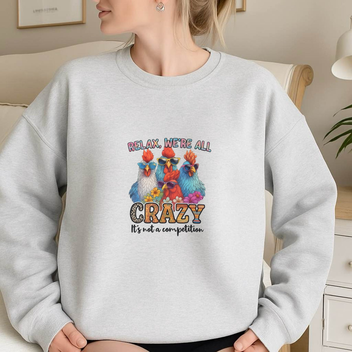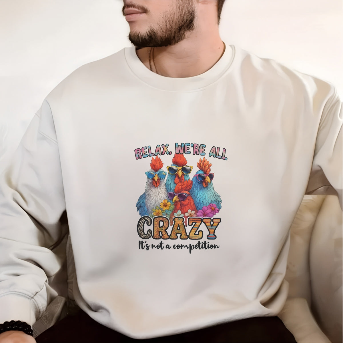DTF Heat Transfer Iron On Sticker, Funky Chicken Crew Graphic, For Humorous Apparel And Lighthearted Deco