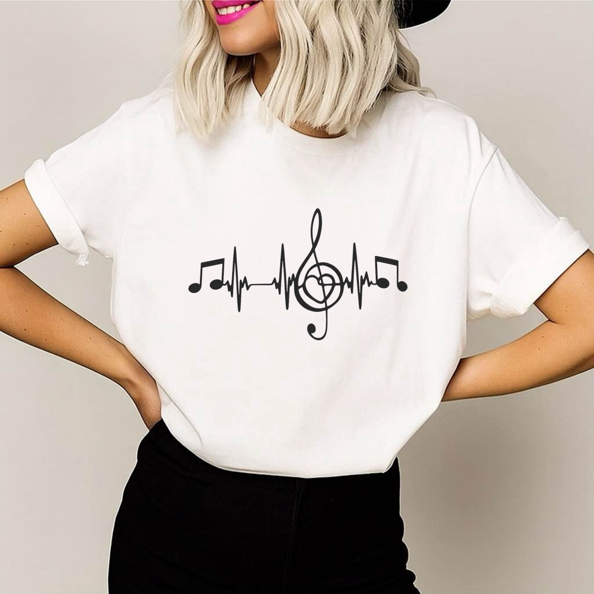 DTF Heat Transfer Iron On Sticker, Music Note & Treble Clef Graphic, For Music Lover Apparel And Studio Decor