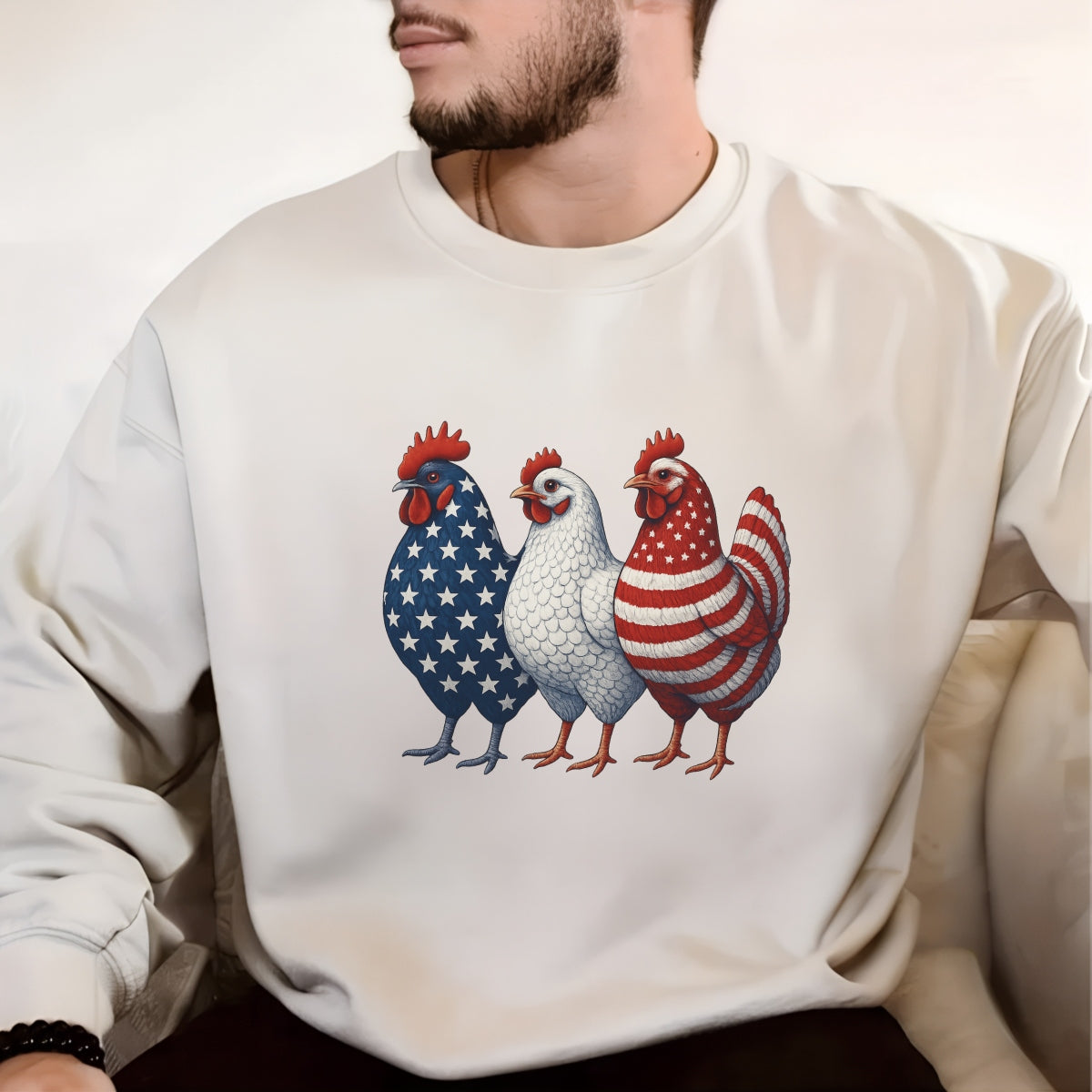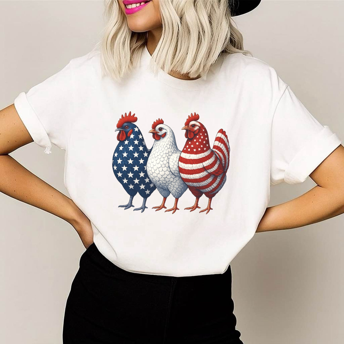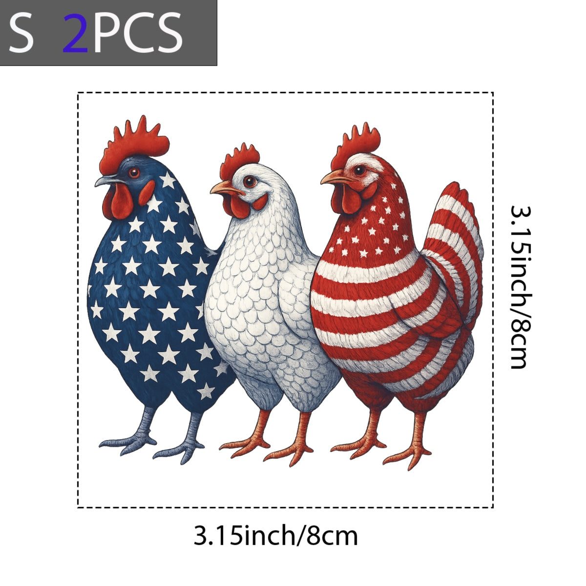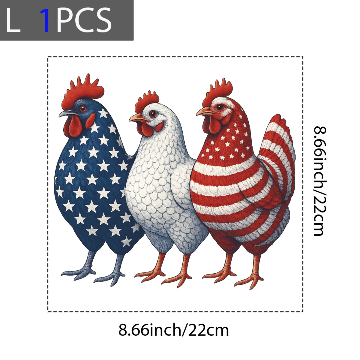 DTF Heat Transfer Iron On Sticker, Patriotic Chicken USA Flag Graphic, for 4th of July Apparel and Independence Day Decor