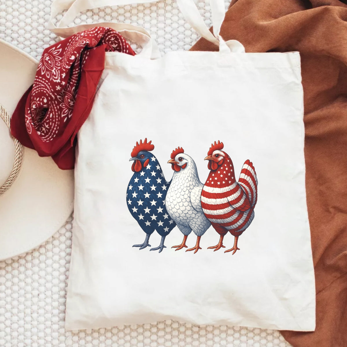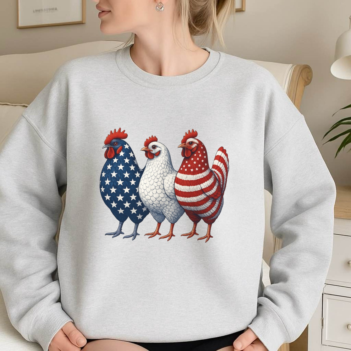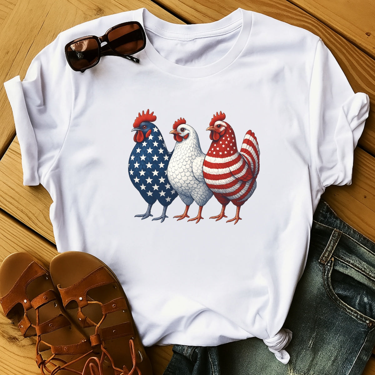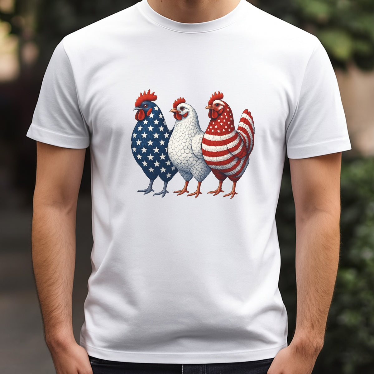 DTF Heat Transfer Iron On Sticker, Patriotic Chicken USA Flag Graphic, for 4th of July Apparel and Independence Day Decor