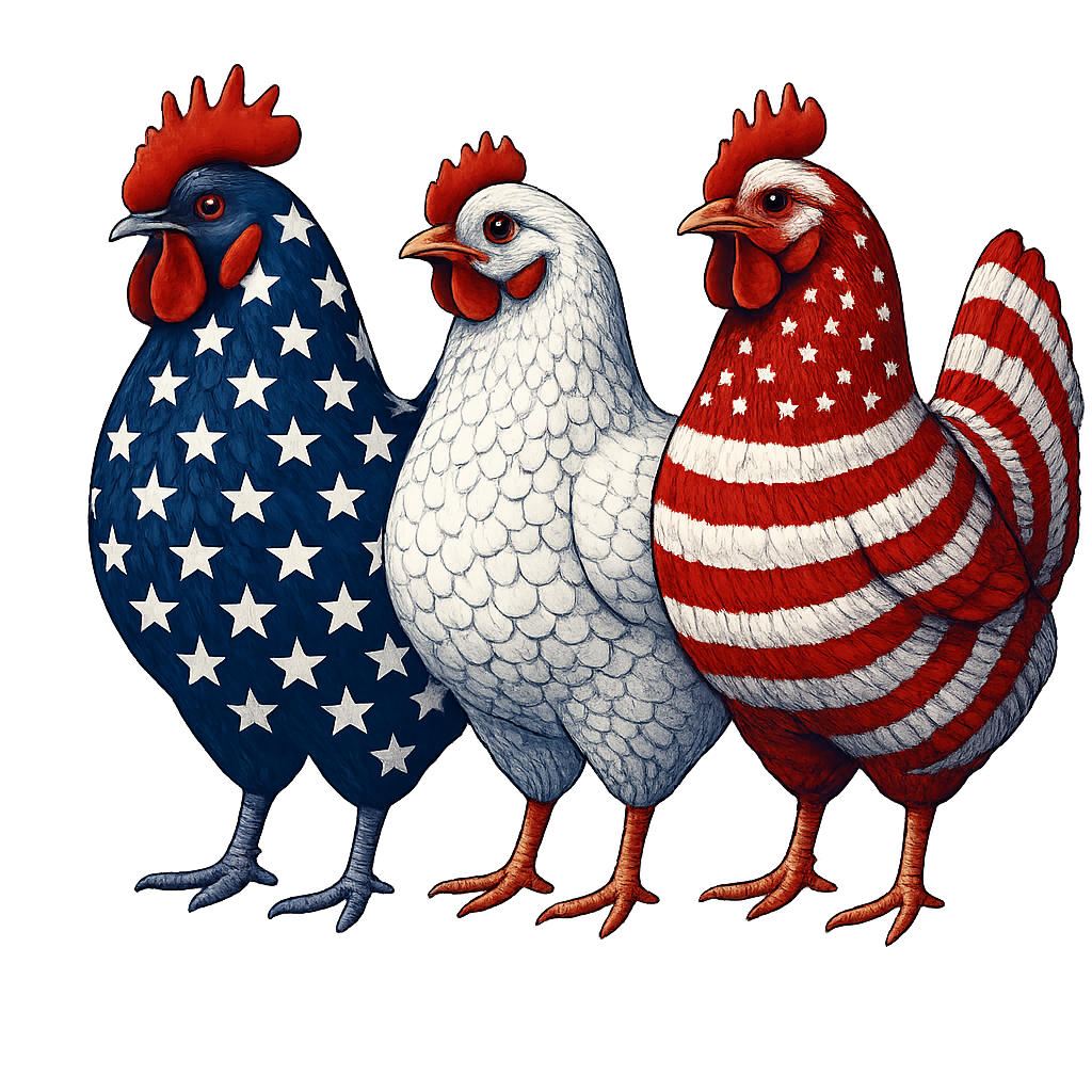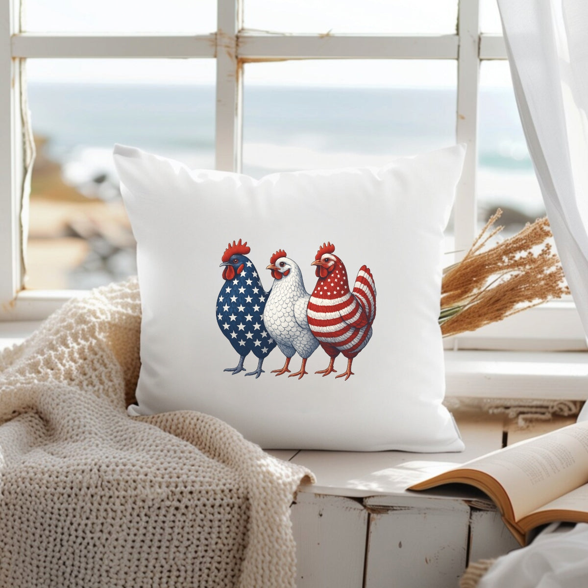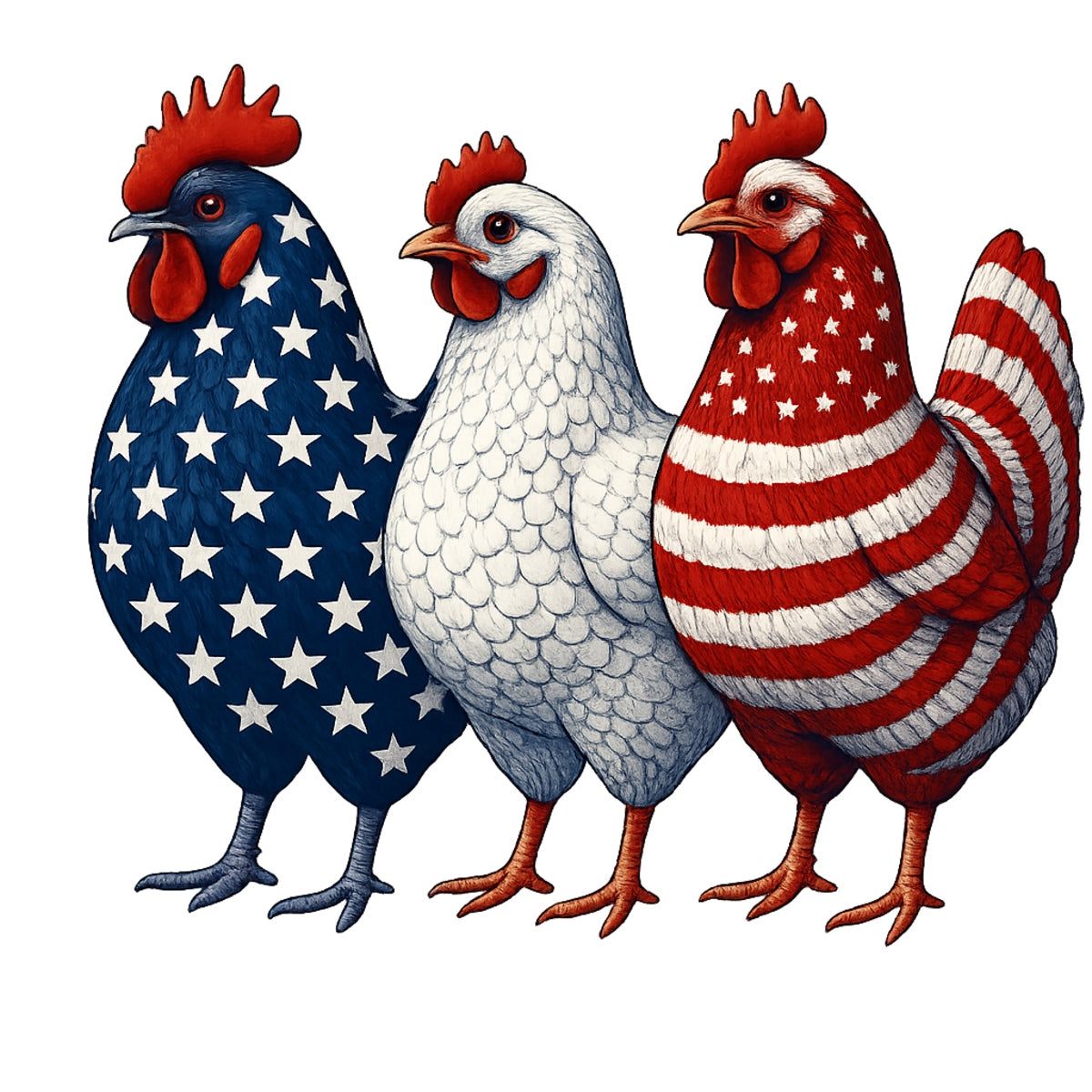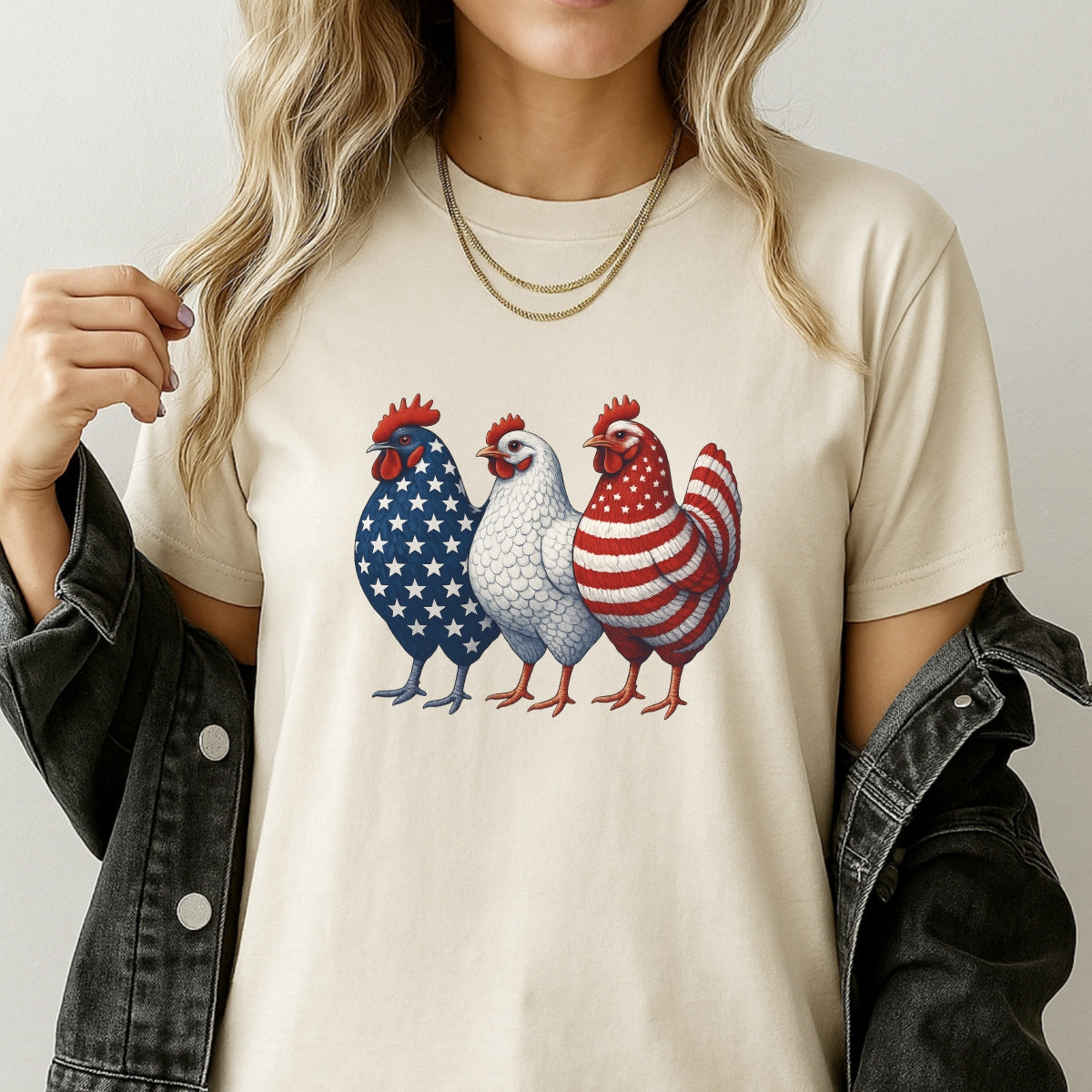 DTF Heat Transfer Iron On Sticker, Patriotic Chicken USA Flag Graphic, for 4th of July Apparel and Independence Day Decor