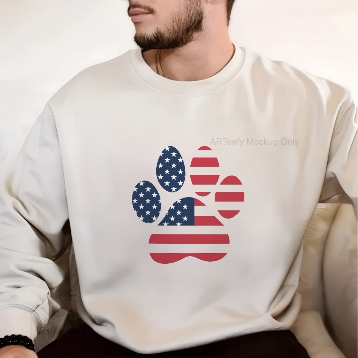 DTF Heat Transfer Iron On Sticker, Patriotic Dog Paw Graphic, For USA Themed Pet Apparel And Fourth Of July Decor