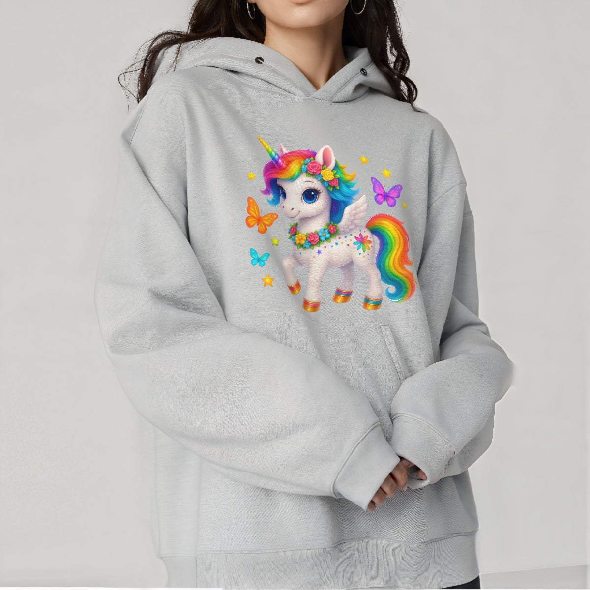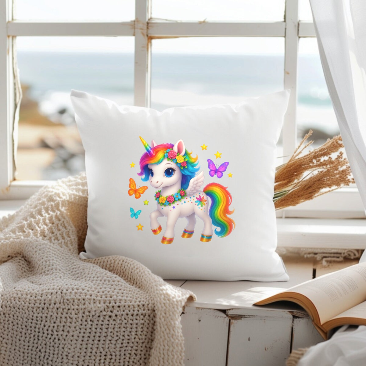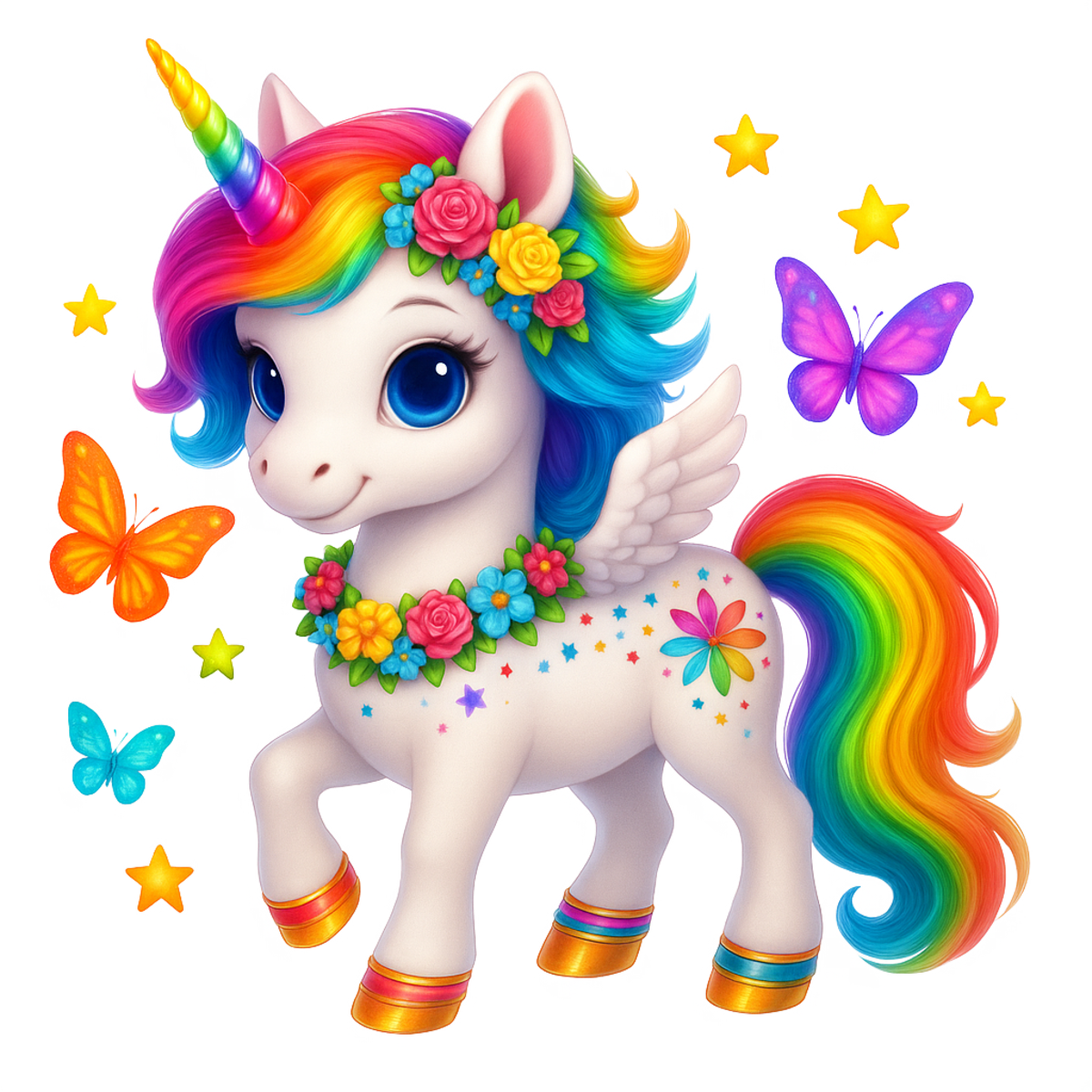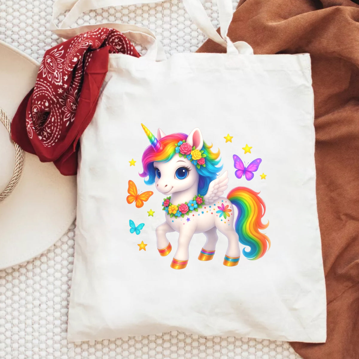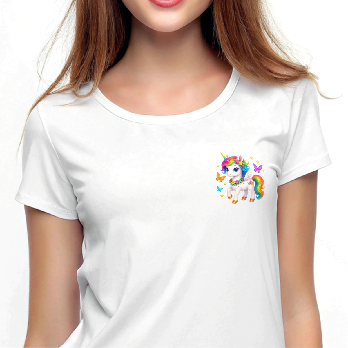 DTF Heat Transfer Iron On Sticker,Rainbow Unicorn with Wings, Flowers, and Stars Design for DIY Shirt, Fantasy Lover Gift, Magical Aesthetic Apparel Decoration