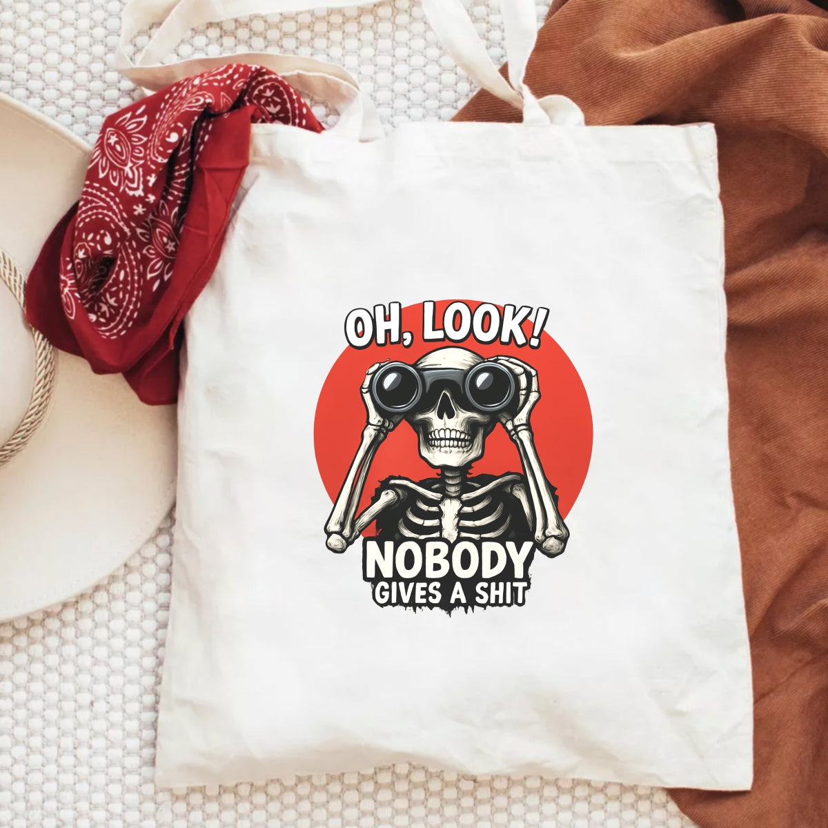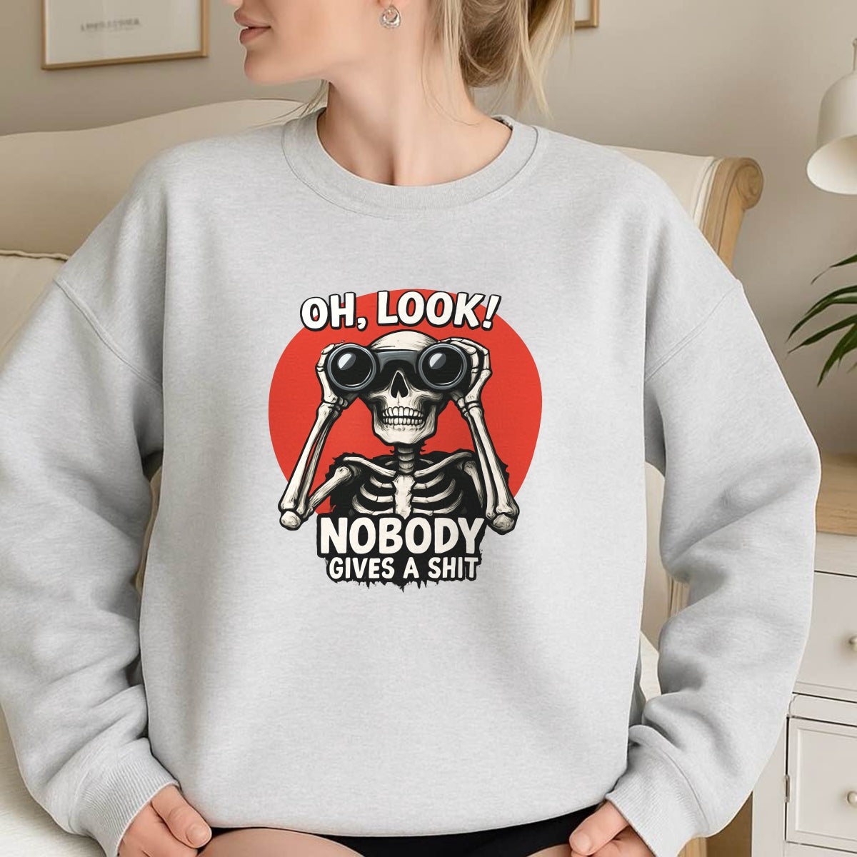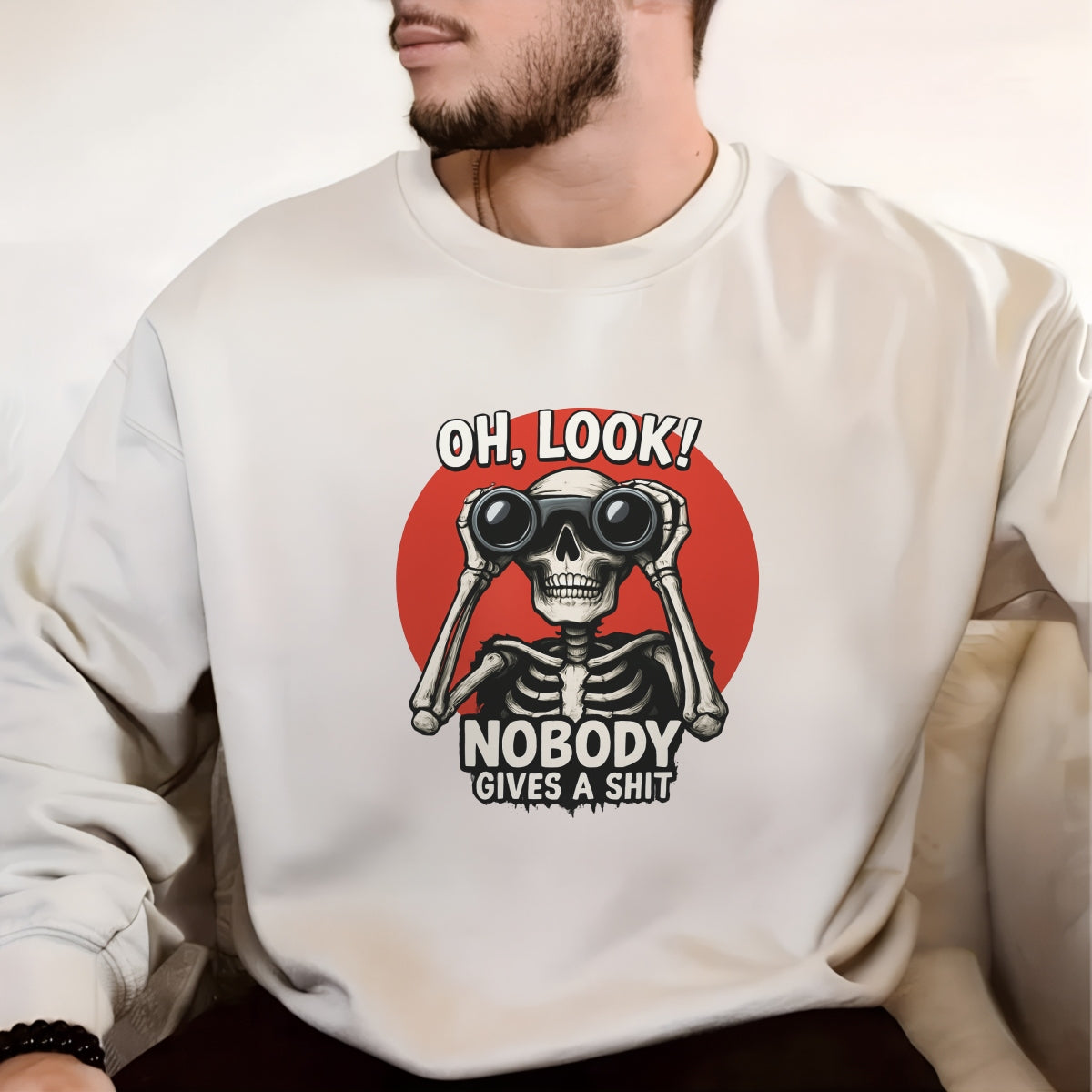 DTF Heat Transfer Iron On Sticker, Sarcastic Skull with Binoculars Graphic, for Edgy Apparel and Humor Driven Merch