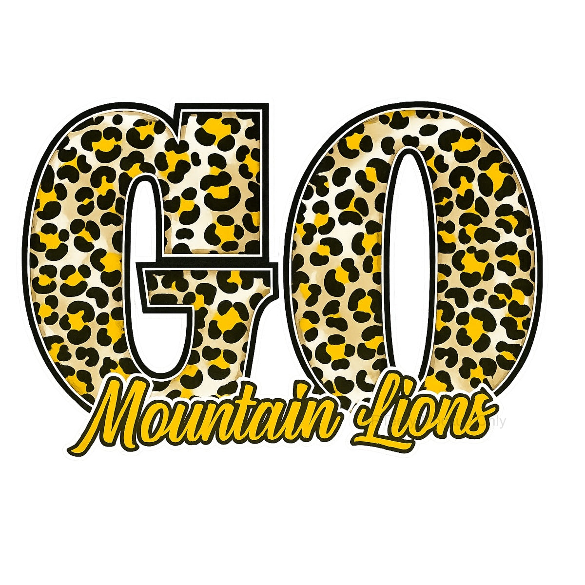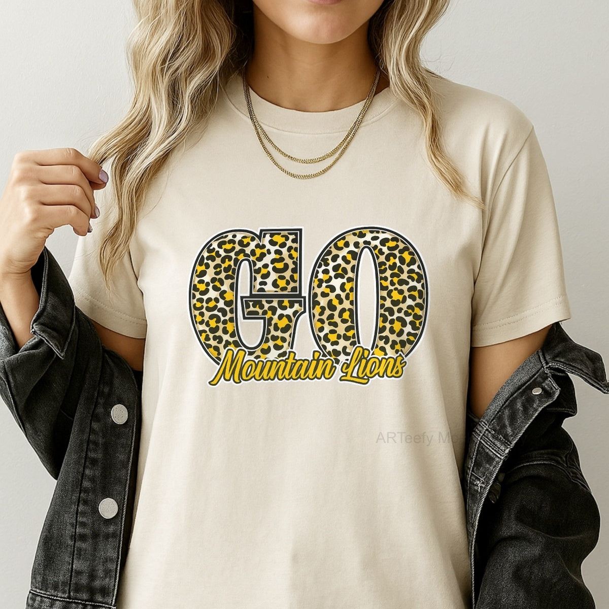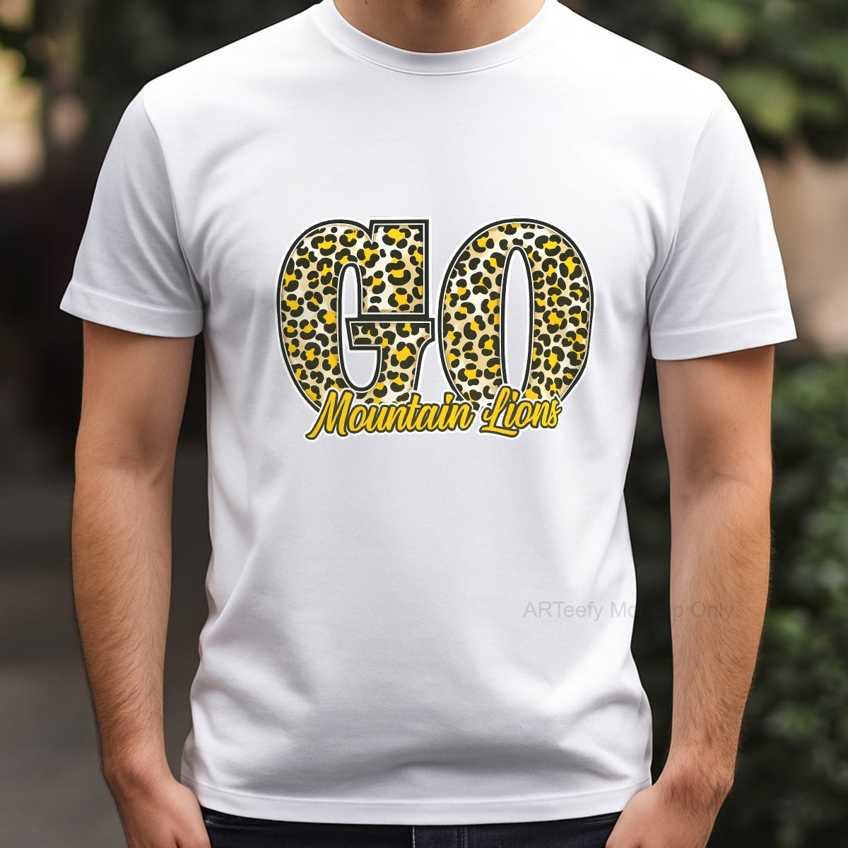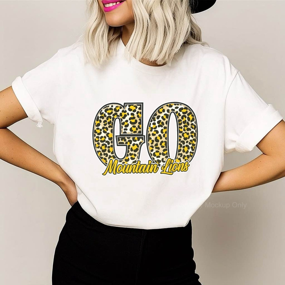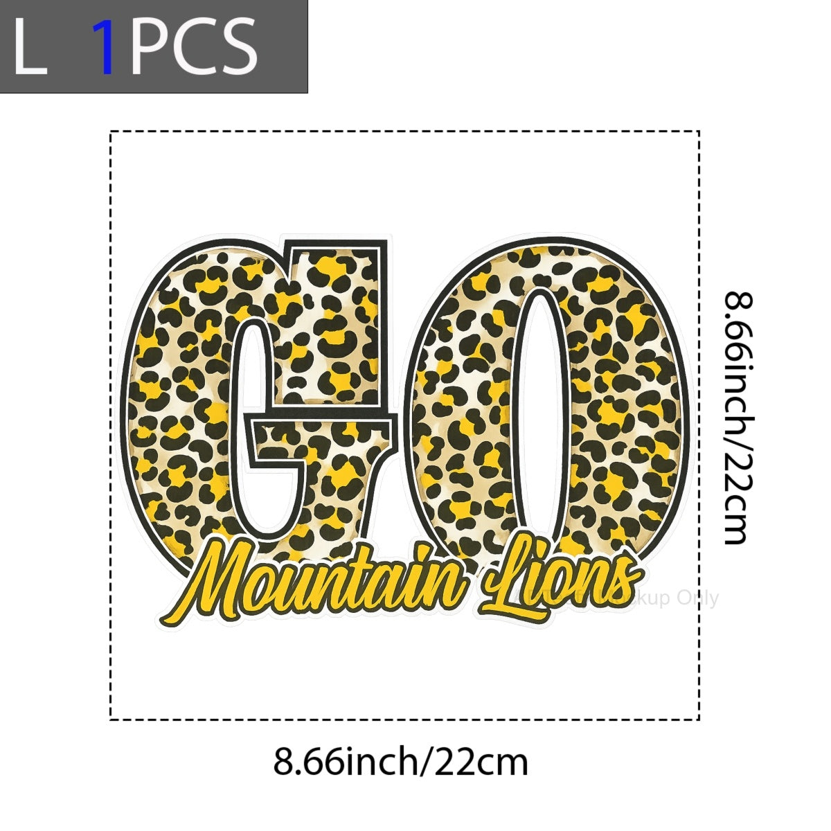 DTF Heat Transfer Iron On Sticker, Sports Themed GO Mountain Lions Leopard Print Graphic, For Team Spirit Apparel And School Event Decor