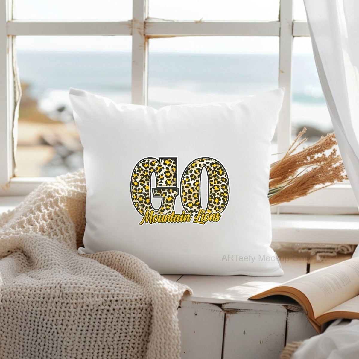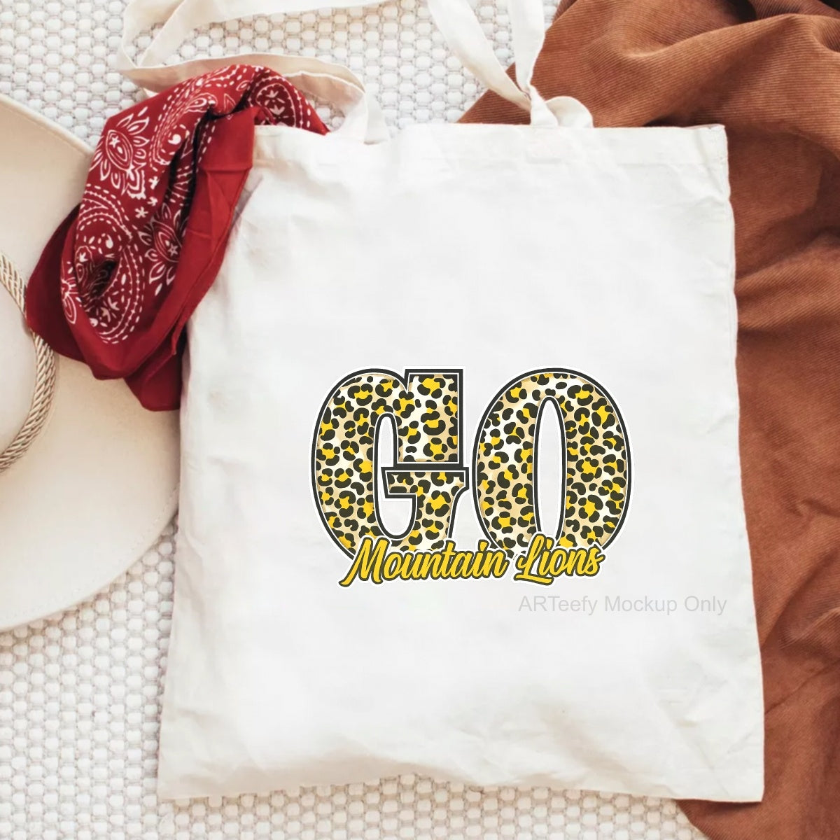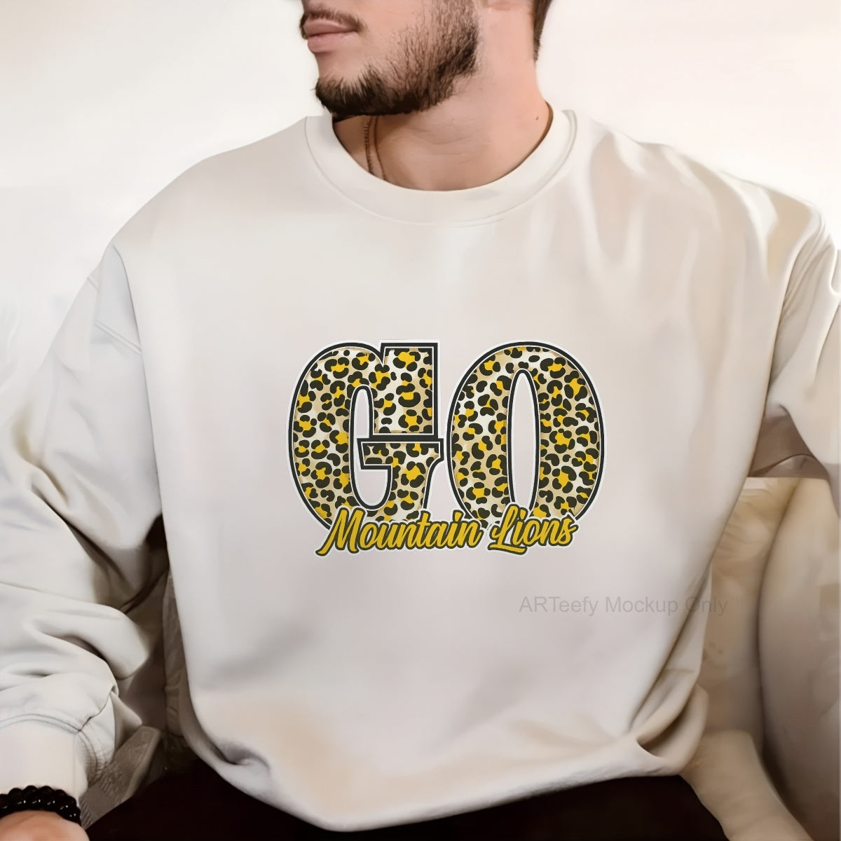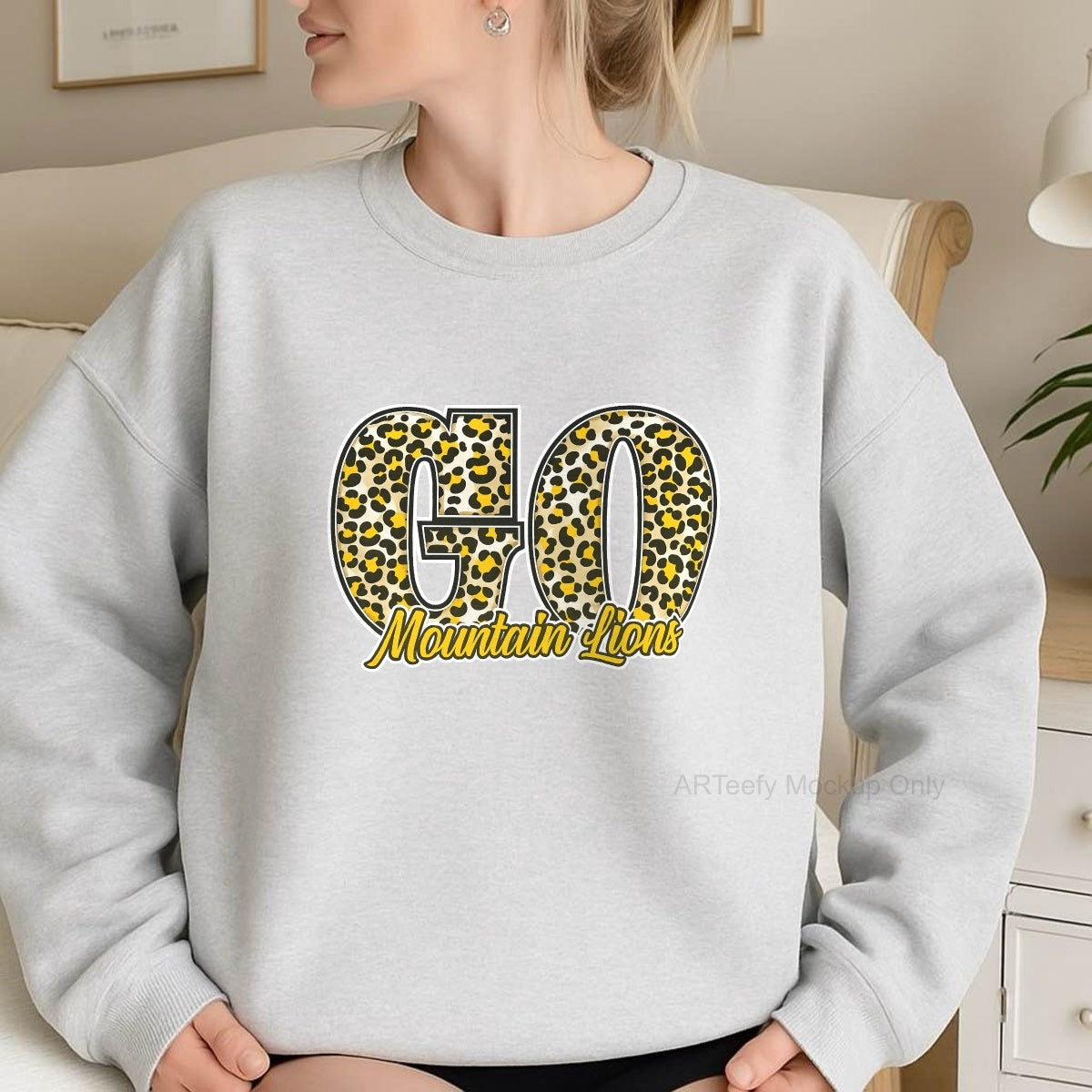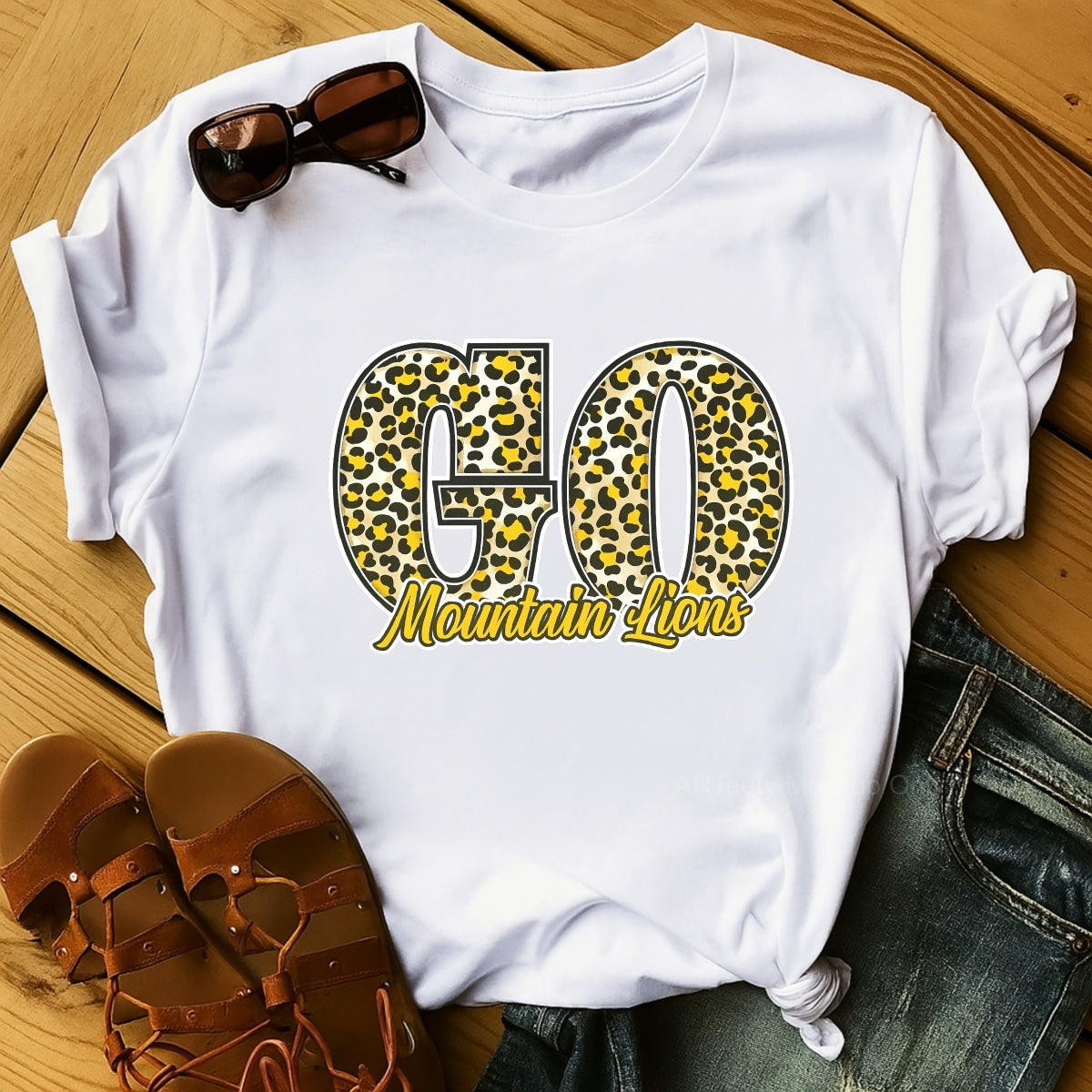 DTF Heat Transfer Iron On Sticker, Sports Themed GO Mountain Lions Leopard Print Graphic, For Team Spirit Apparel And School Event Decor