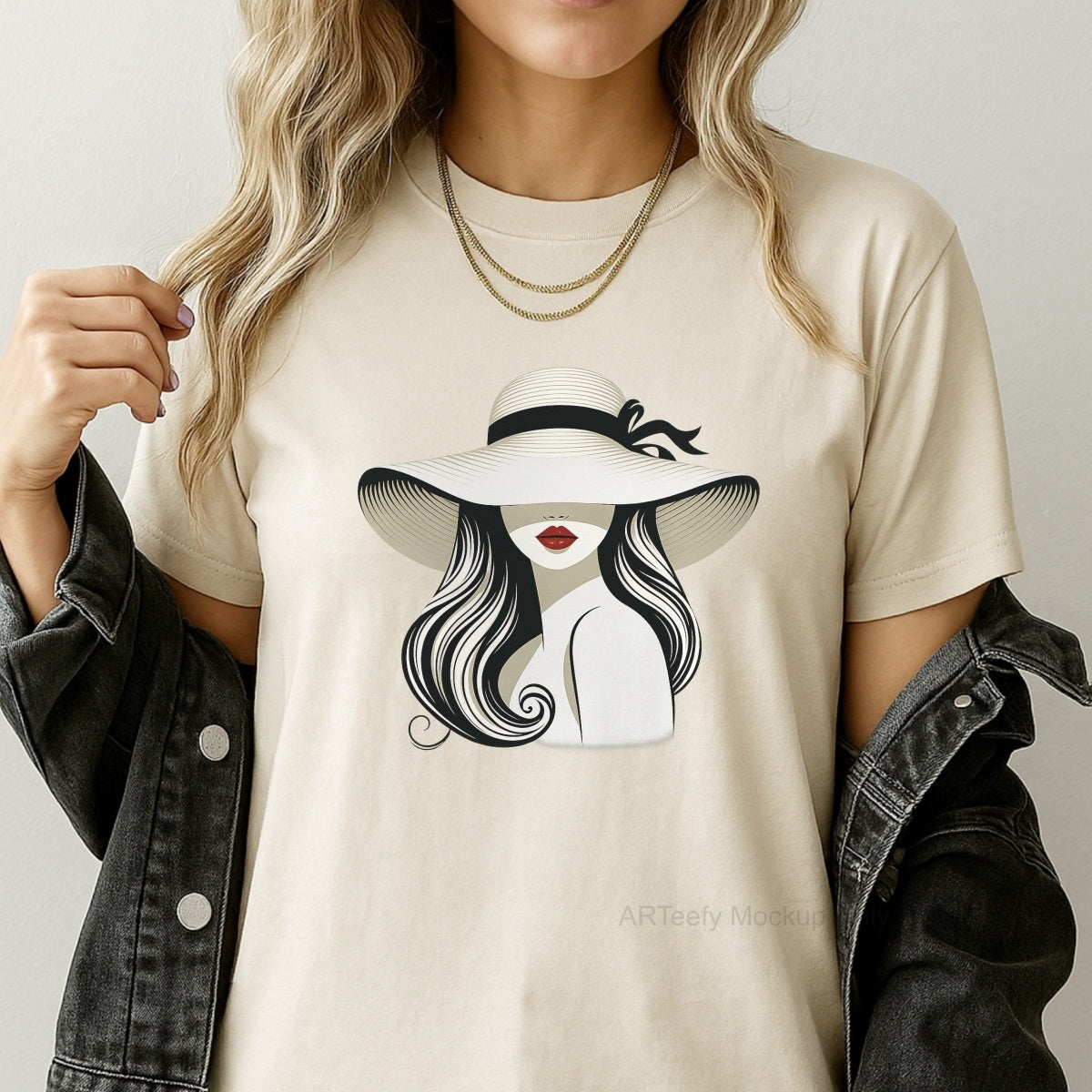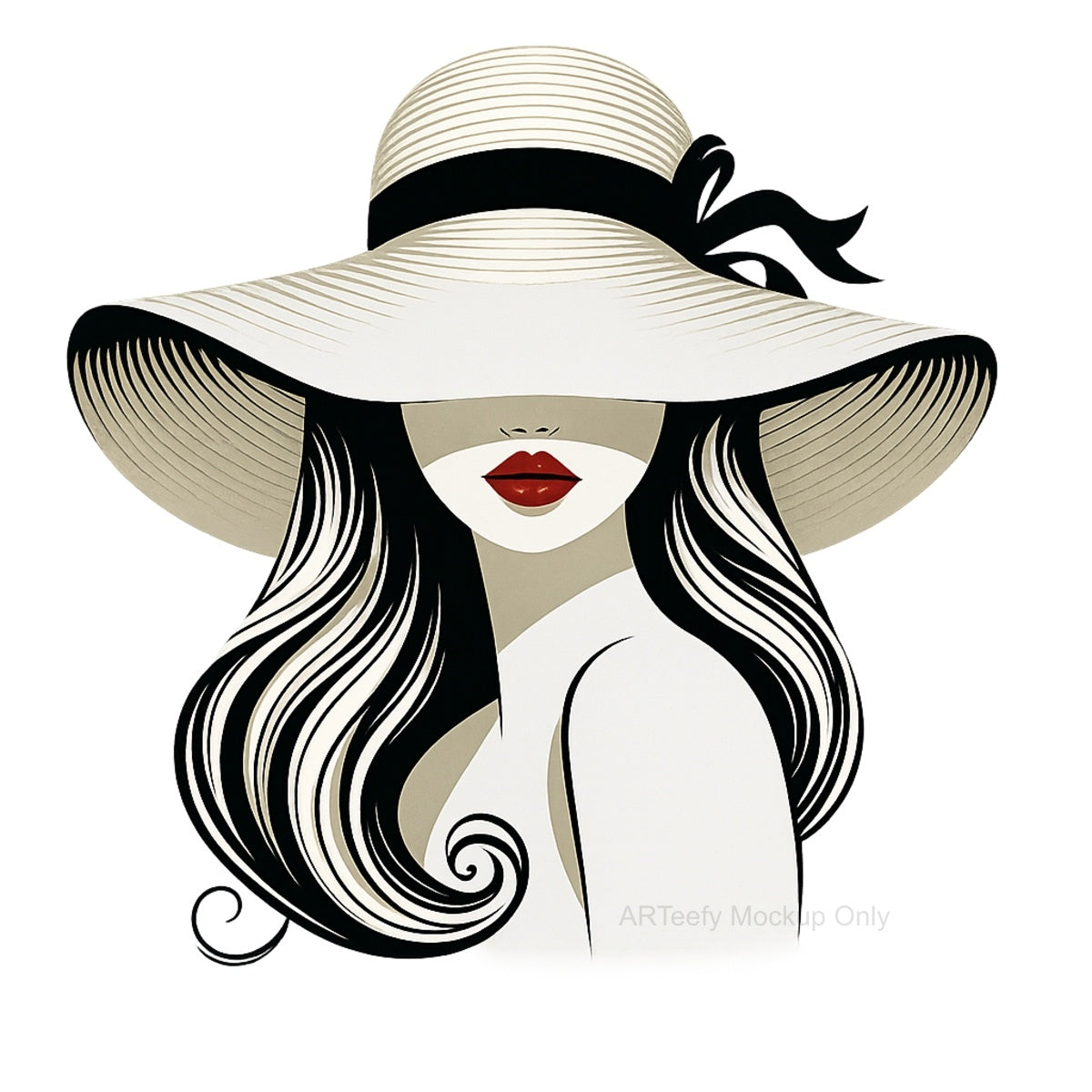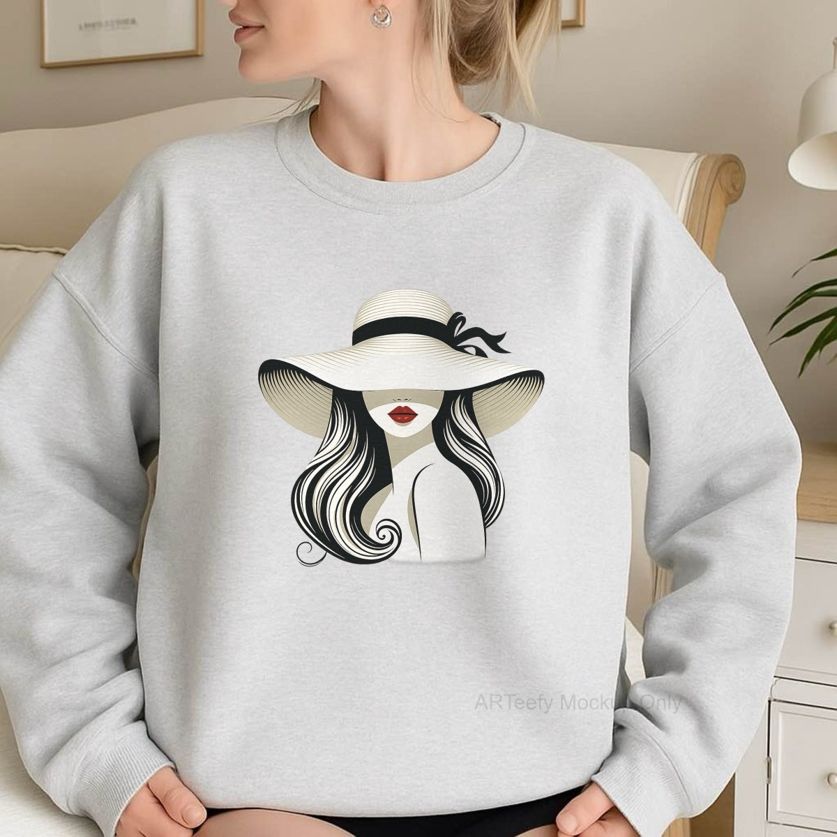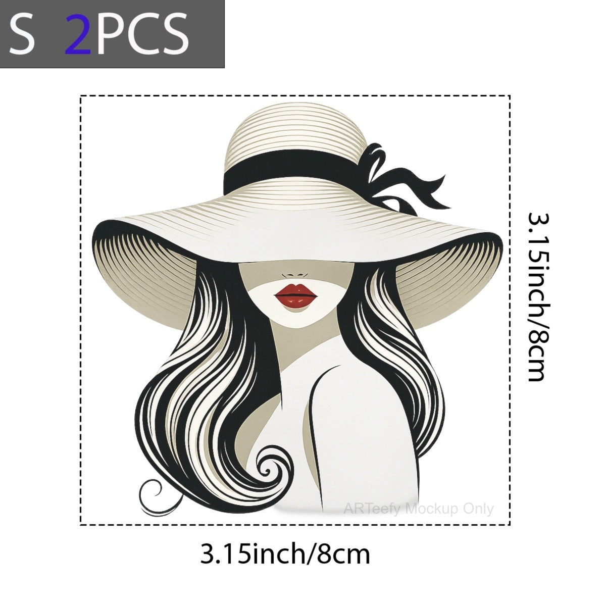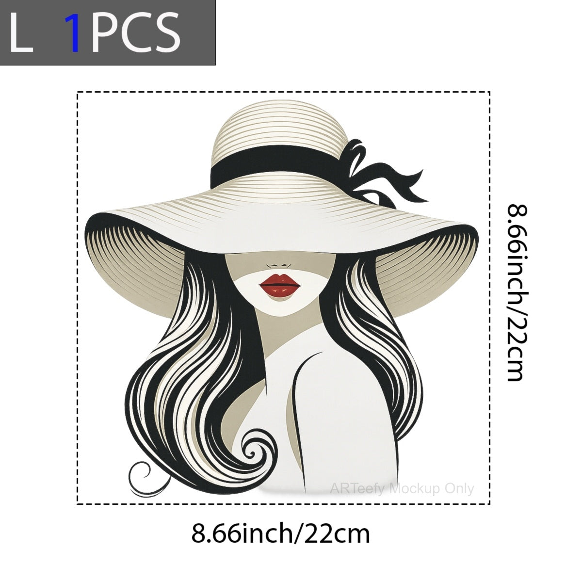 DTF Heat Transfer Iron On Sticker, Stylish Lady With Wide Brimmed Hat Graphic, For Fashion Forward Apparel And Chic Decor