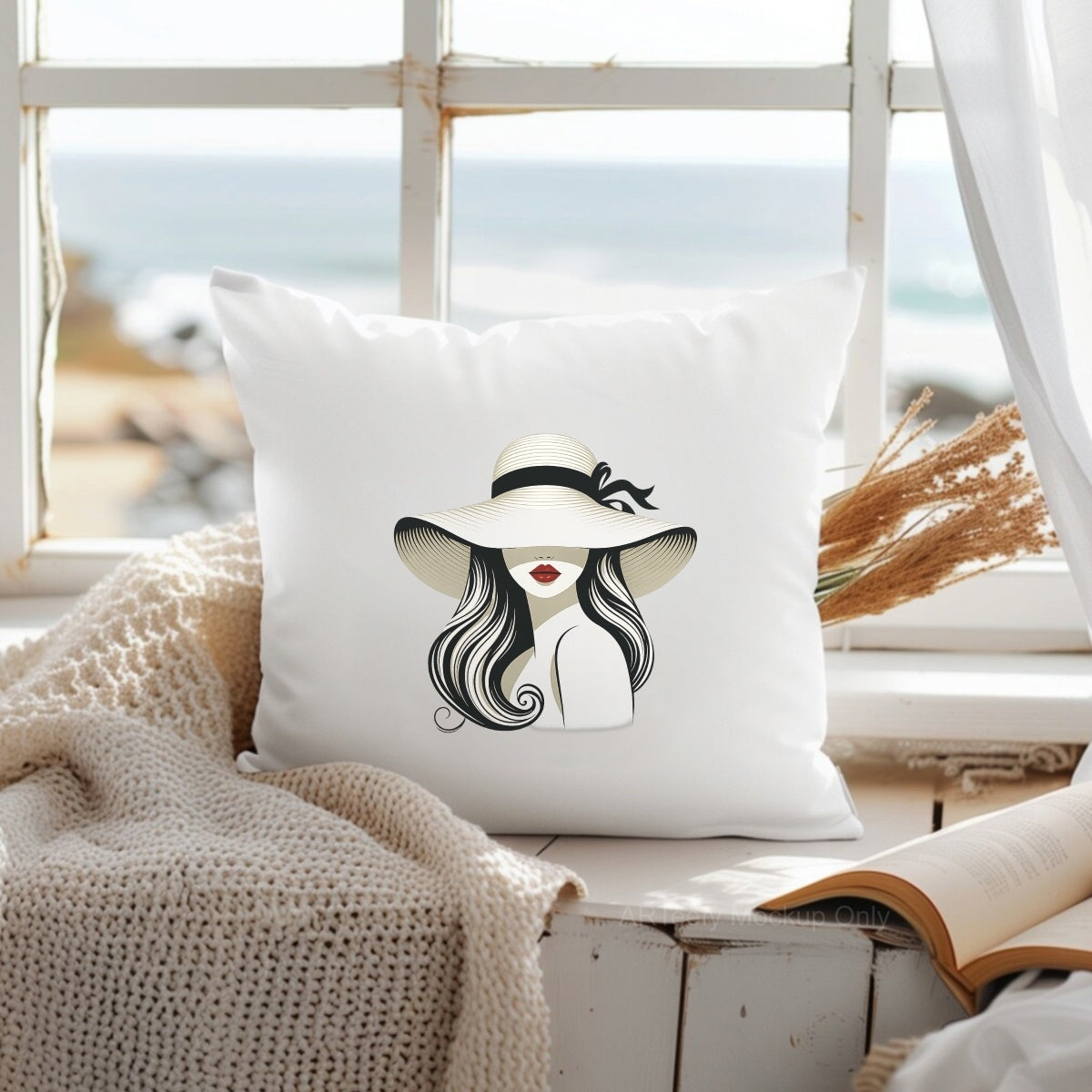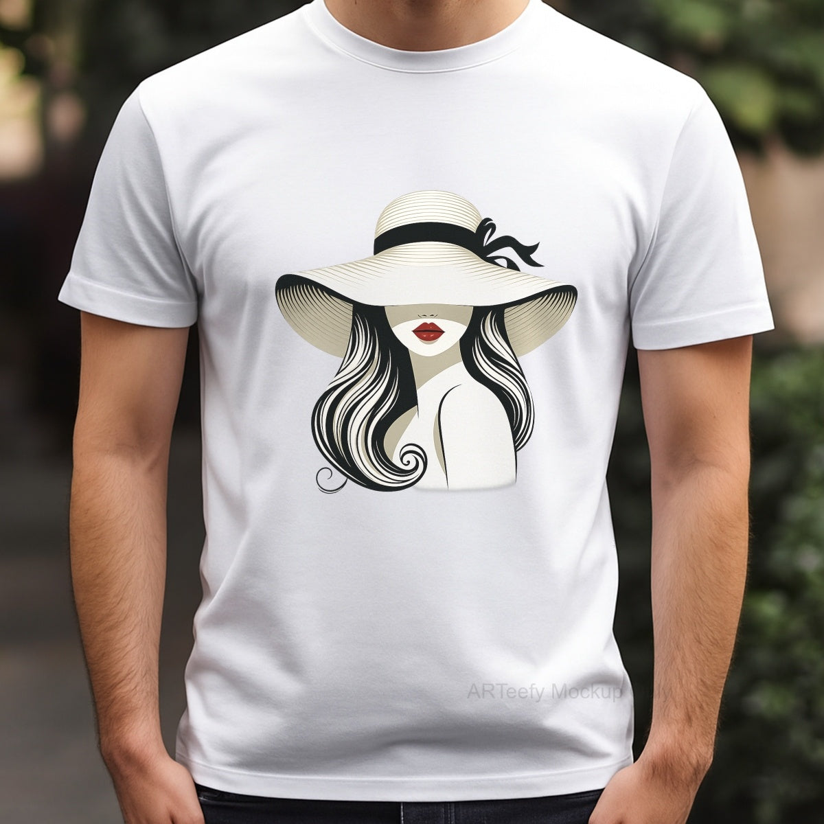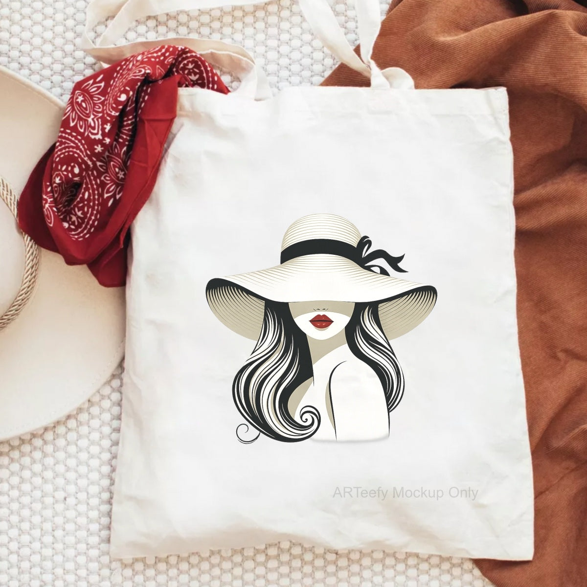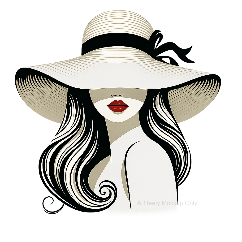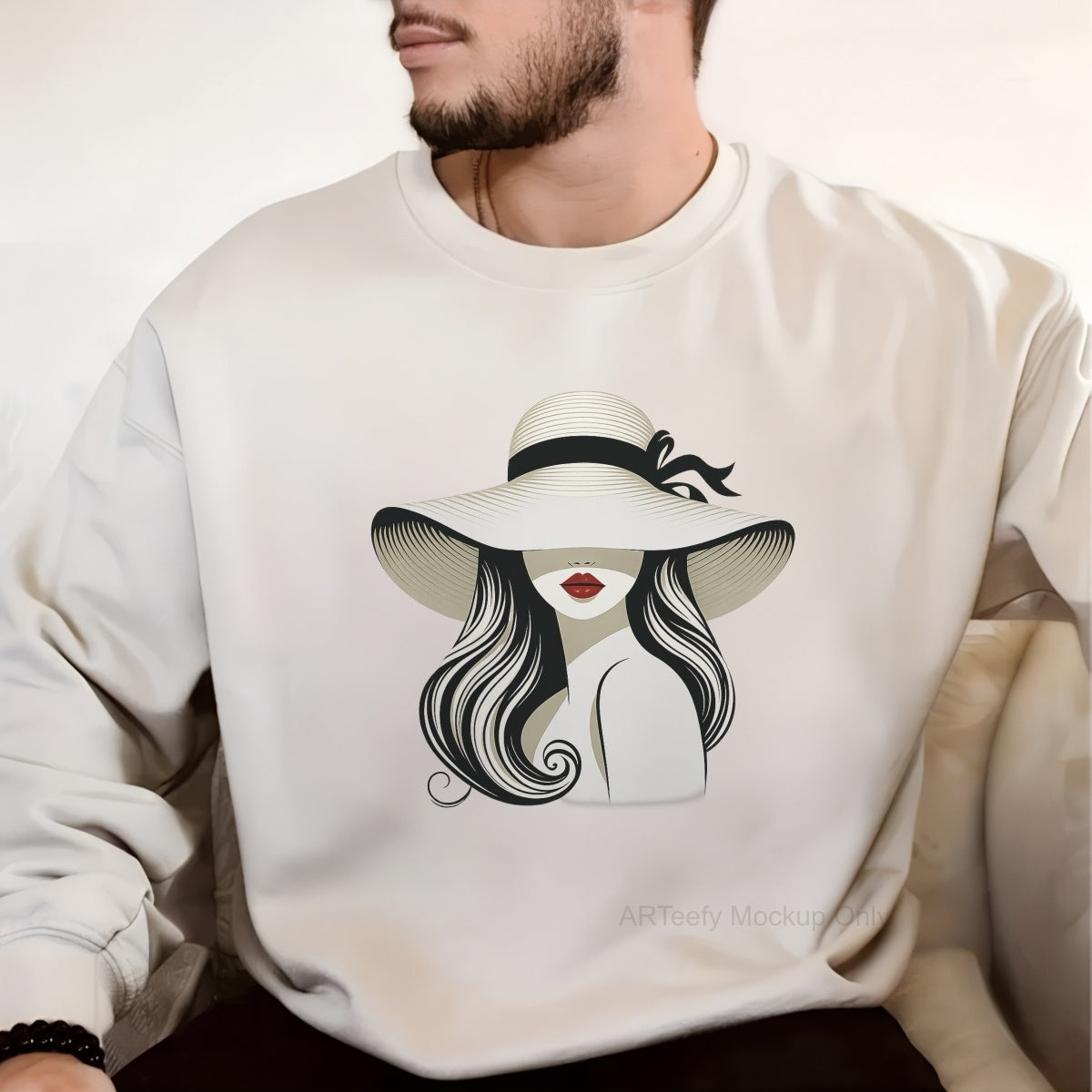 DTF Heat Transfer Iron On Sticker, Stylish Lady With Wide Brimmed Hat Graphic, For Fashion Forward Apparel And Chic Decor