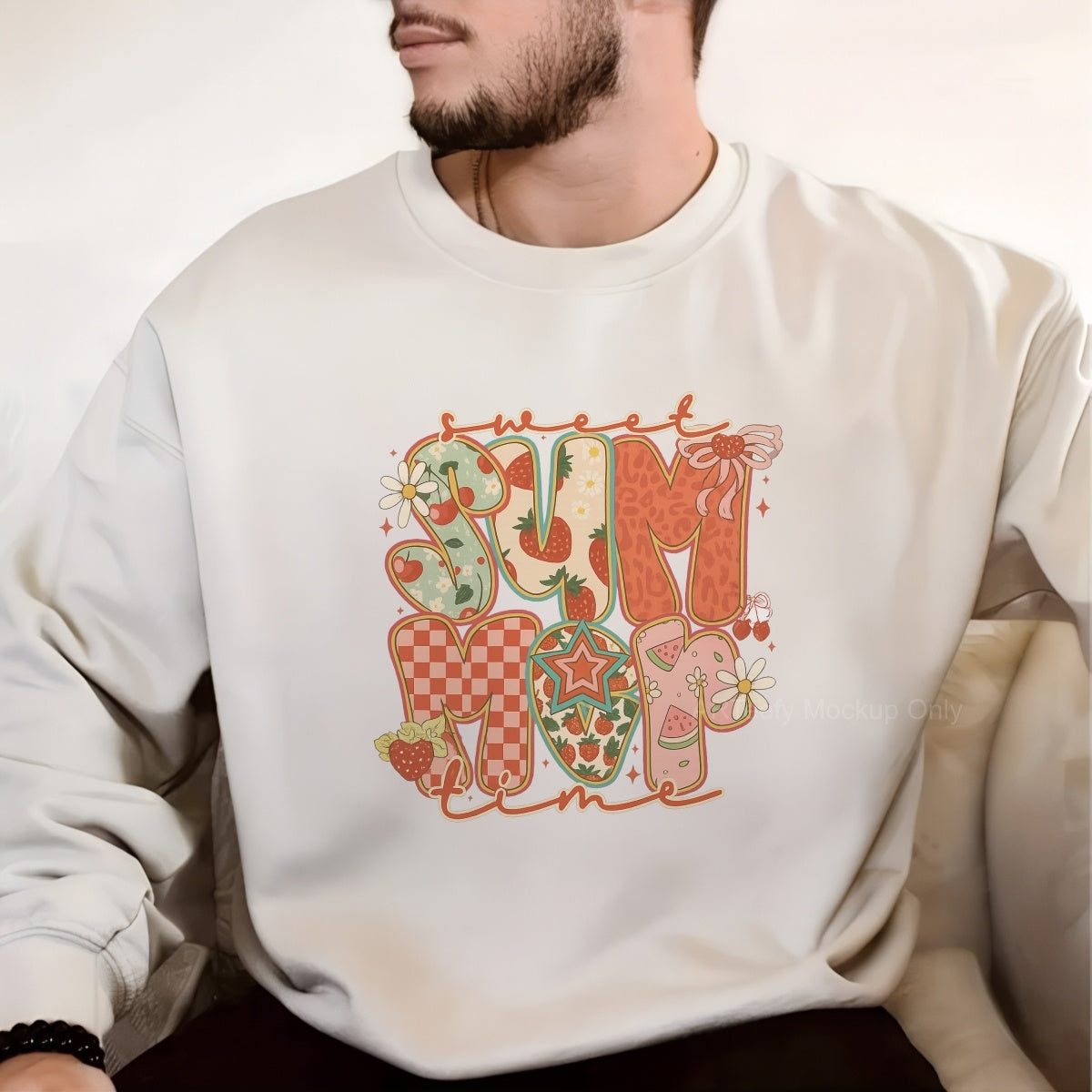 DTF Heat Transfer Iron On Sticker, Summer Themed Sweet Summer Time Fruit & Pattern Graphic, For Beachwear And Vacation Decor