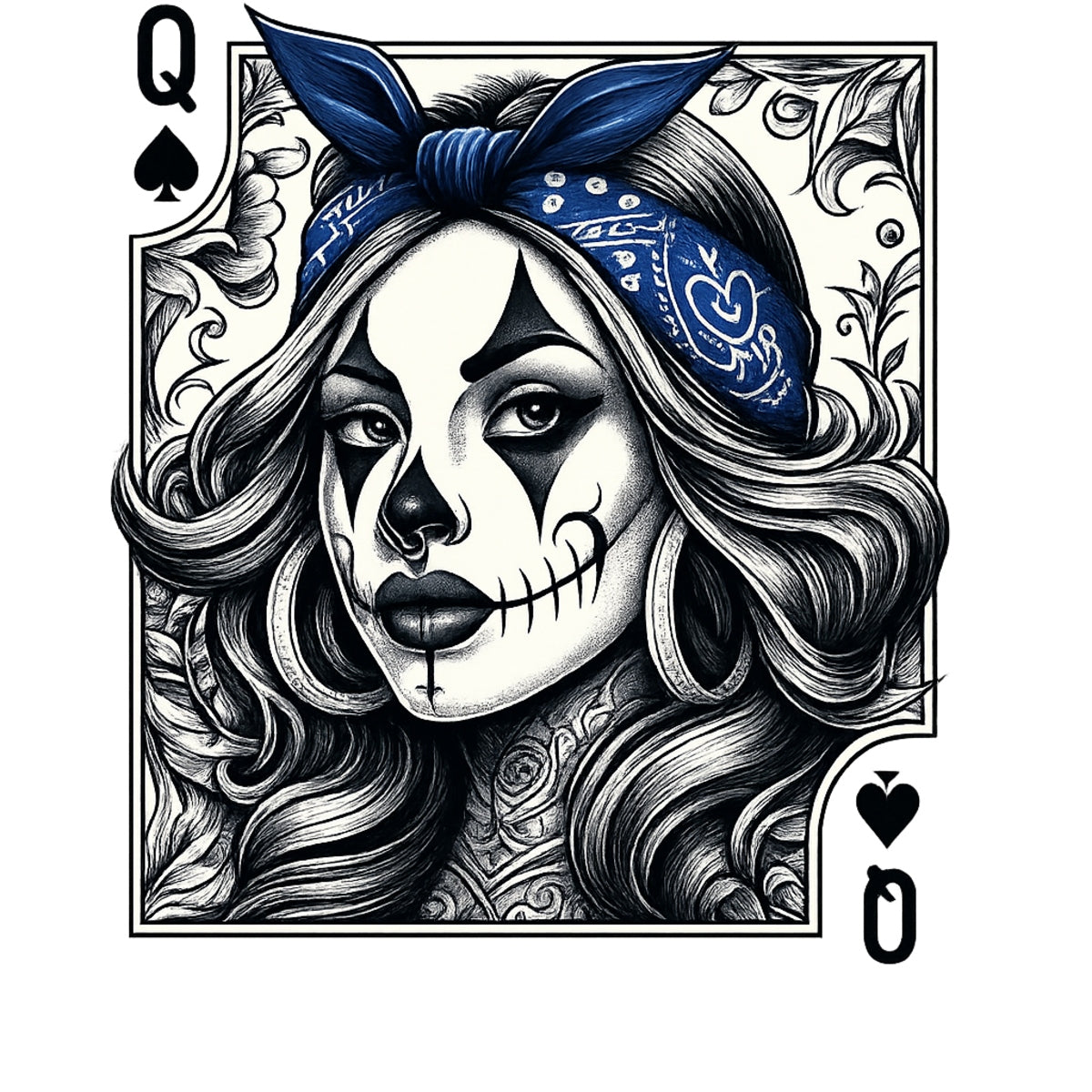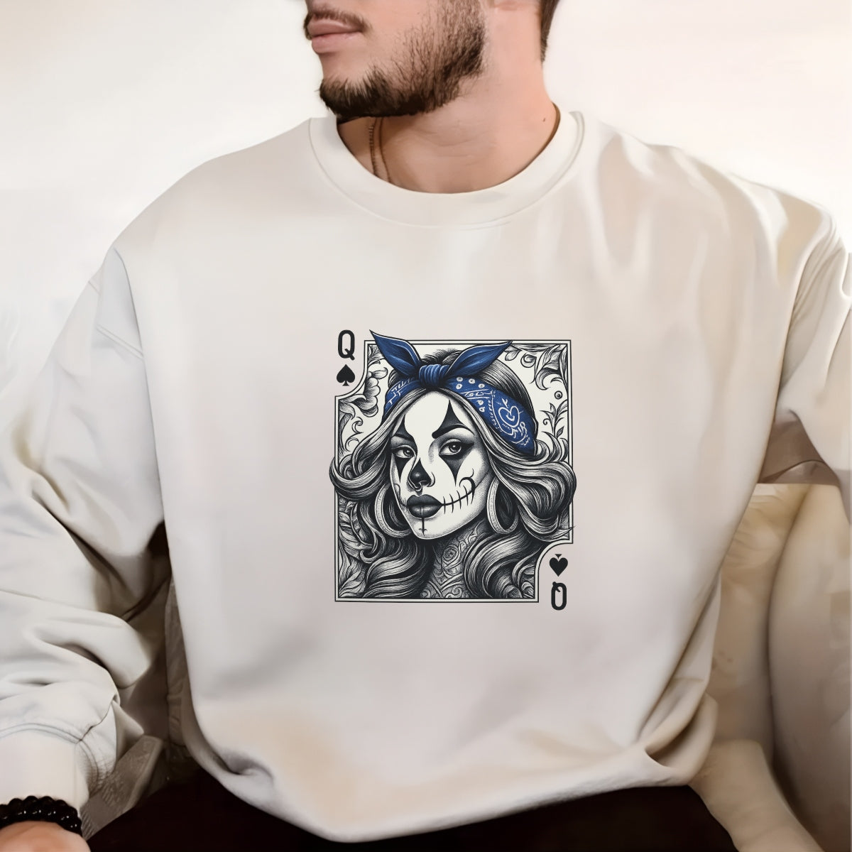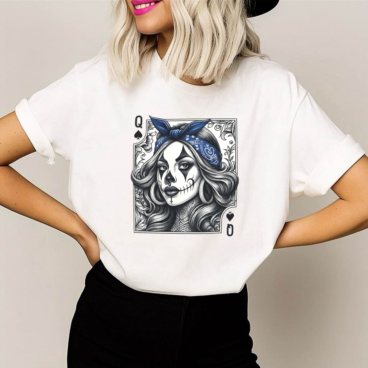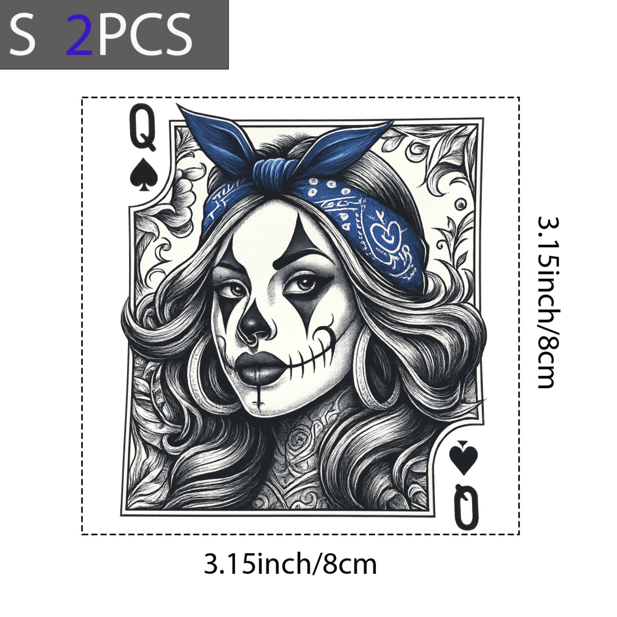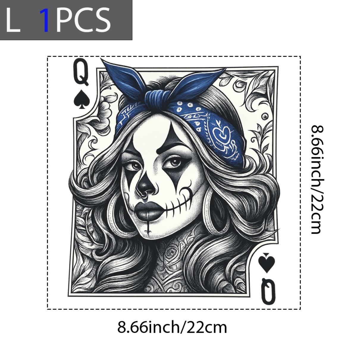 DTF Heat Transfer Iron On Sticker, Tattoo Style Queen Of Spades Graphic, For Edgy Apparel And Tattoo Art Decor
