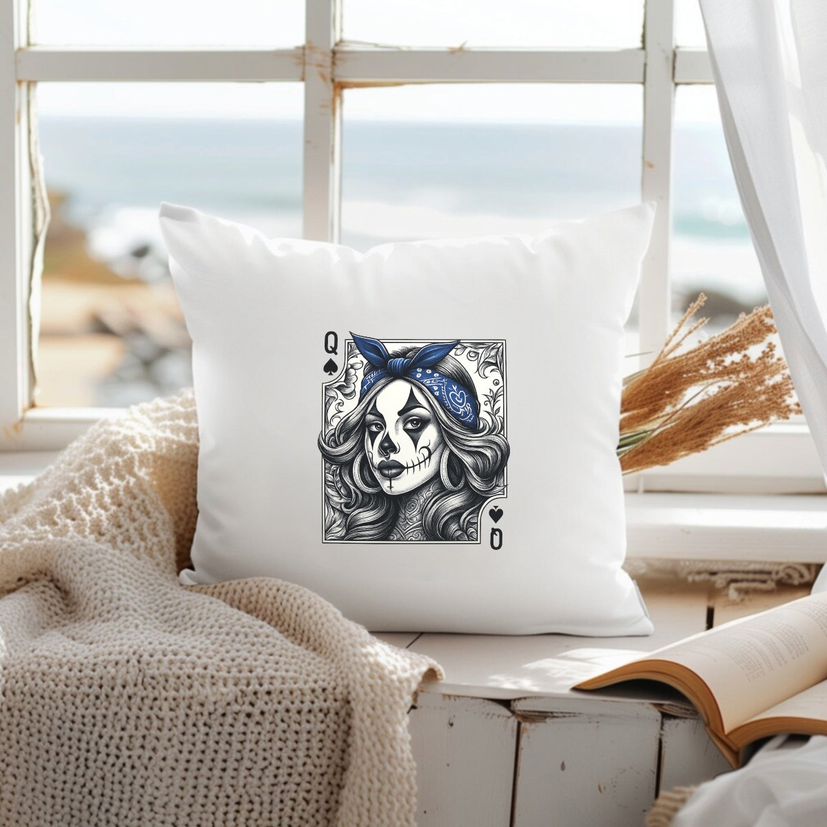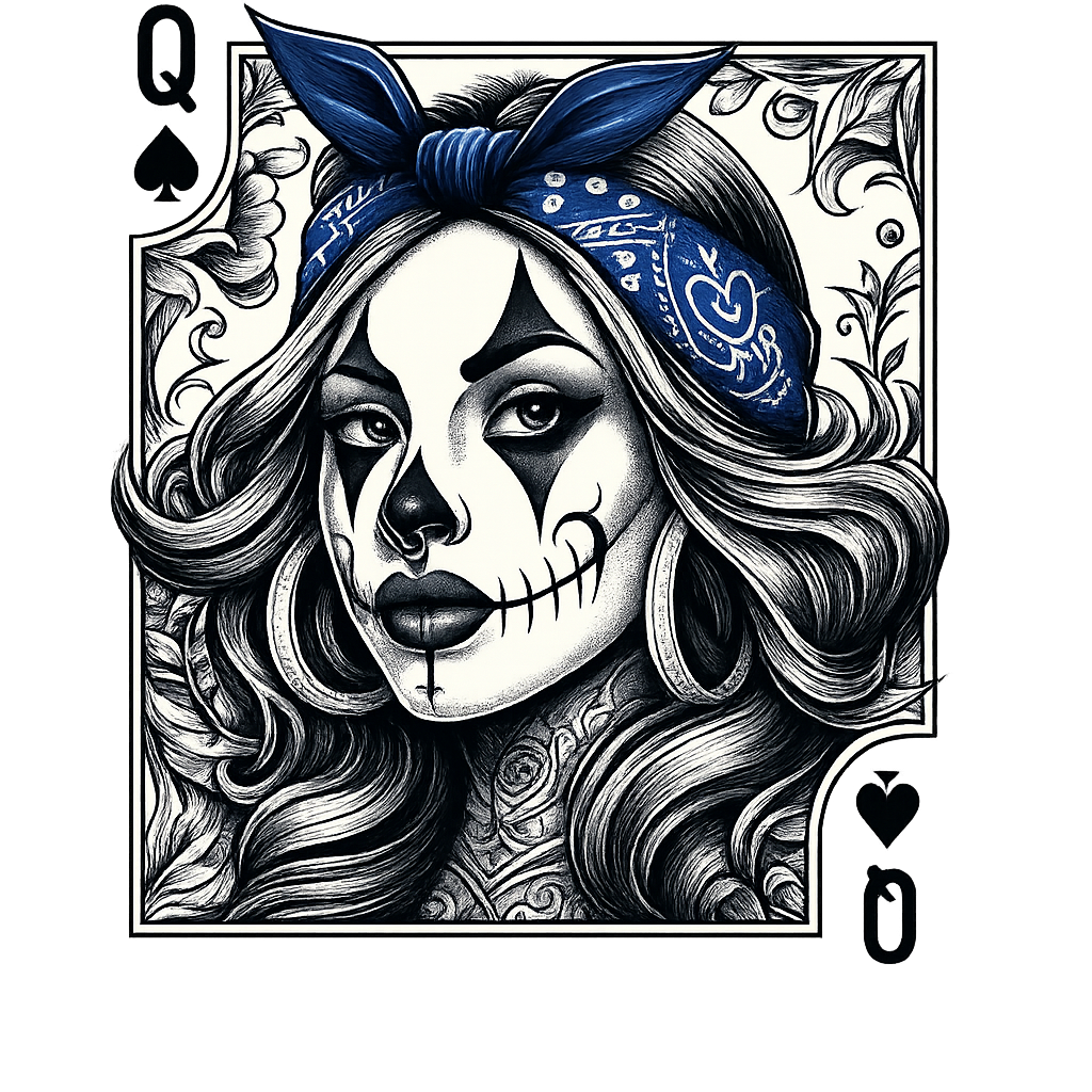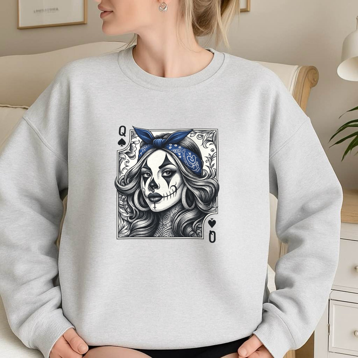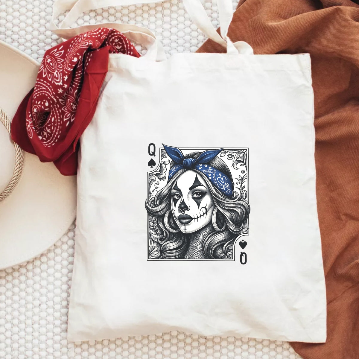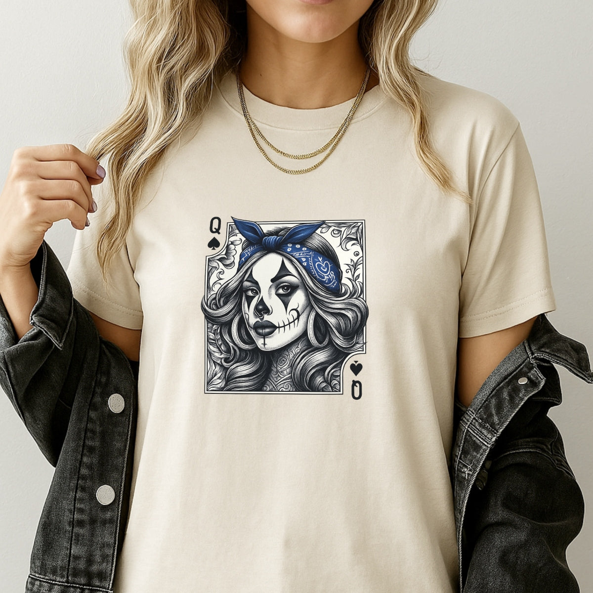DTF Heat Transfer Iron On Sticker, Tattoo Style Queen Of Spades Graphic, For Edgy Apparel And Tattoo Art Decor