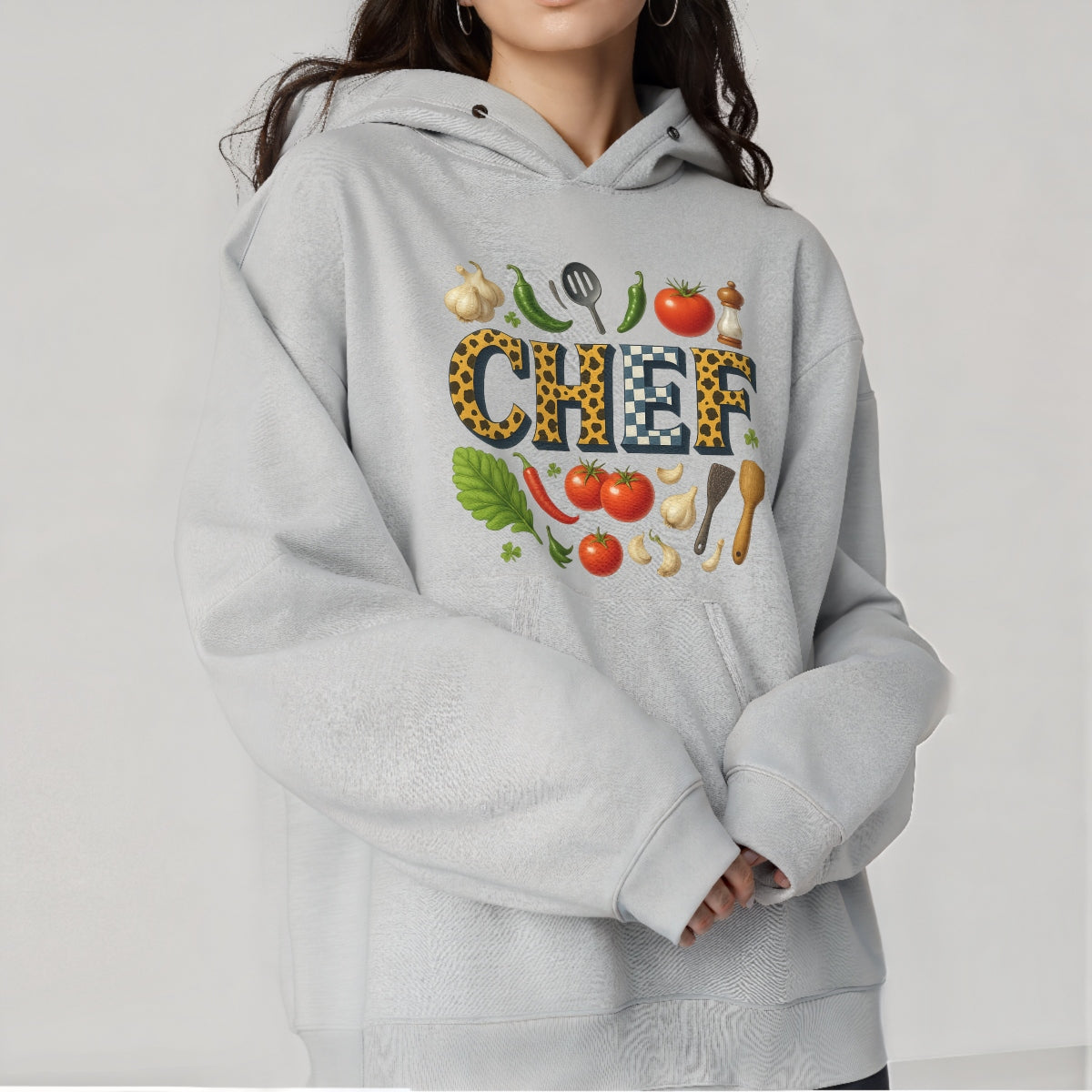 DTF Heat Transfer Iron On Sticker , Vibrant Chef, Garlic, Chili Peppers and Kitchen Tools , Wholesome Kitchen Aesthetic Sticker for Home Decor, Cooking Enthusiast Apparel and Tote Bags