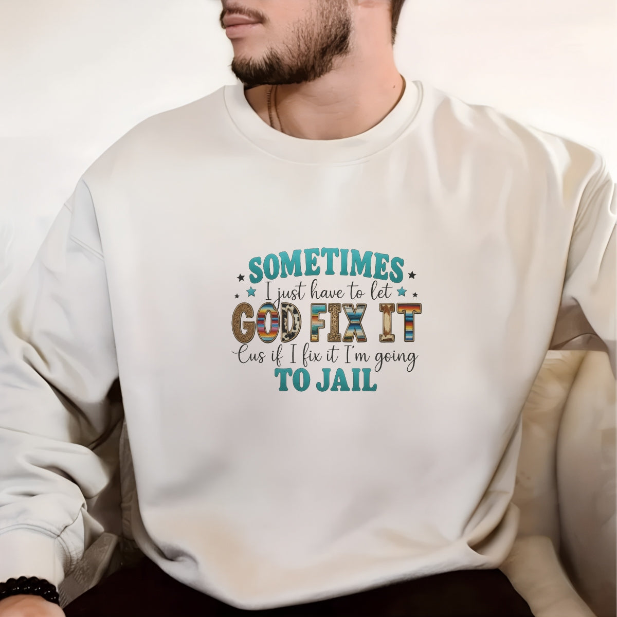 DTF Heat Transfer Iron On Sticker, Western - Style Humorous Faith Quote Graphic, for Funny Religious Apparel and Casual Decor