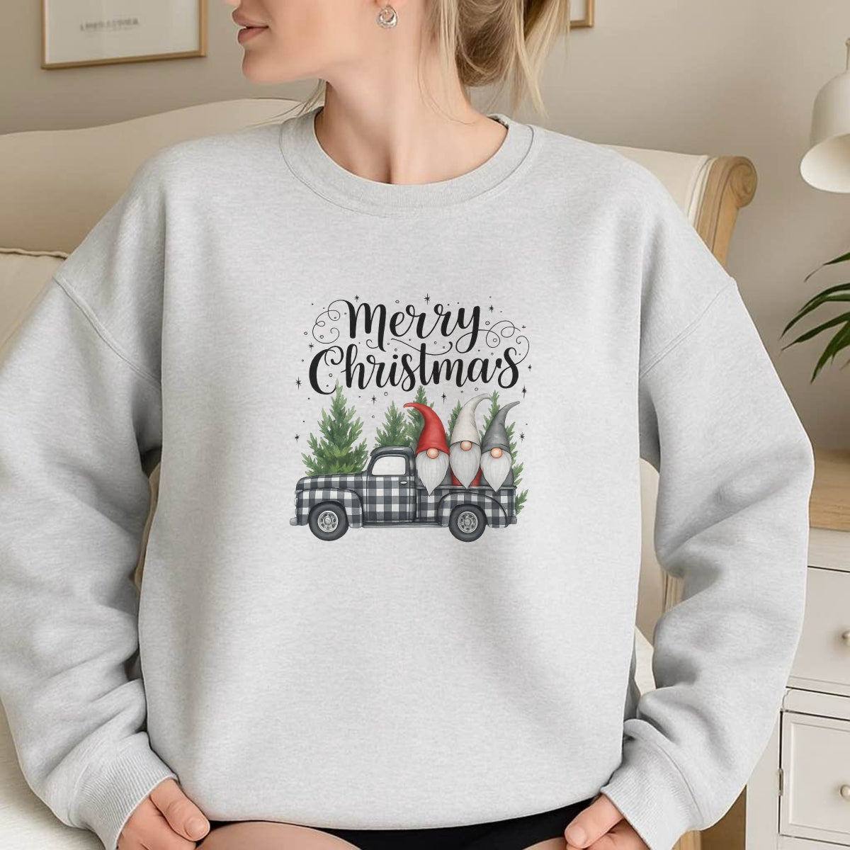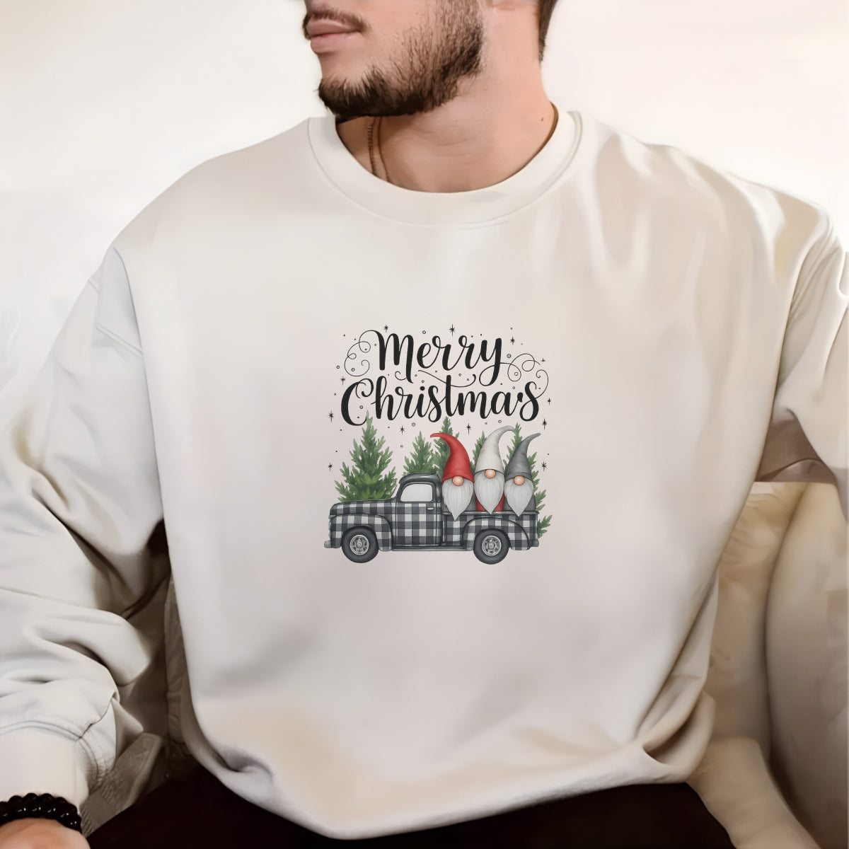 DTF Heat Transfer Transfer Iron On Sticker, Christmas Gnomes & Truck Graphic, for Festive Apparel and Holiday Decor