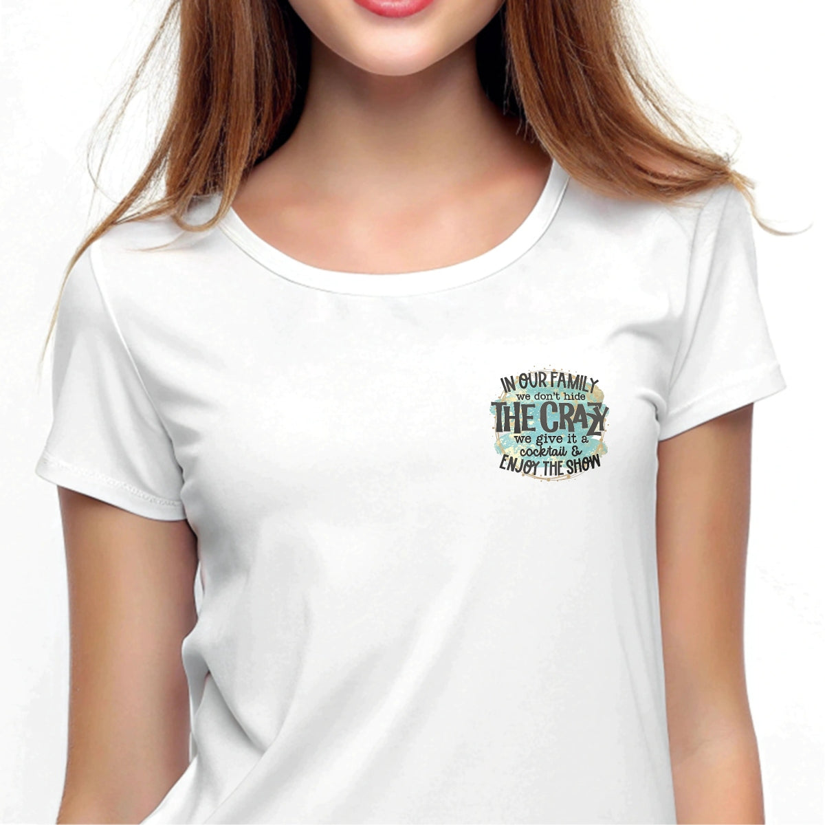 Family-Themed DTF Iron-On Transfer , 'In Our Family We Don’t Hide the Crazy' Quote Sticker ,Trendy Home Decor, Apparel Design for Clothing, T-Shirts, Hoodies, Towels