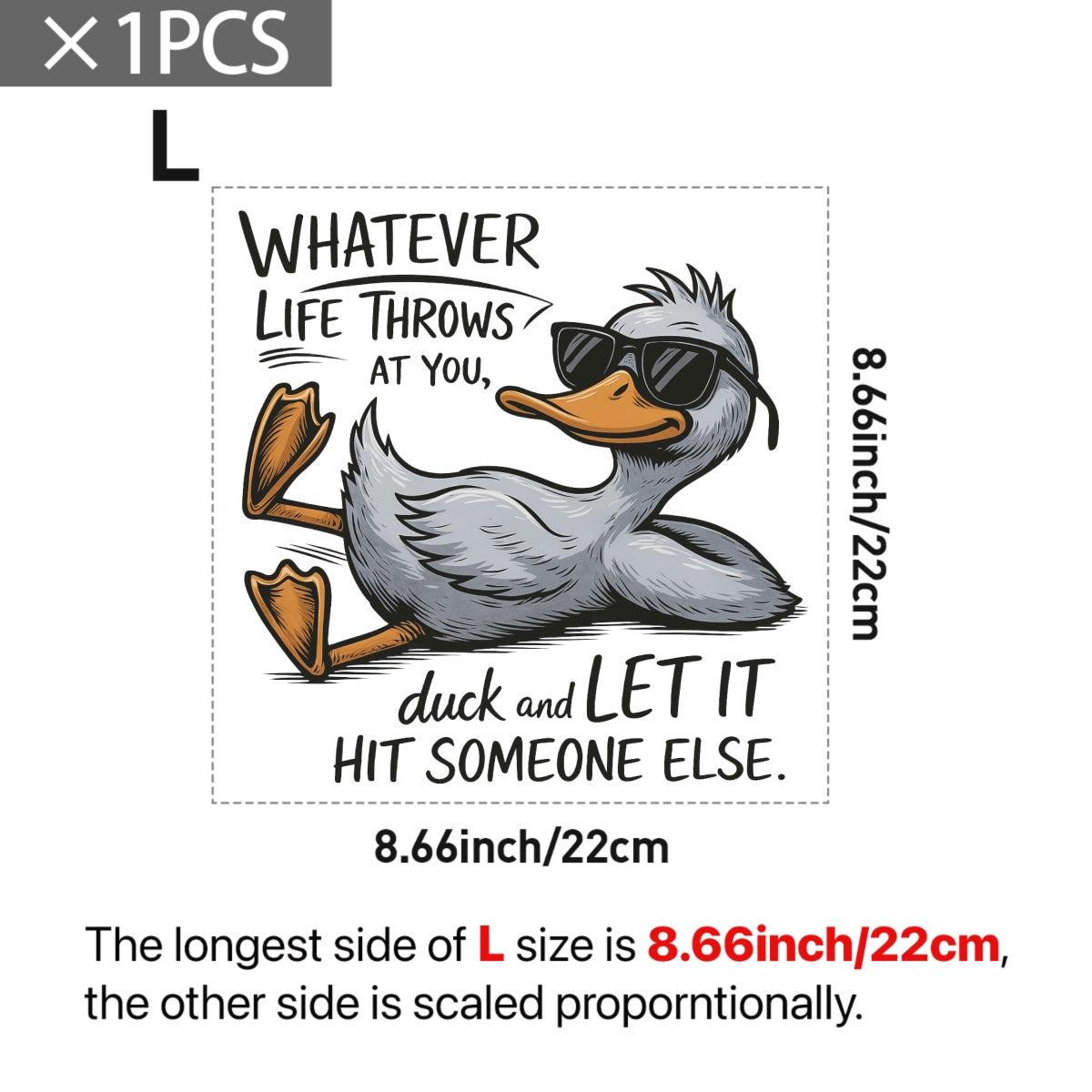 Funny Duck Iron On Transfer ,Cute Cartoon Animal with Quote , Heat Press Decal for DIY T-Shirts, Hoodies, Tote Bags
