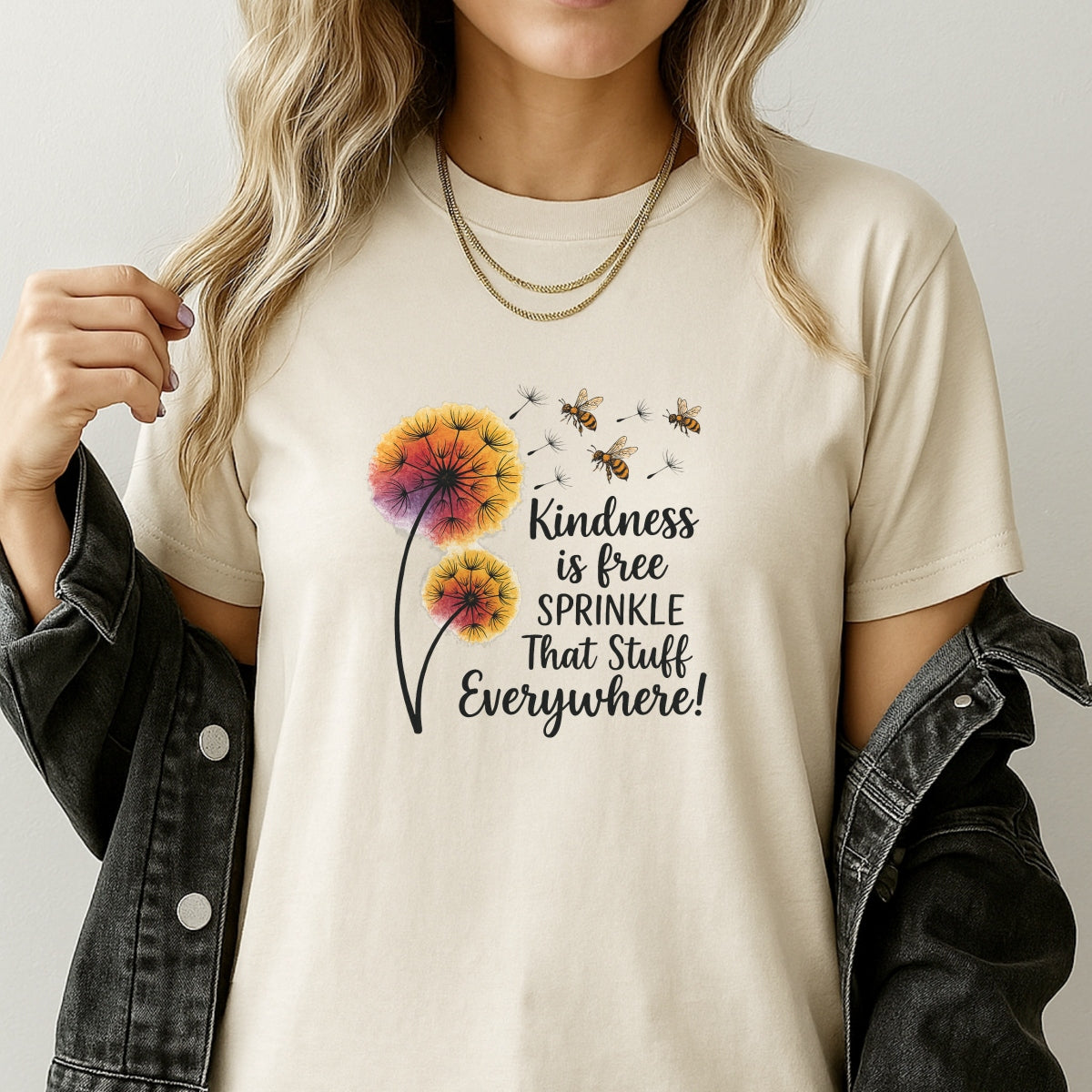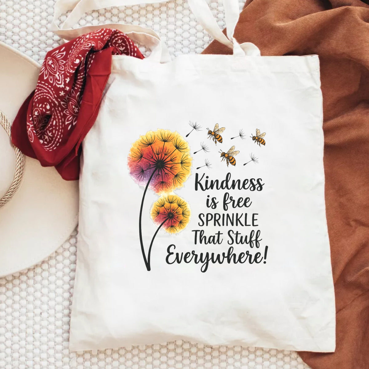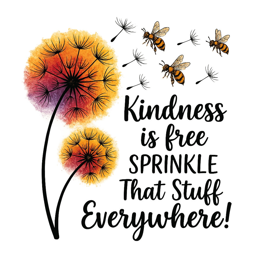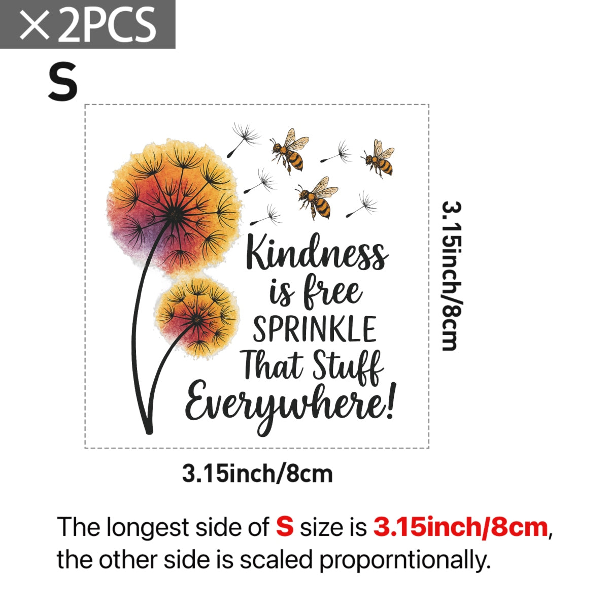 Kindness Quote Iron-On Transfer , Colorful Dandelion and Bee DIY Patch for T-Shirts, Tote Bags, Gifts , Aesthetic Heat Press Decal for all