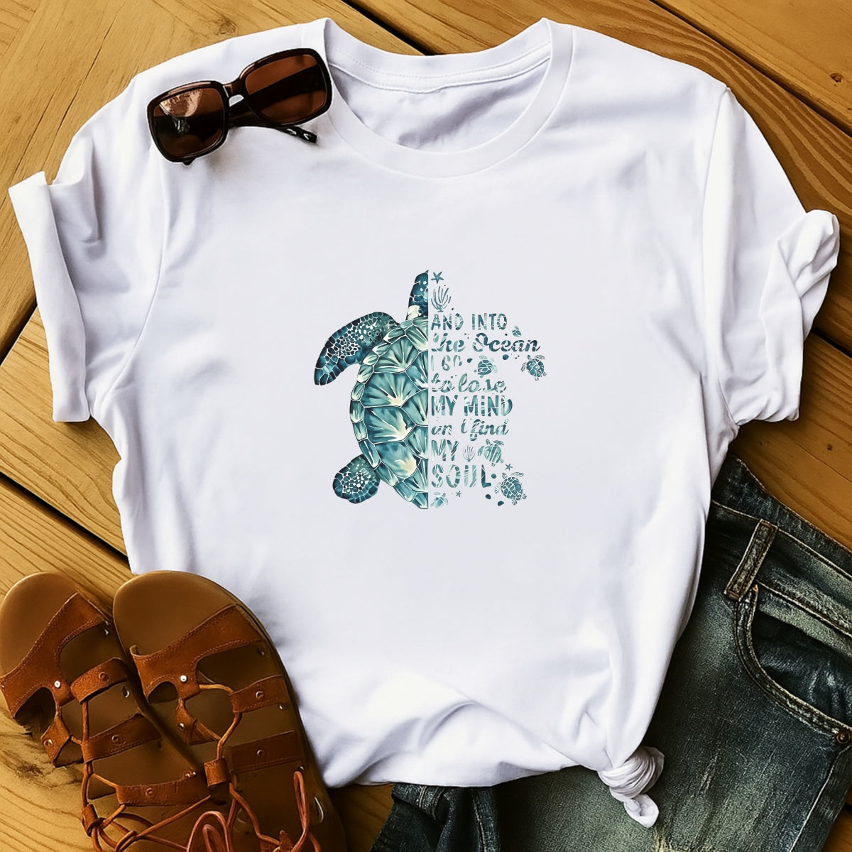 Ocean-Inspired DTF Heat Transfer Vinyl Decal,Sea Turtle & Shell Design for DIY T-Shirts, Pillow Embellishments & Crafts