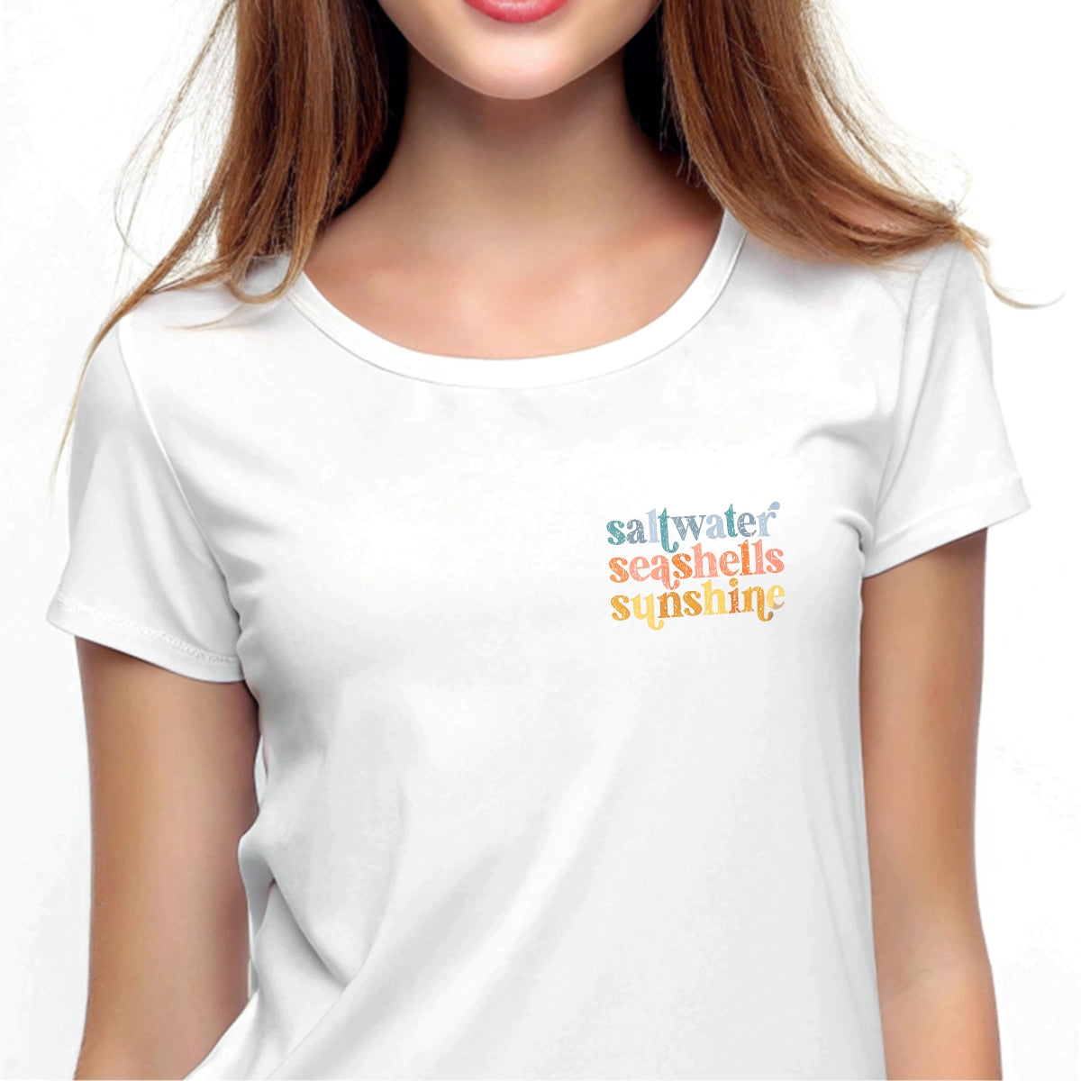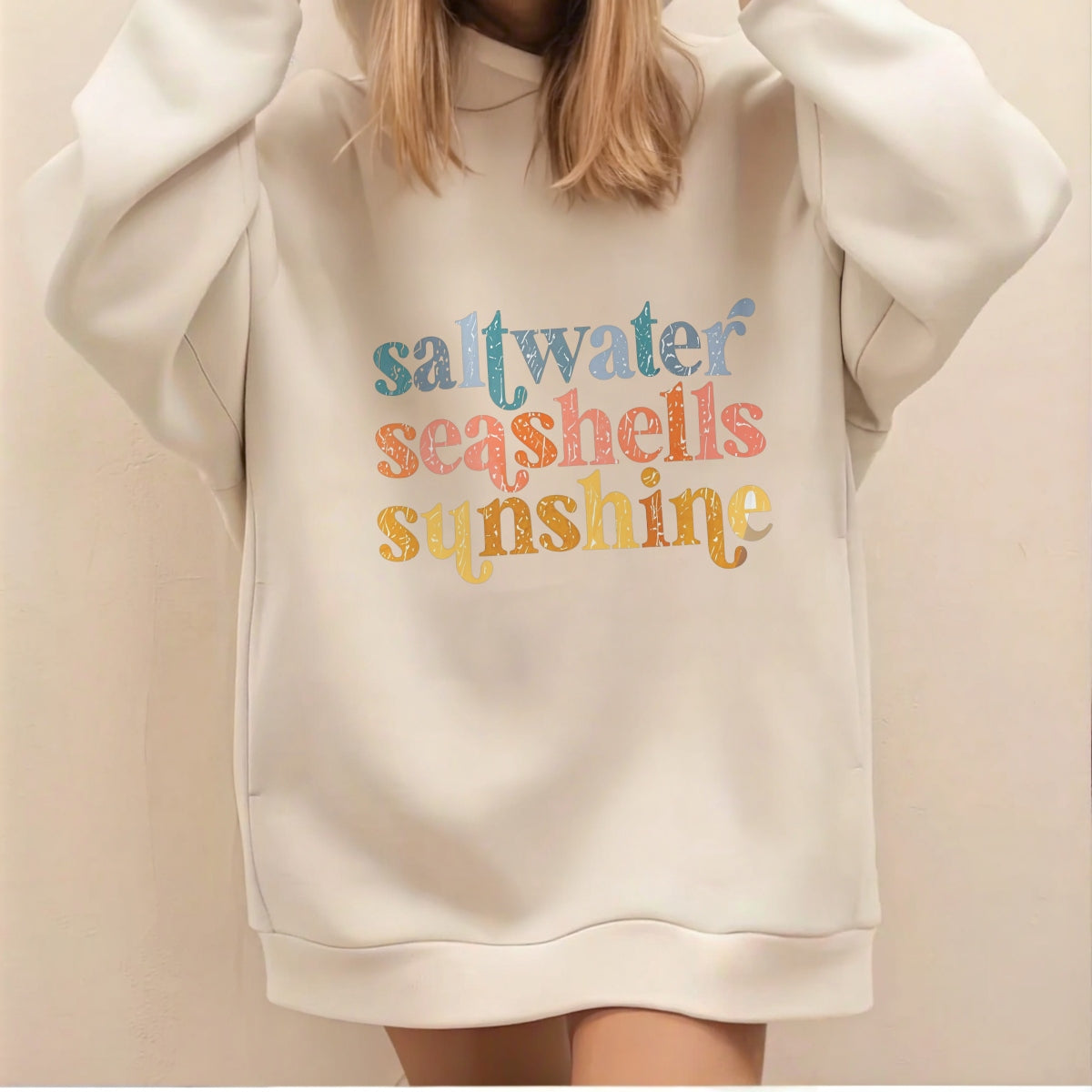 Ocean-Themed DTF Iron-On Transfer Sticker , Vintage Saltwater Seashells and Sunshine Design , Retro Beach Decal for T-Shirts, Hoodies, Tote Bags
