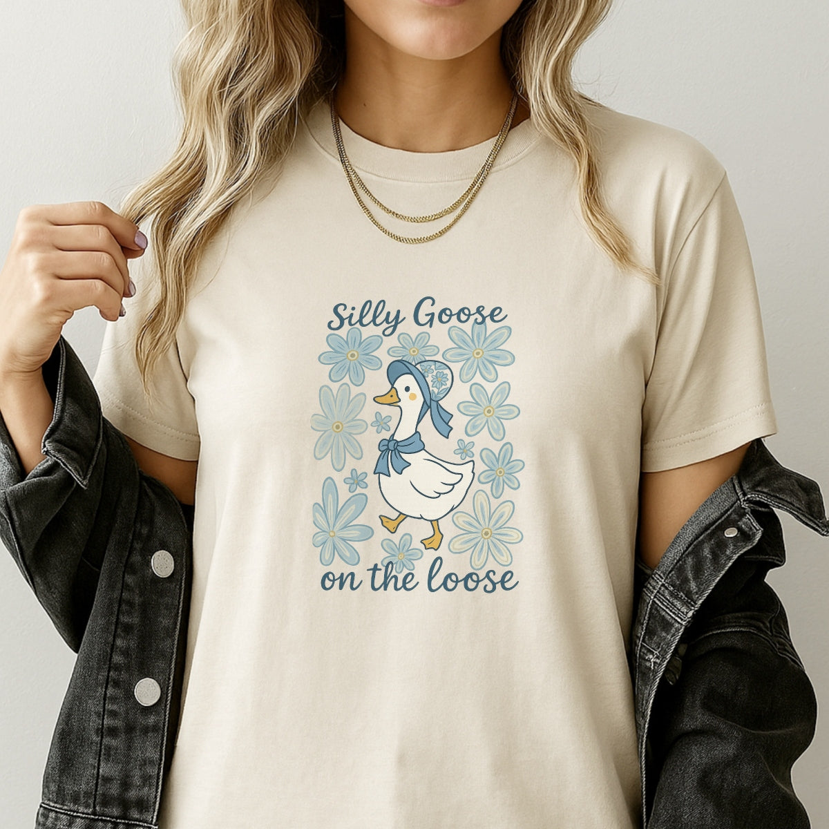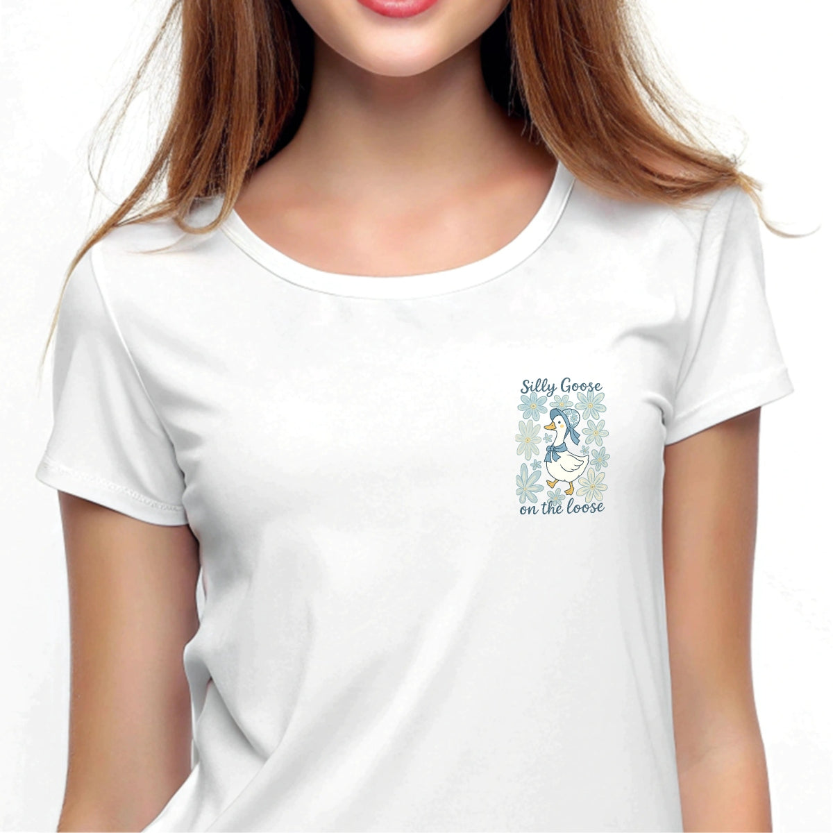 Silly Goose DTF Iron-On Transfer Sticker ,Floral Cartoon Pattern , Whimsical Home Decor for Room, Wall Decal, Tote Bags