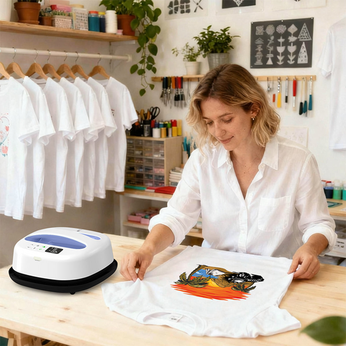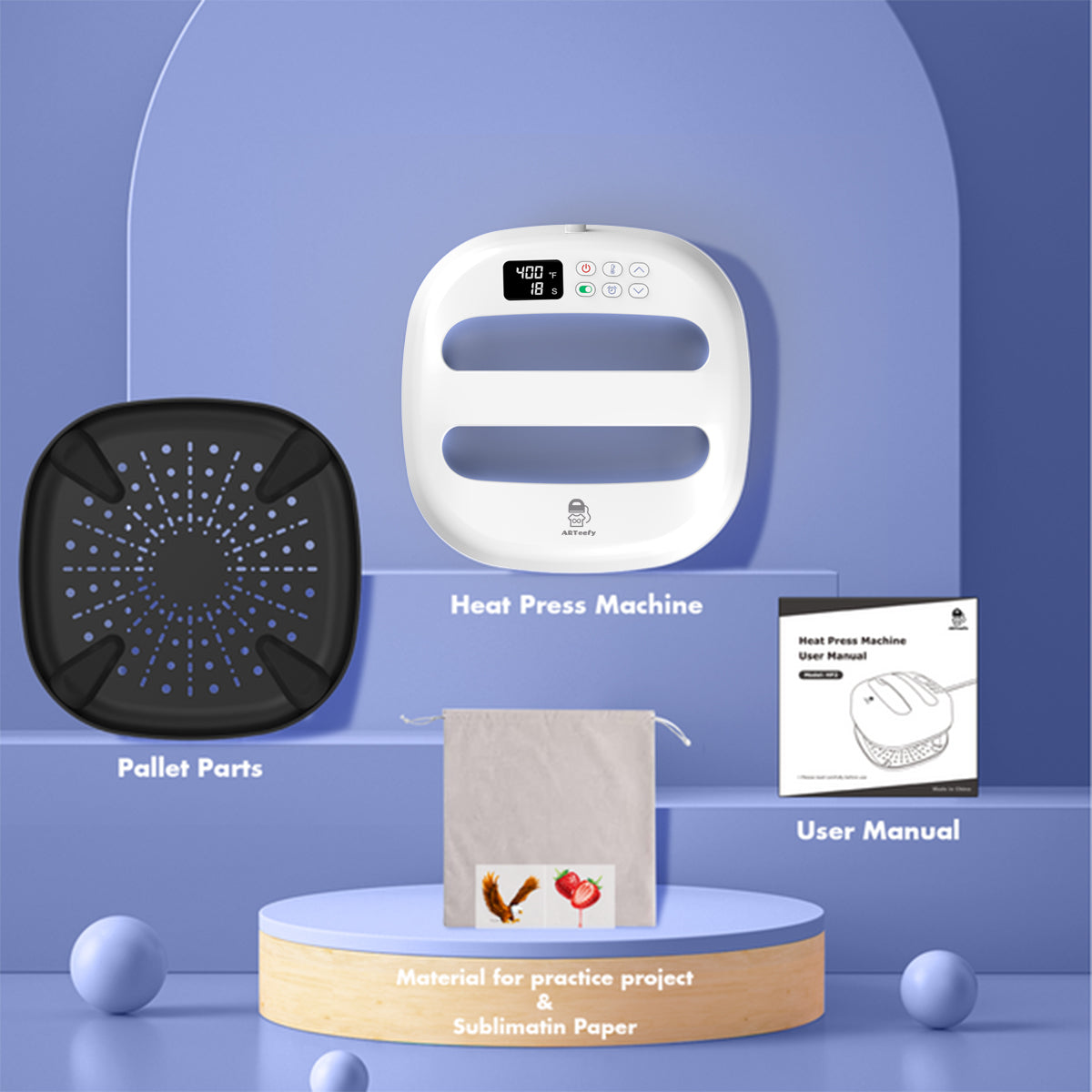 💡DIY Your Design - the “9'''x9'' Heatpress” has a revamped sleek design and built in a precision display. Heat press machine Easy set up the appropriate time and temp according to your requirements, keep pressing the device gently and you’ll get ideal patterns within 60s.