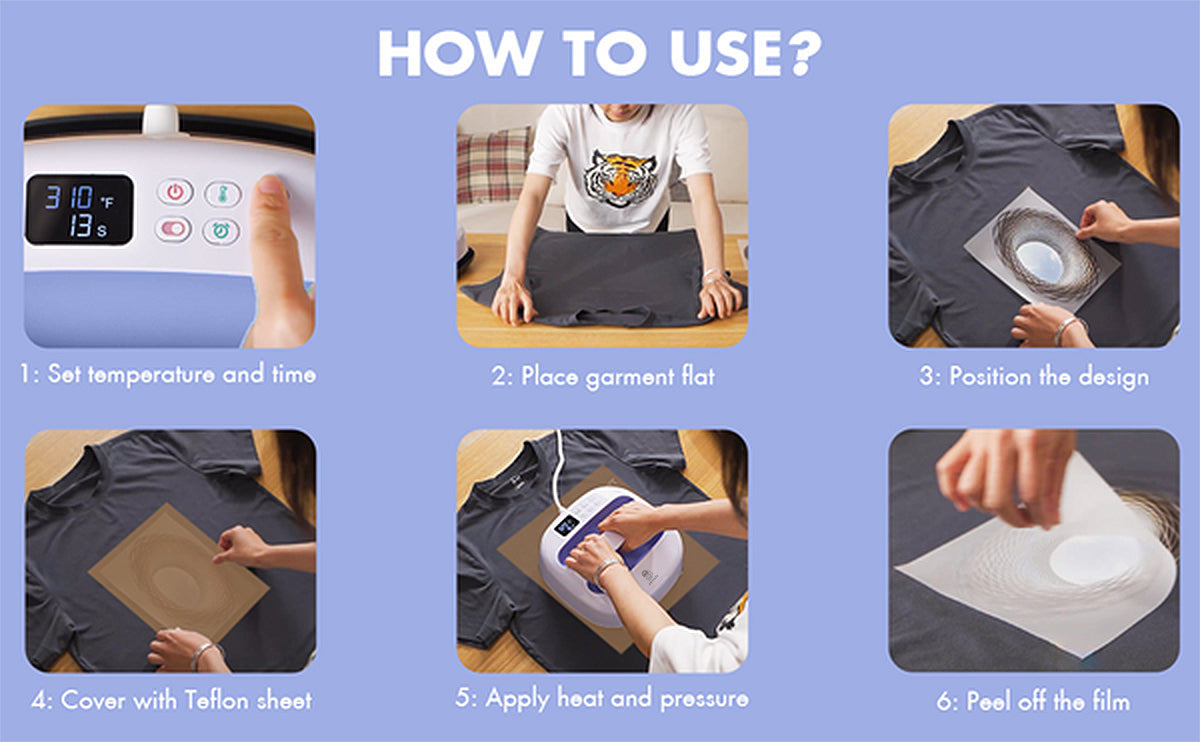 👍9”x9” Heat Plate - This 9” x 9” portable heat press machine can meet your diverse printing needs on multiple projects like T-shirts, Bags, Pillows, Mouse Pads. Shirt printing machine are great gifts for women and men, can be given on Halloween, Christmas.
