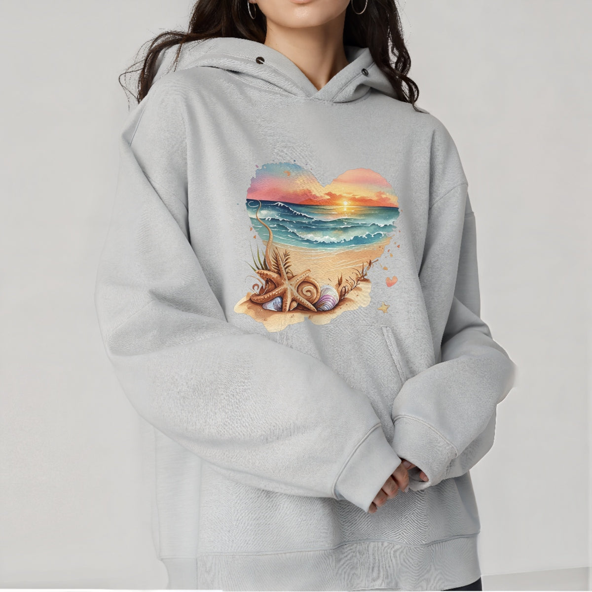 Sunset Beach Heart DTF Transfer,Cute Ocean Summer Iron On Patch for T-Shirts, Tote Bags, DIY Heat Press Decals, Aesthetic Watercolor Surf Art, Pastel Coastal Vinyl Design