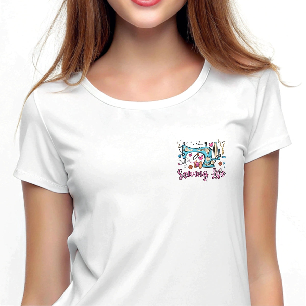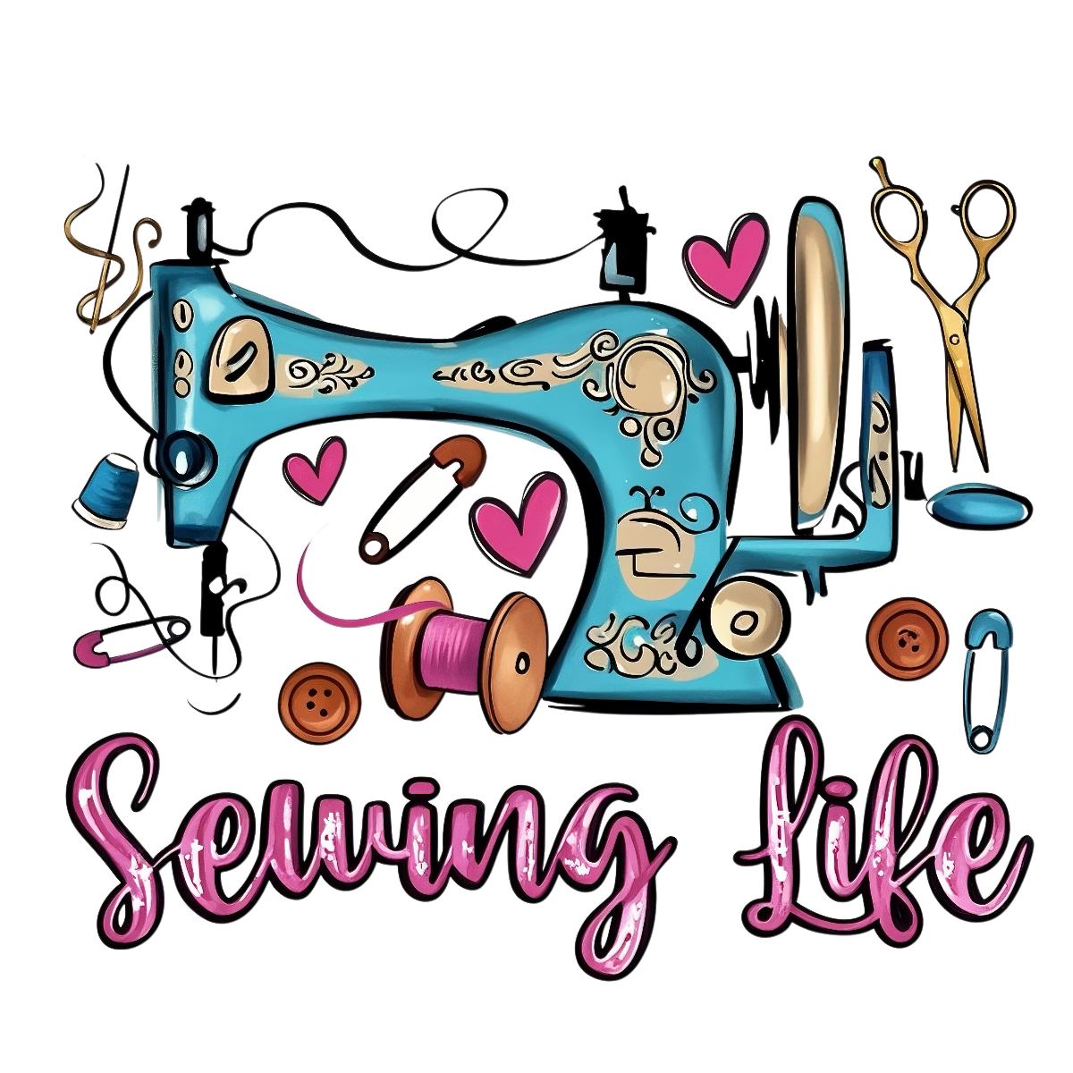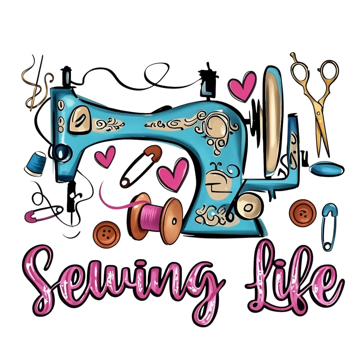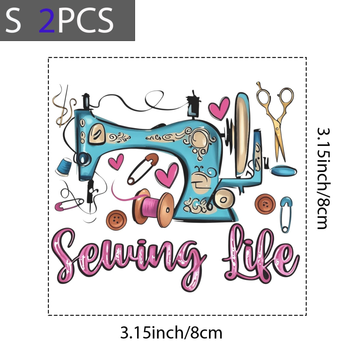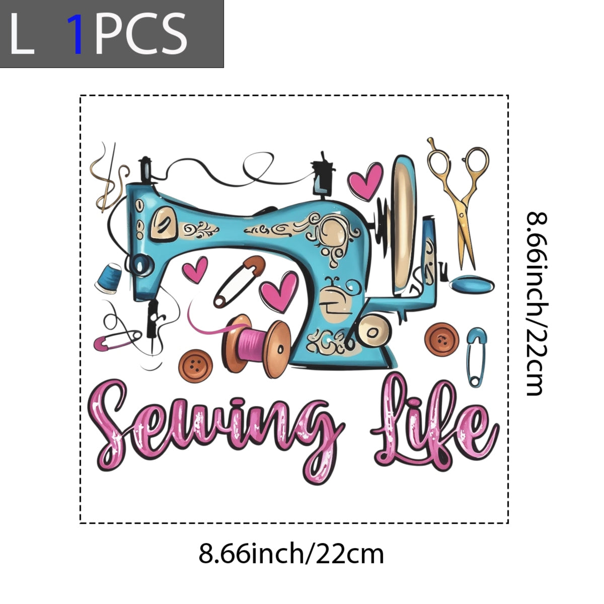 Vintage Sewing Machine DTF Transfer Decal, DIY Craft Embroidery Sticker, Pink Blue Heart Button Design for Apparel, Tote Bags, Wall Art, Easy to Apply Vintage Craft Supplies, Sewing Life Art Sticker