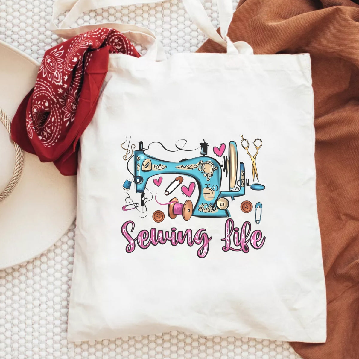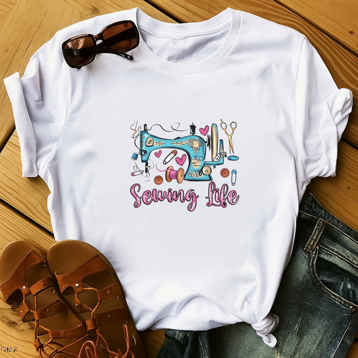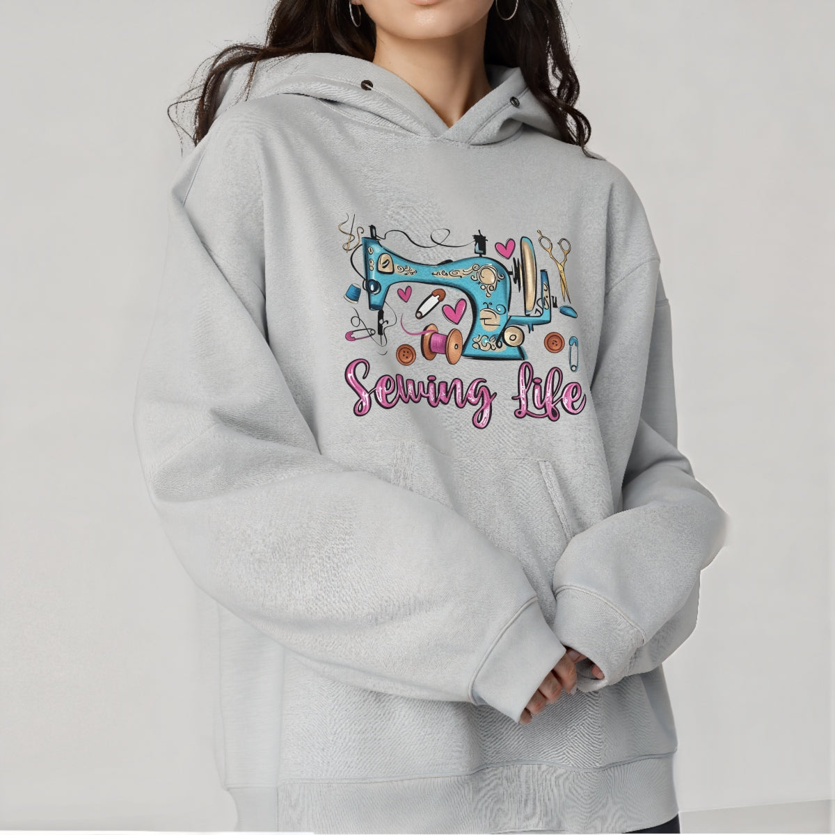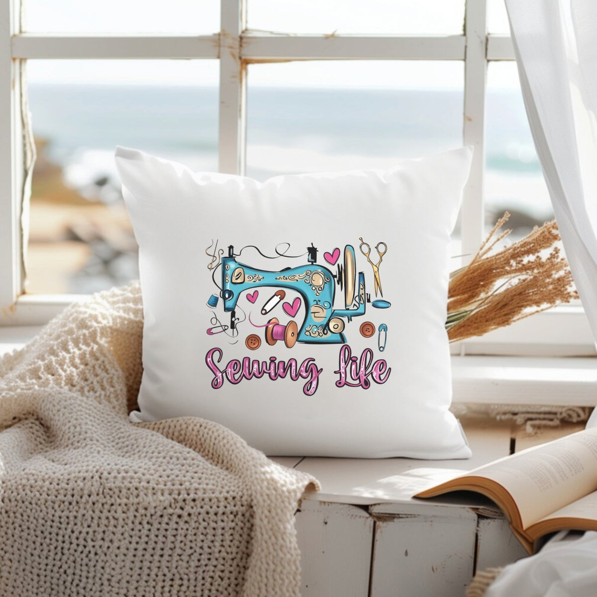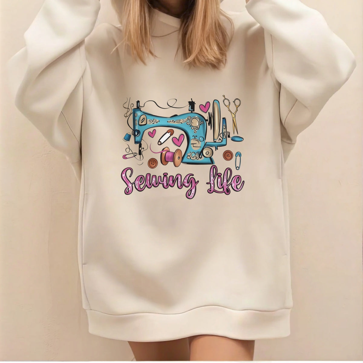 Vintage Sewing Machine DTF Transfer Decal, DIY Craft Embroidery Sticker, Pink Blue Heart Button Design for Apparel, Tote Bags, Wall Art, Easy to Apply Vintage Craft Supplies, Sewing Life Art Sticker