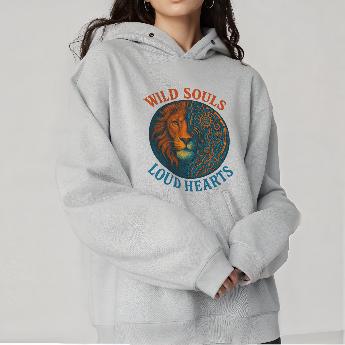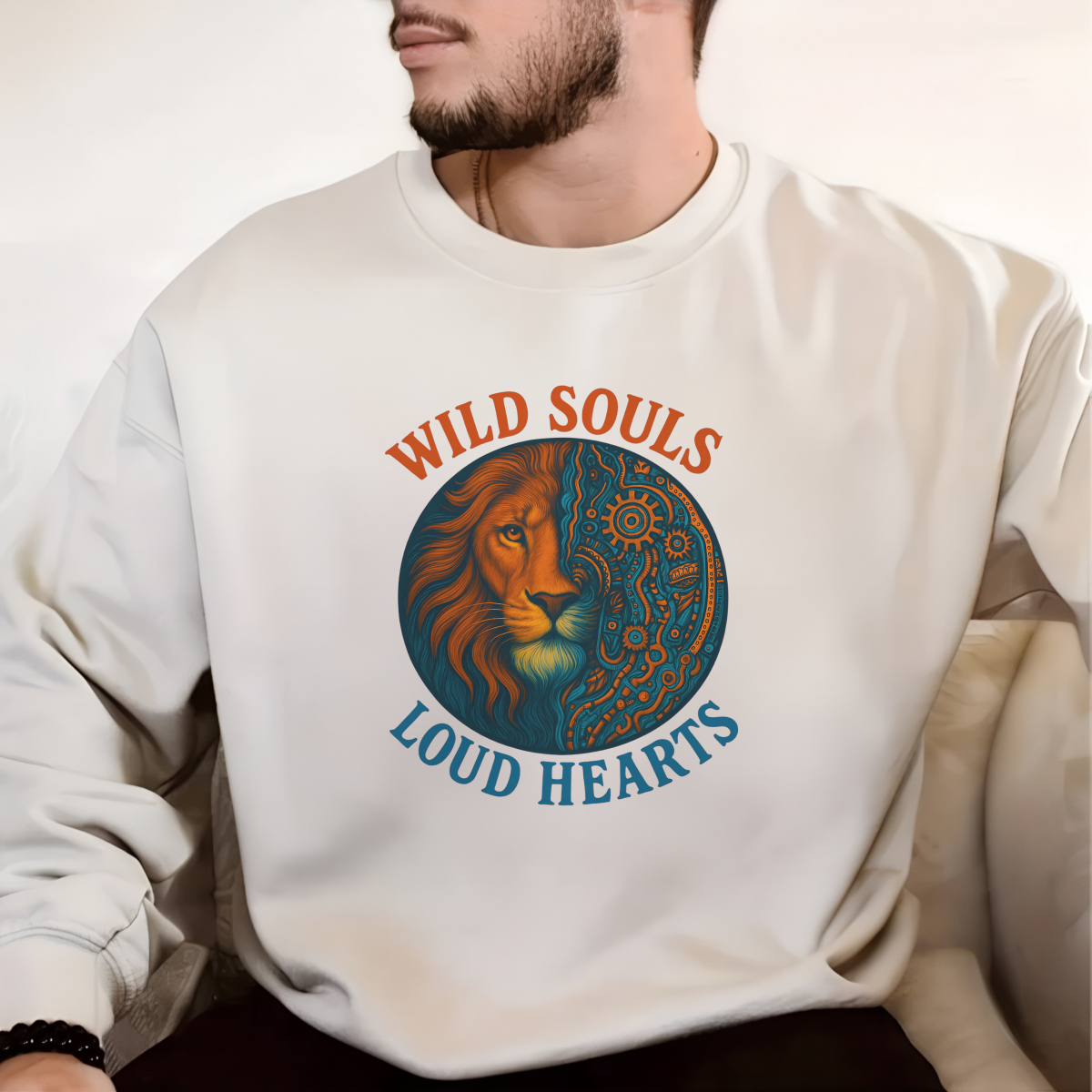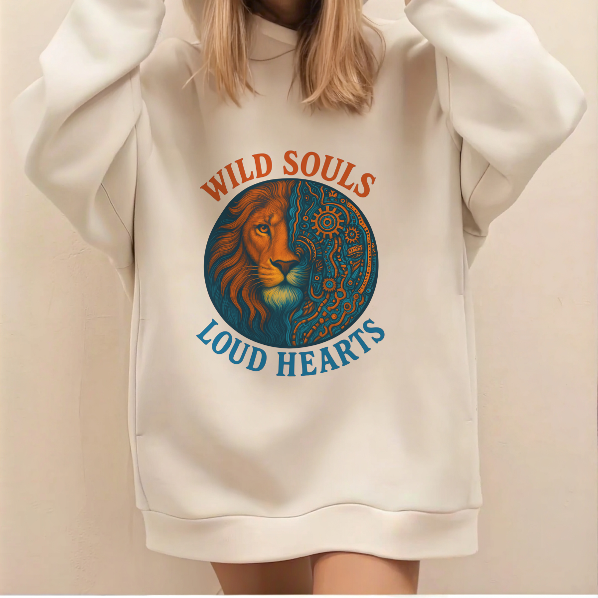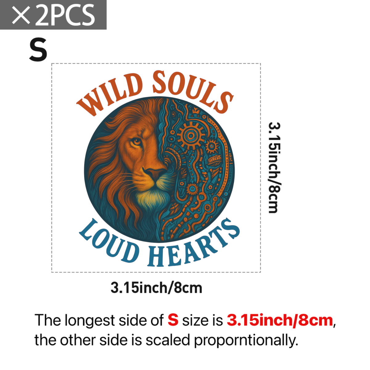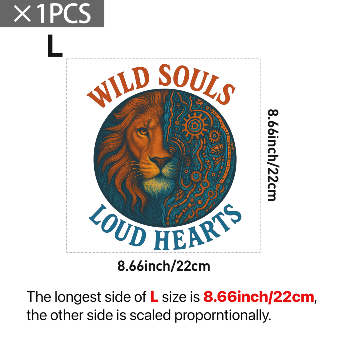 Wild Soul Lion DTF Iron-On Transfer, Steampunk Mechanical Animal Patch for T-Shirts, Hoodies, Jackets, Loud Heart Boho Punk Y2K Heat Press Decal