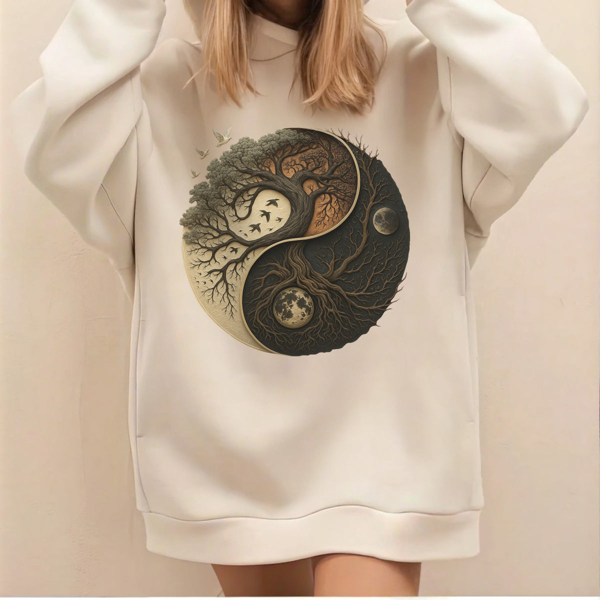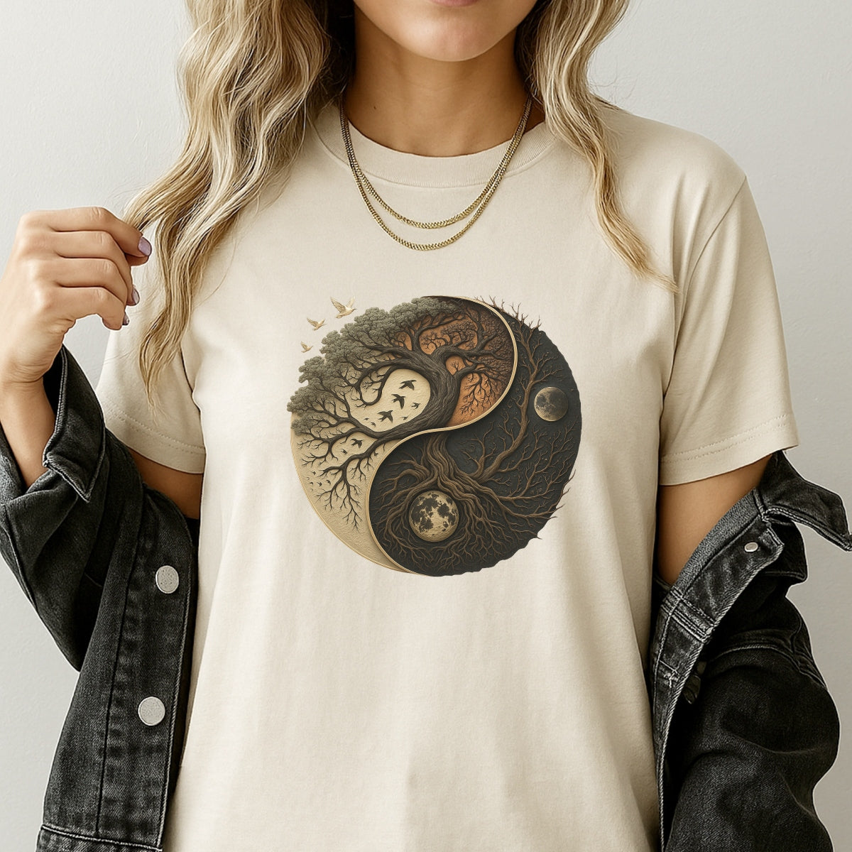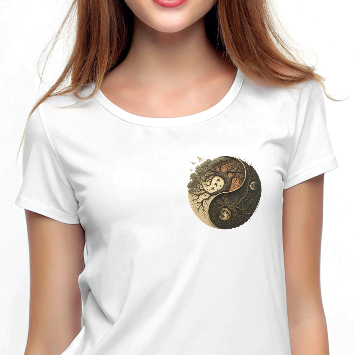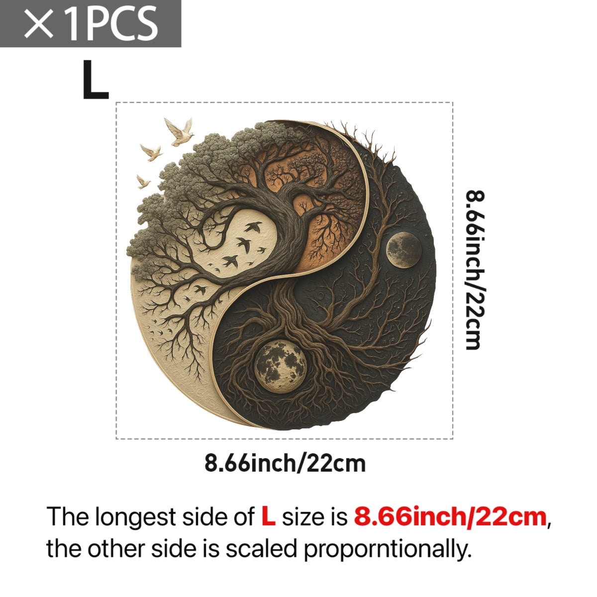 Yin Yang Tree of Life DTF Heat Transfer, Moon & Nature Spiritual Iron On Decal for DIY T-Shirts, Ready to Press, Full Color, Washable