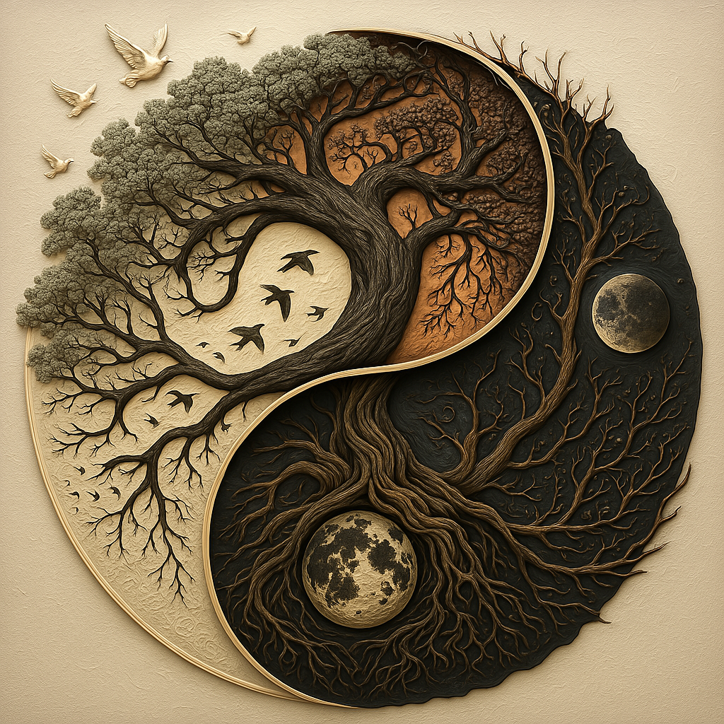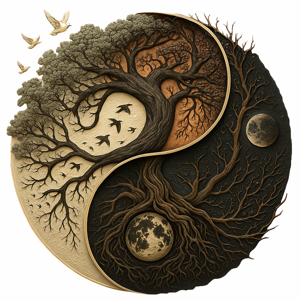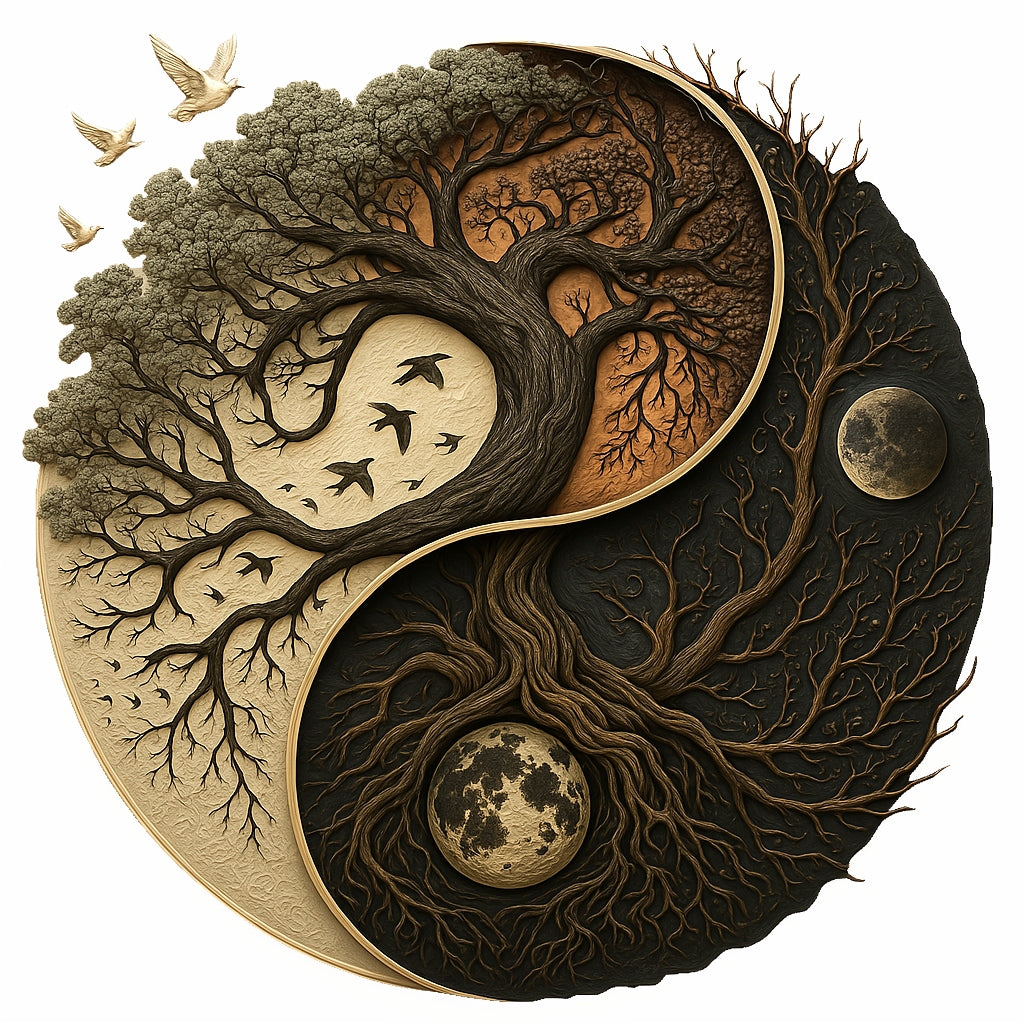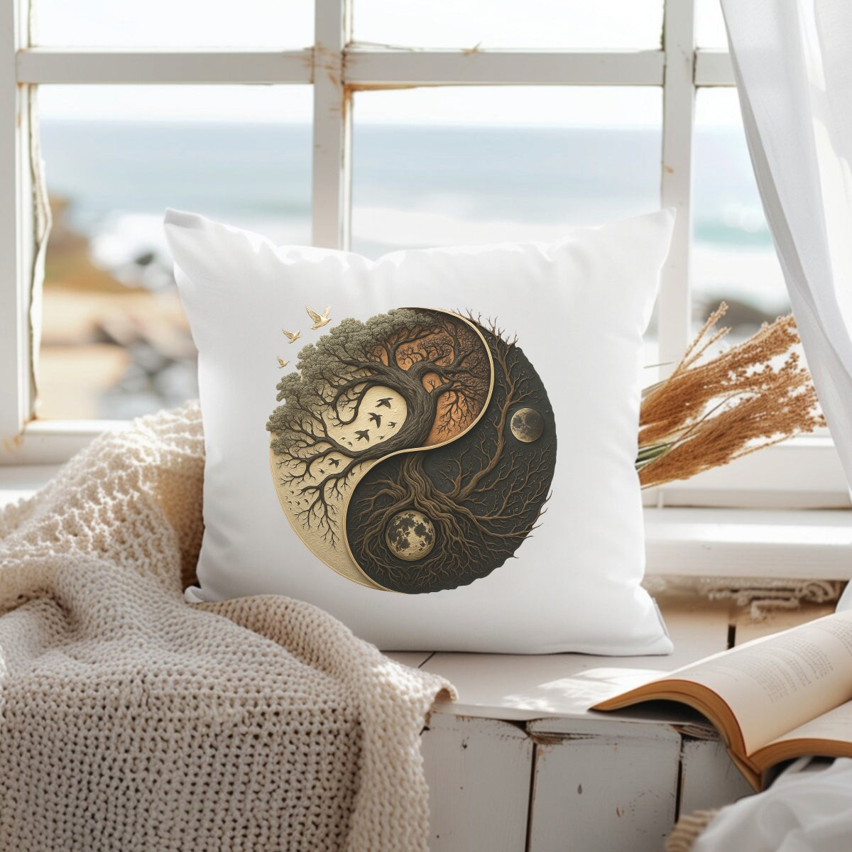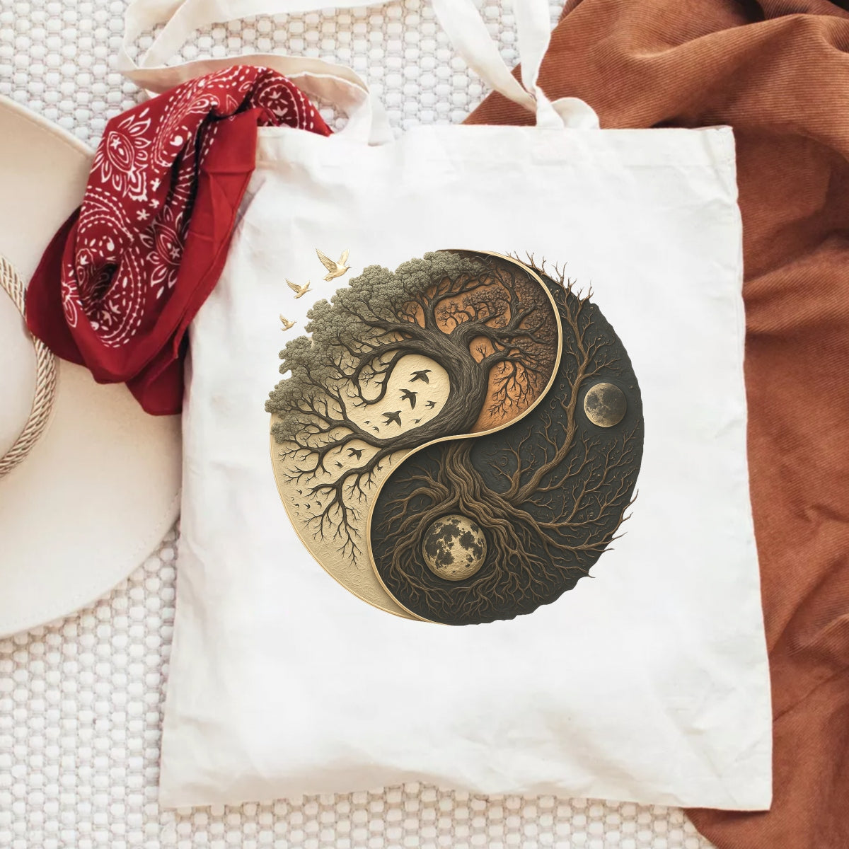 Yin Yang Tree of Life DTF Heat Transfer, Moon & Nature Spiritual Iron On Decal for DIY T-Shirts, Ready to Press, Full Color, Washable